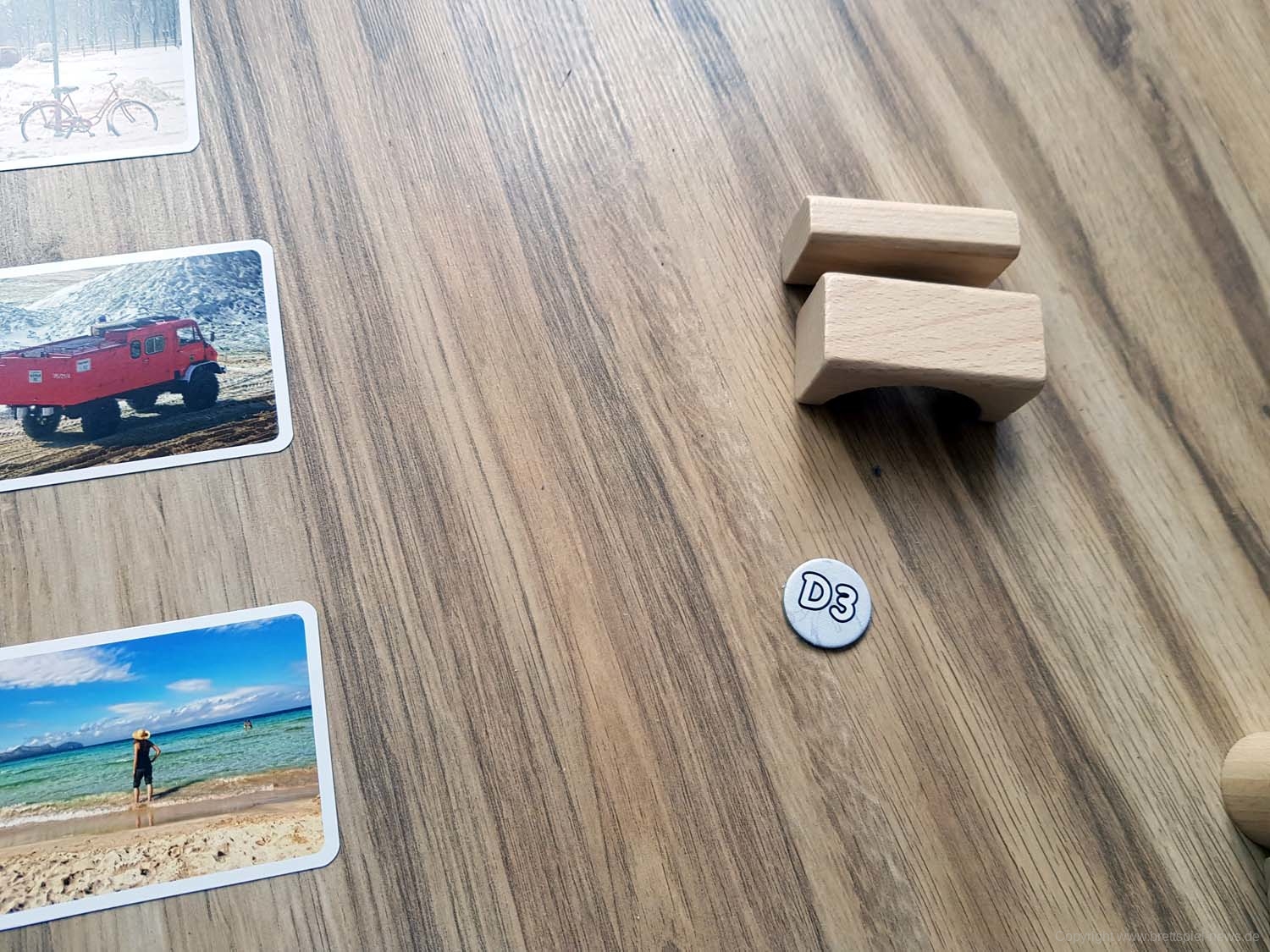 Zieht je ein Plättchen aus dem Beutel, um euer geheimes Foto zu bestimmen. Gestaltet so deutlich wie möglich das Motiv eures Fotos. Findet jeweils die geheimen Fotos aller anderen heraus.
