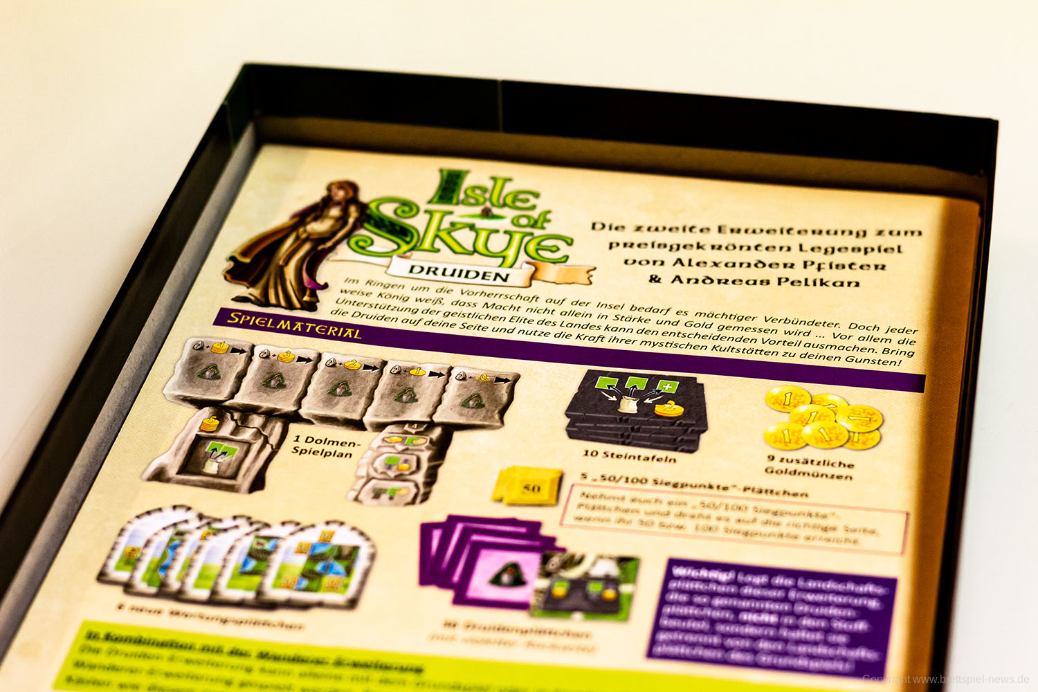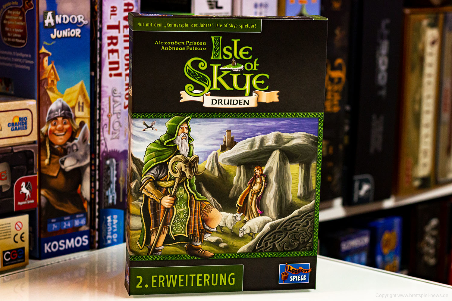 Ende 2018 war für Isle of Skye die Druiden Erweiterung bei Lookout Spiele erschienen. Die Erweiterung bringt eine zweite Kaufphase in das Spiel, welches von vielen Spielern noch heute gerne gespielt wird. Wer das Grundspiel hat und schon immer wissen wollte was die zweite Erweiterung konkret bietet, kann sich unsere Bilder anschauen. Sie stammt von Andreas Pelikan und Alexander Pfister und wurde von Klemens Franz gestaltet.