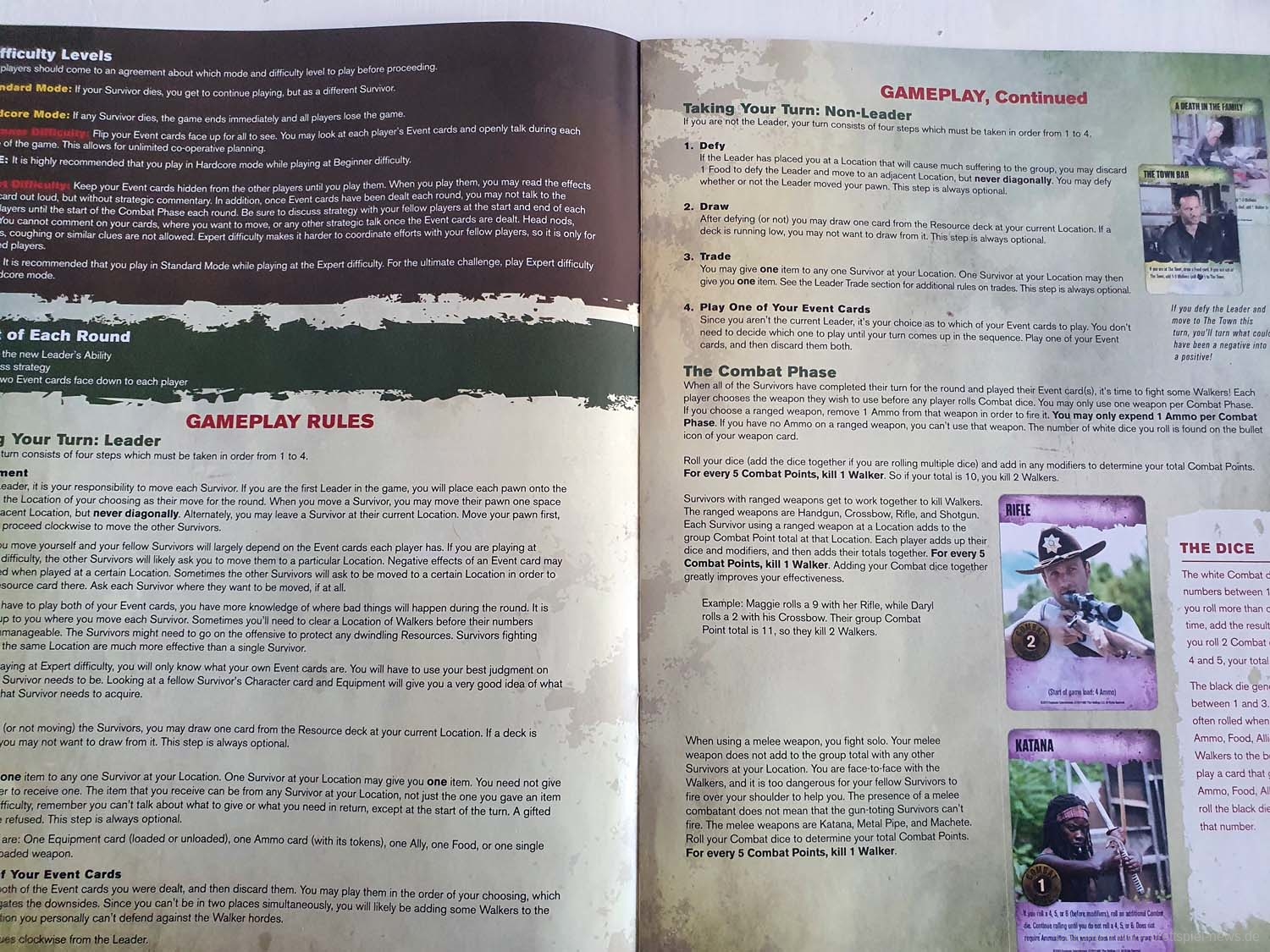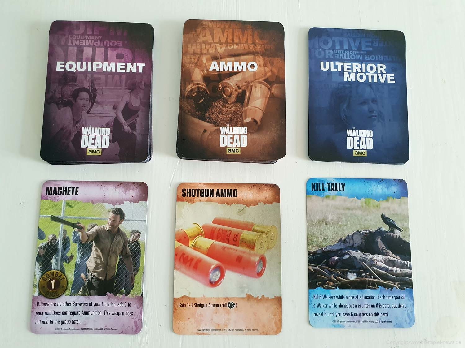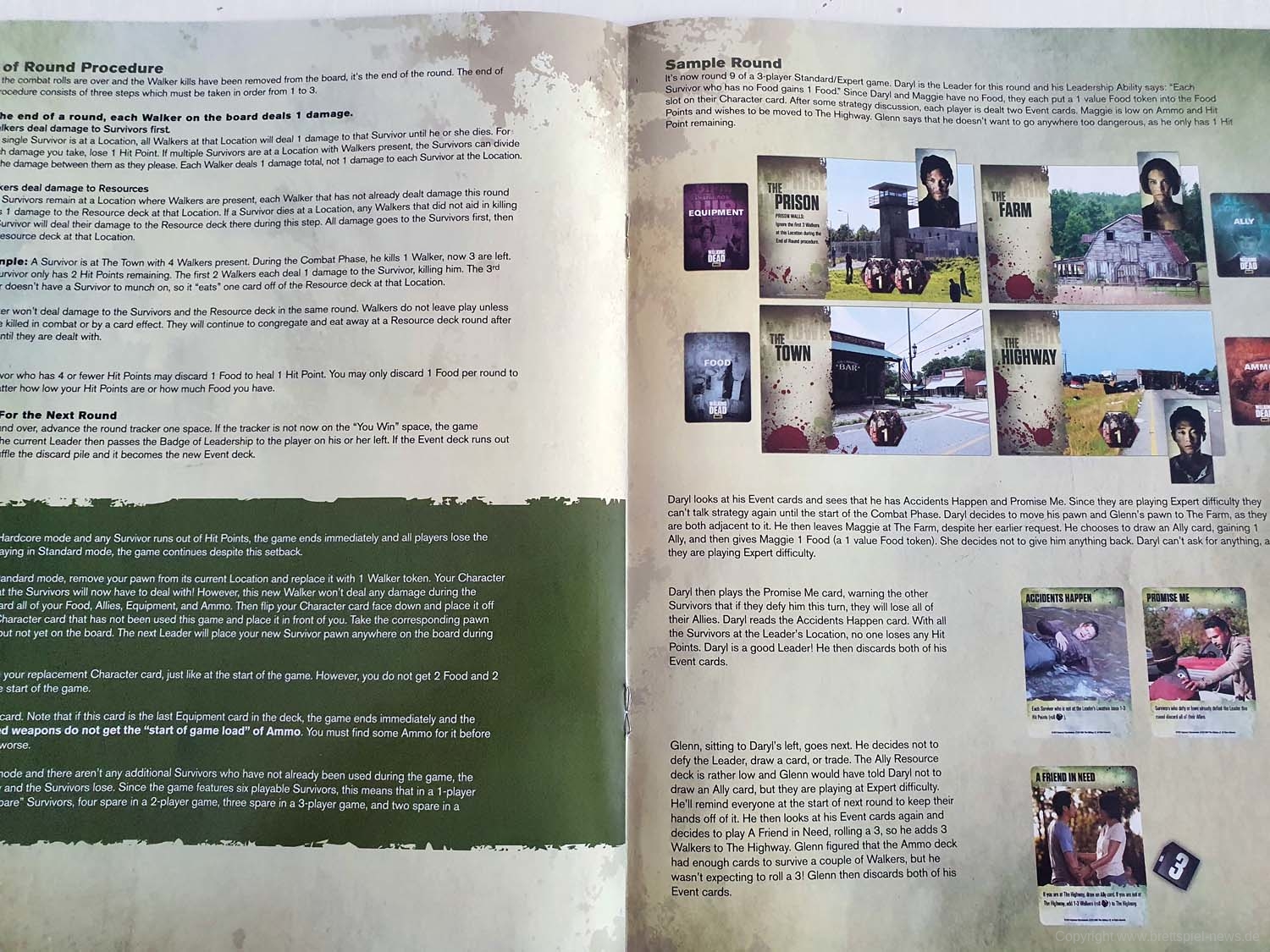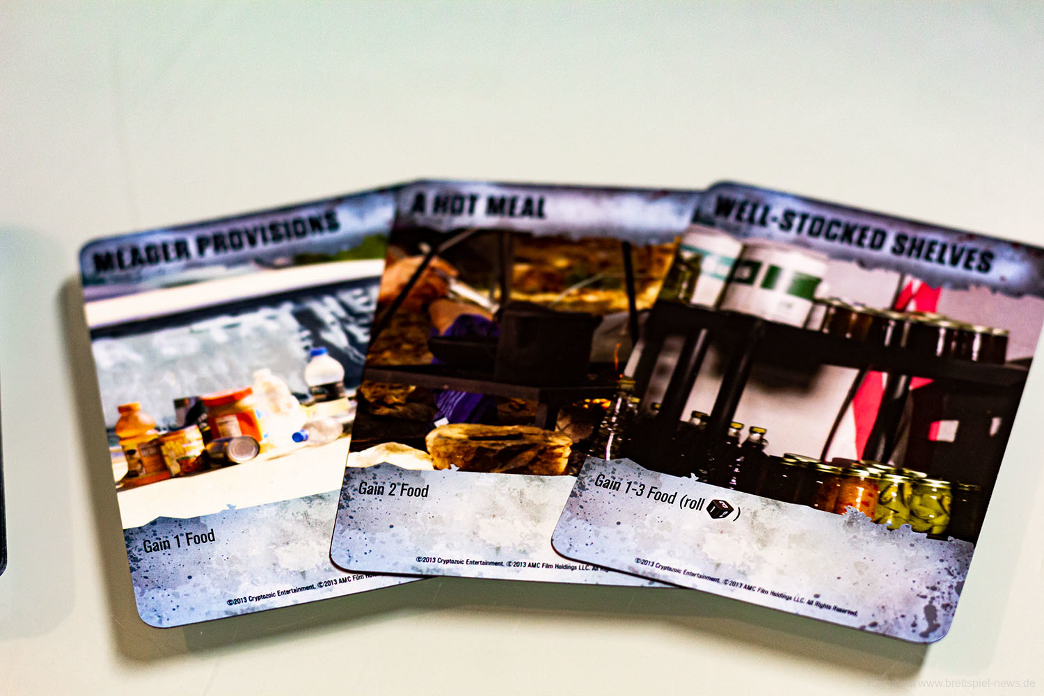 Wanderer und andere Notlagen werden an verschiedenen Orten durch ein 48-Karten-Ereignisdeck (jede Karte ist einzigartig!) ausgelöst, das die Spieler aus jeder Runde ziehen. Sie müssen dann herausfinden, wie sie die Auswirkungen dieser Ereignisse minimieren können, indem sie Würfel verwenden, um Kämpfe aufzulösen und den Ausgang einiger Ereignisse zu bestimmen. Die Überlebenden können zusammenarbeiten, um ihre Kampffähigkeiten zu kombinieren oder sich aufteilen, um ein größeres Gebiet abzudecken. Wenn die Survivors die Walker nicht von einem Ort vertreiben, verlieren sie Ressourcen - und wenn ein Ressourcendeck zu Ende geht, verlieren die Spieler das Spiel. Daher müssen die Spieler die Walker in Schach halten, ohne selbst zu viele Ressourcen zu verbrauchen.