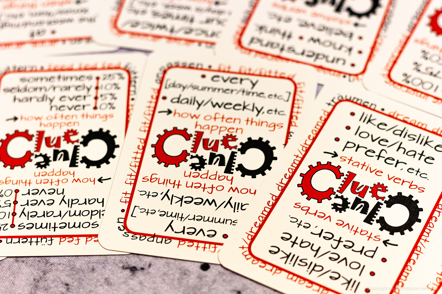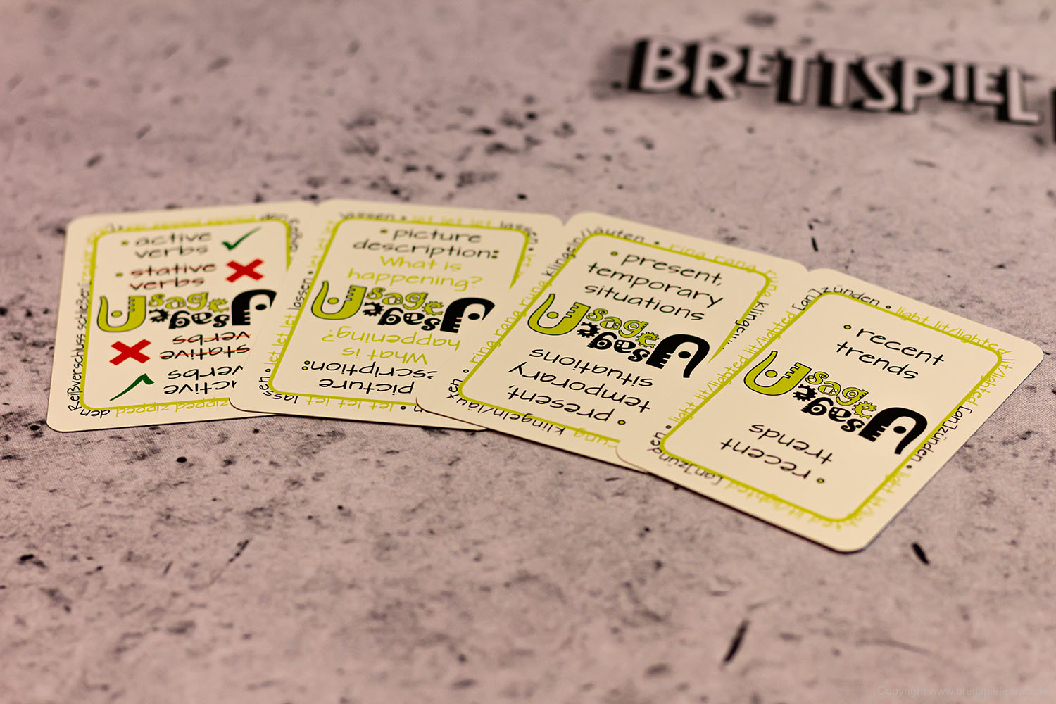 Bei GRAMMARGON handelt es sich um ein Spiel, bei dem englische Grammatik gelernt wird, ein Thema nach dem anderen. Die Idee des Verlags besteht darin, ein tiefes und intuitives Verständnis für ein Grammatikthema zu vermitteln, während man einfach nur Karten spielt.