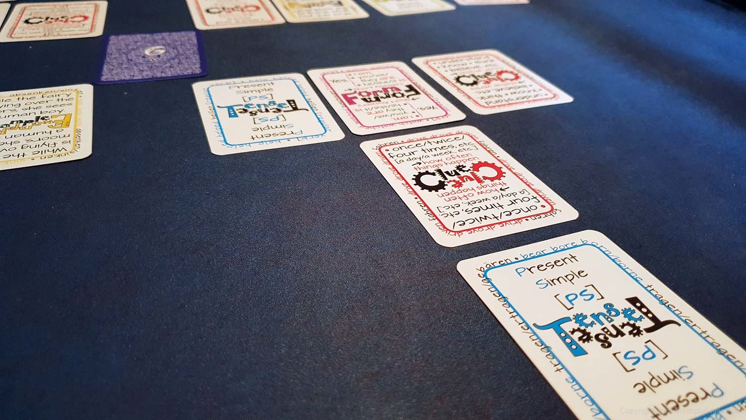 Englische Grammatik ganz neu erfahren – ein reines Kartenspiel! Jedes Spiel ist auf ein anderes Grammatikthema fokussiert. Lernpause, kein Stress, nur lernen durch puren Spaß und Spielvergnügen. Ein Lernspiel, das durch seine mehreren einzigartigen Spielarten, in allen sozialen Situationen nur für seinen Spielwert einsetzbar ist, und ein vielfältiges Spielerlebnis bereitet. Spielt einfach Kartenspiele mit Freunden und Familie oder sogar allein und beherrscht englische Grammatikthemen – eines nach dem anderen.