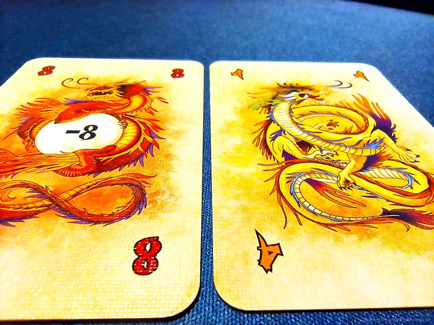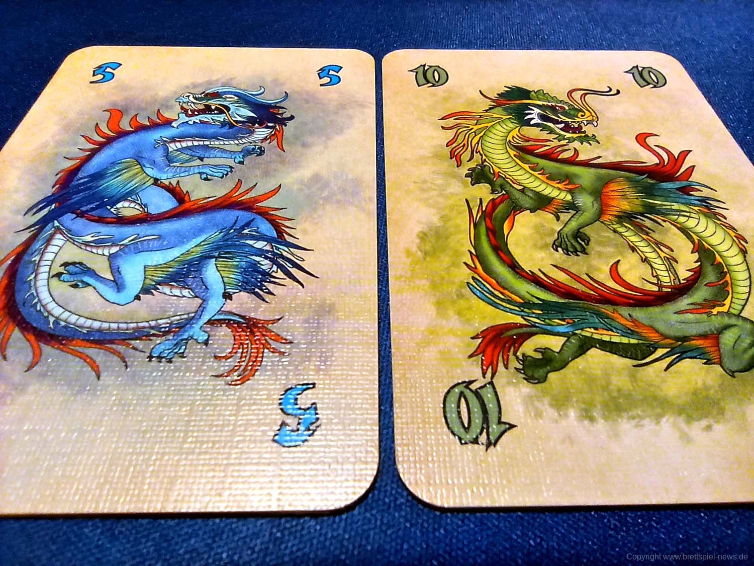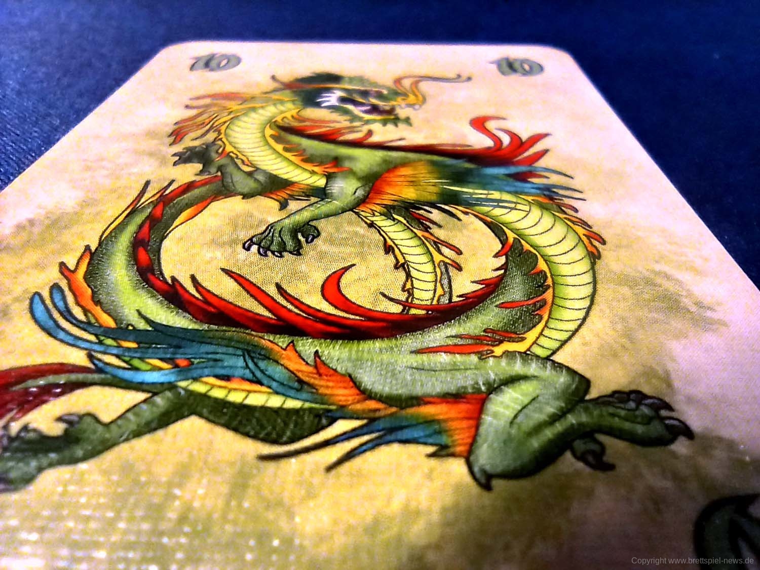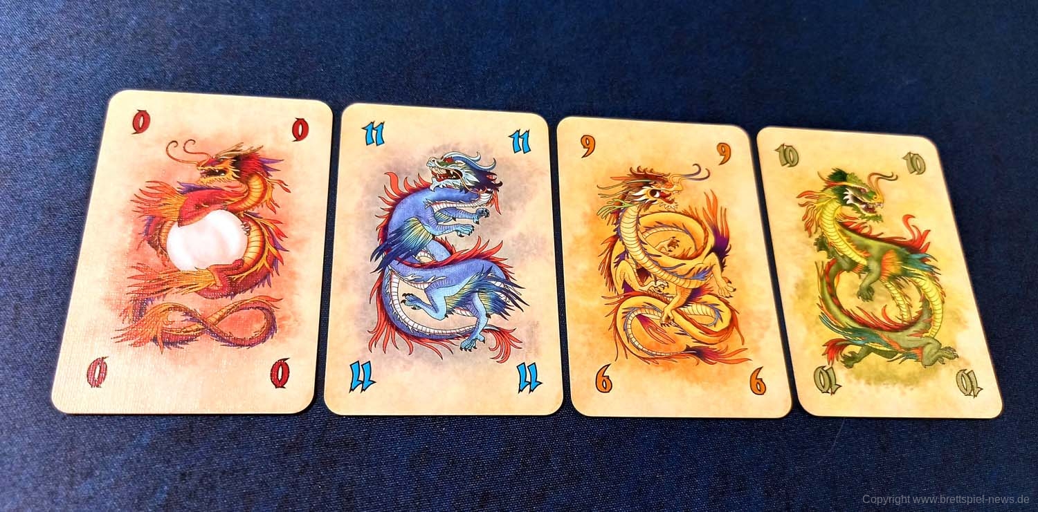 Jeder Stich ist 6/8/10/12 Punkte von 3/4/5/6 Spielern wert. Jede Karte mit rotem Drachen, die bei einem Stich genommen wird, bringt dem Spieler, der den Stich gewinnt, so viele Strafpunkte ein, wie der Rang der Karte beträgt, mit Ausnahme der "roten Drachen 11", die 26 Strafpunkte kostet. Schafft es einer der Spieler, den Slam zu machen, d.h. alle Stiche zu machen, gewinnt er sofort das ganze Spiel.