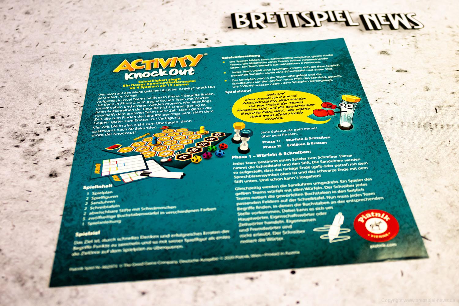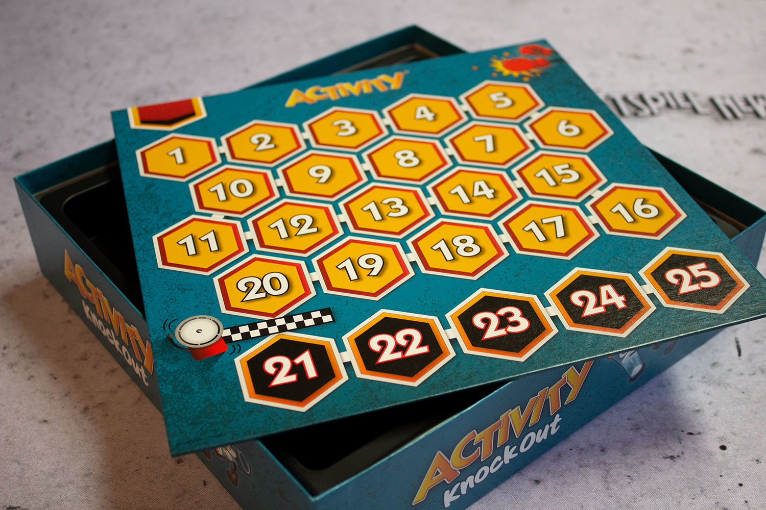 Das richtige Wort zum richtigen Zeitpunkt: Rechtzeitig zum Jubiläum kommt die neueste „Activity"-Variante auf den Markt: Wer nicht auf den Mund gefallen ist, hat bei „Activity Knock Out" garantiert einen Vorteil. Wie bei allen Spielen der Reihe sind die Regeln unkompliziert und schnell erklärt.