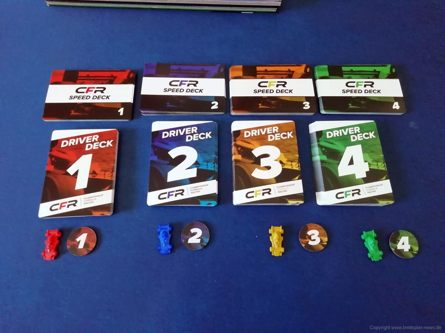 2017 ist das Rennspiel CFR CHAMPIONSHIP FORMULA RACING erschienen. Es ist für Spielgruppen mit bis zu 12 Spielern geeignet, dauert knapp 45 Minuten pro Partie und soll etwas anspruchsvollere Rennen auf den Spieltisch bringen. Wir zeigen Bilder vom Spielmaterial – ein Test wird folgen.