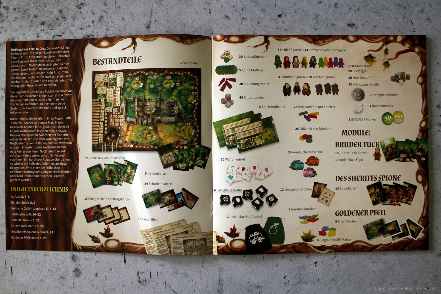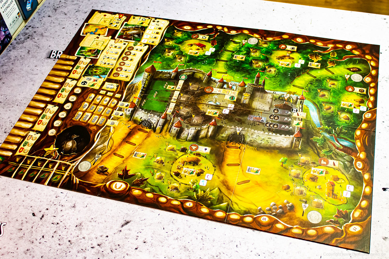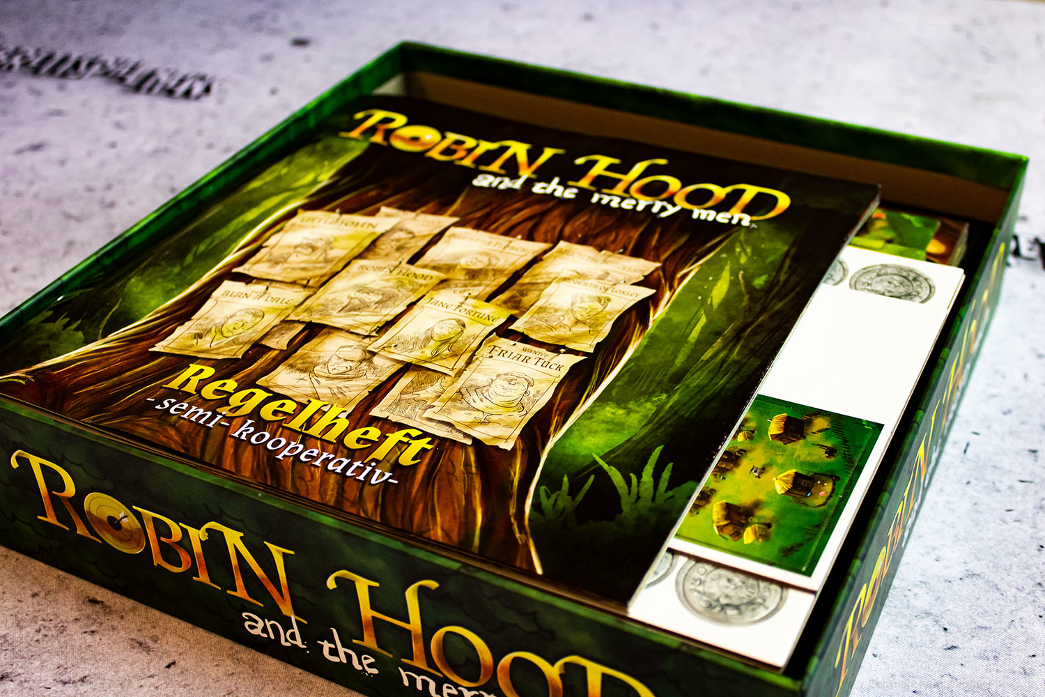 Wir haben ein Exemplar von ROBIN HOOD AND THE MERRY MAN als deutsche Version erhalten und zeigen Bilder vom Spielmaterial. Der junge Verlag TL Games hat die deutsche Version veröffentlicht. Das Spiel richtet sich an 1-5 SpielerInnen ab 13 Jahren und soll eine Spielzeit von 60-90 Minuten bieten.