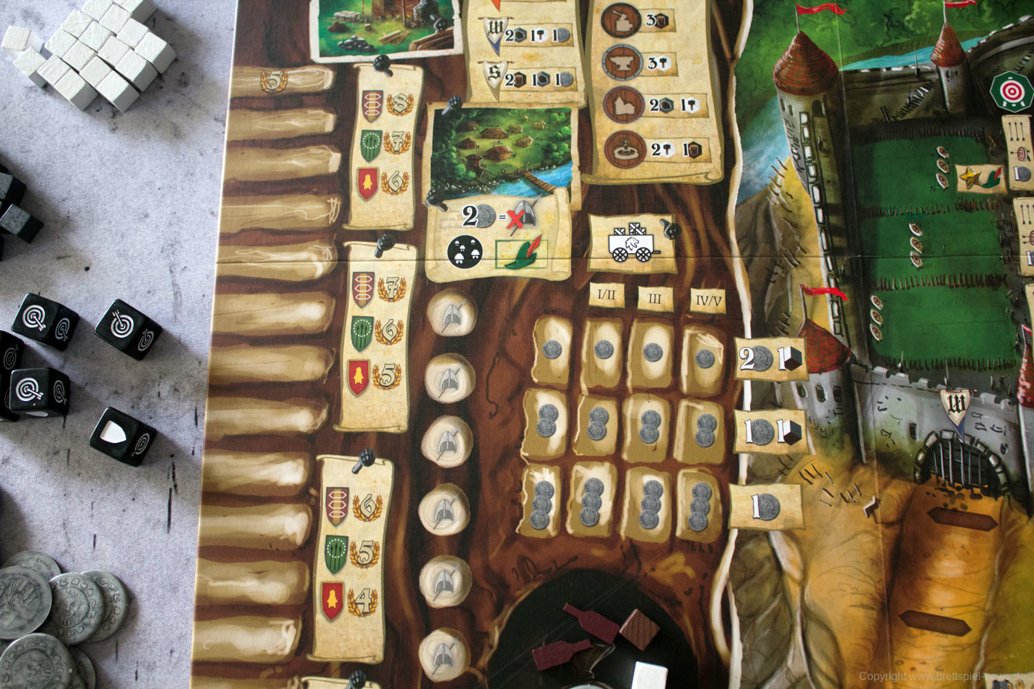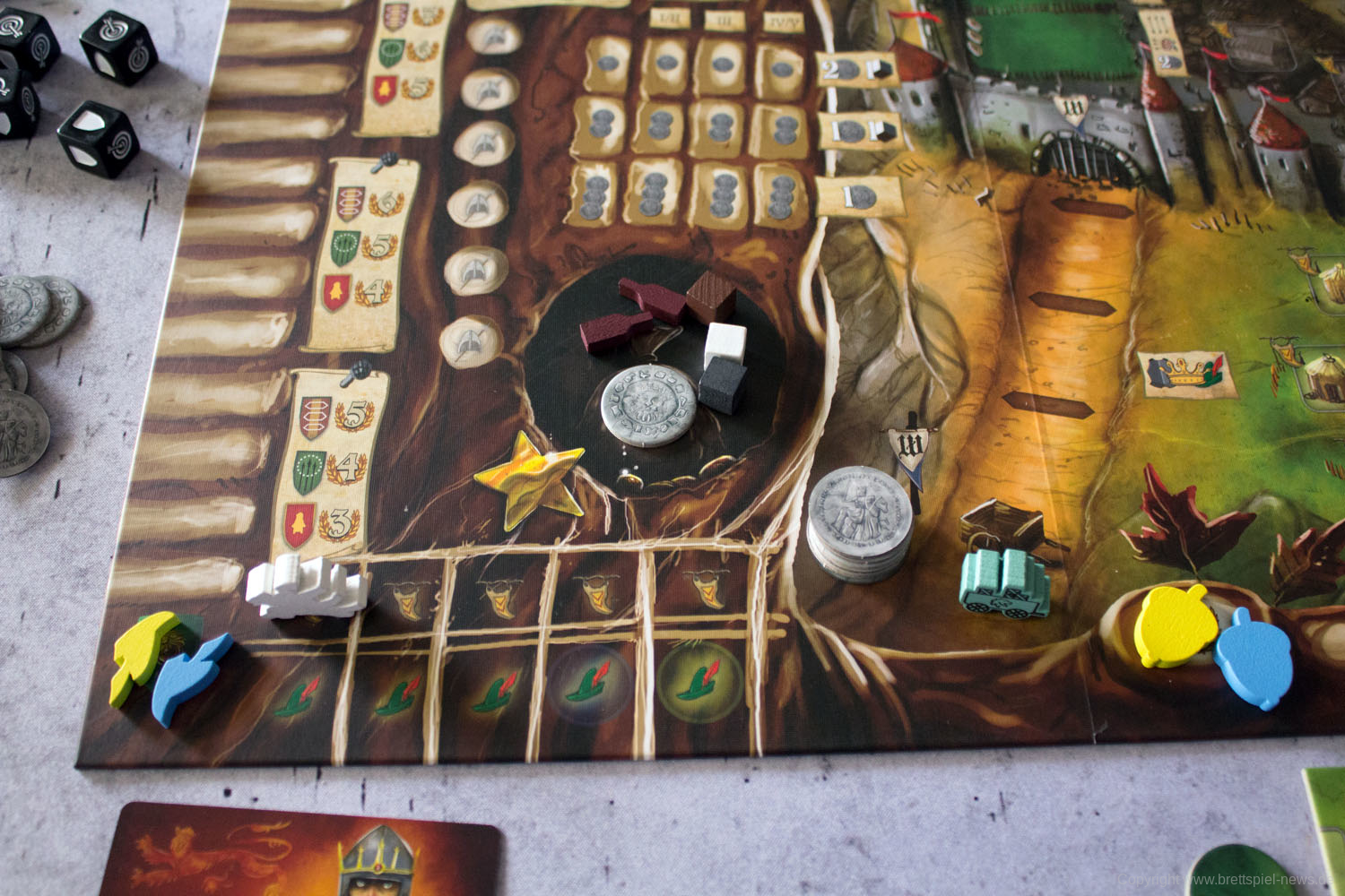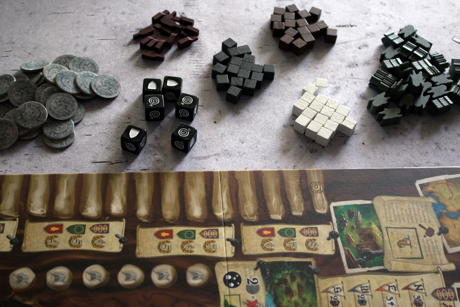 Wir haben ein Exemplar von ROBIN HOOD AND THE MERRY MAN als deutsche Version erhalten und zeigen Bilder vom Spielmaterial. Der junge Verlag TL Games hat die deutsche Version veröffentlicht. Das Spiel richtet sich an 1-5 SpielerInnen ab 13 Jahren und soll eine Spielzeit von 60-90 Minuten bieten.
