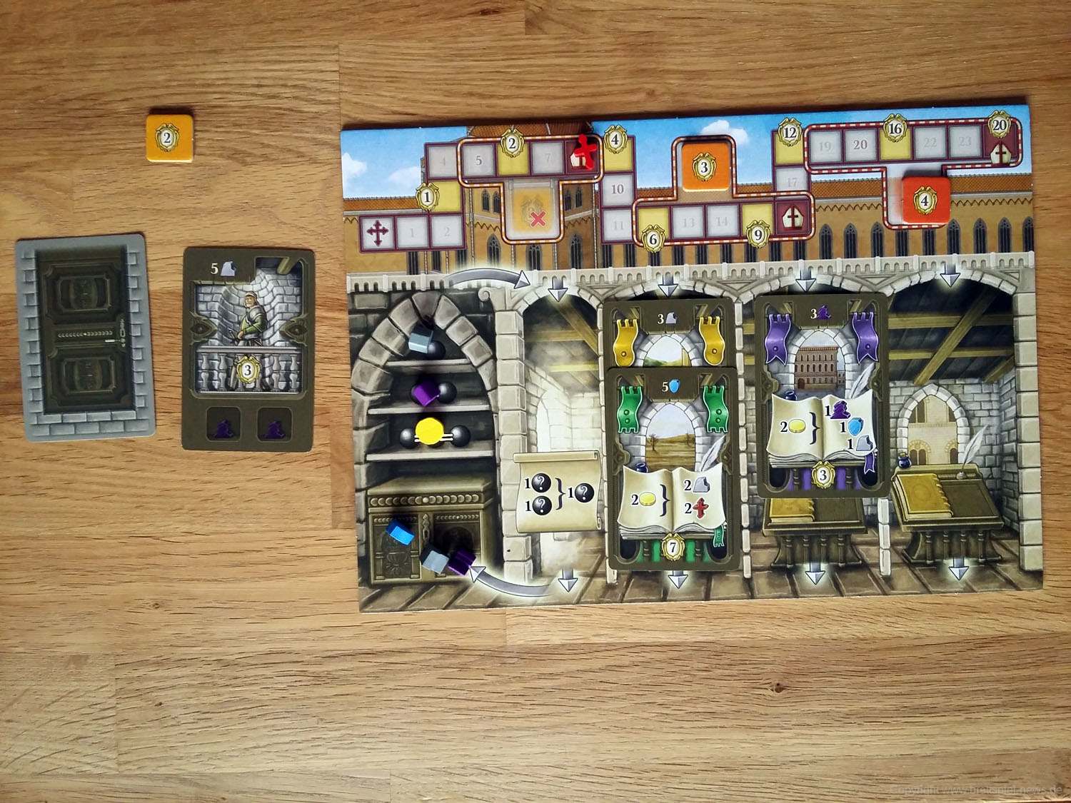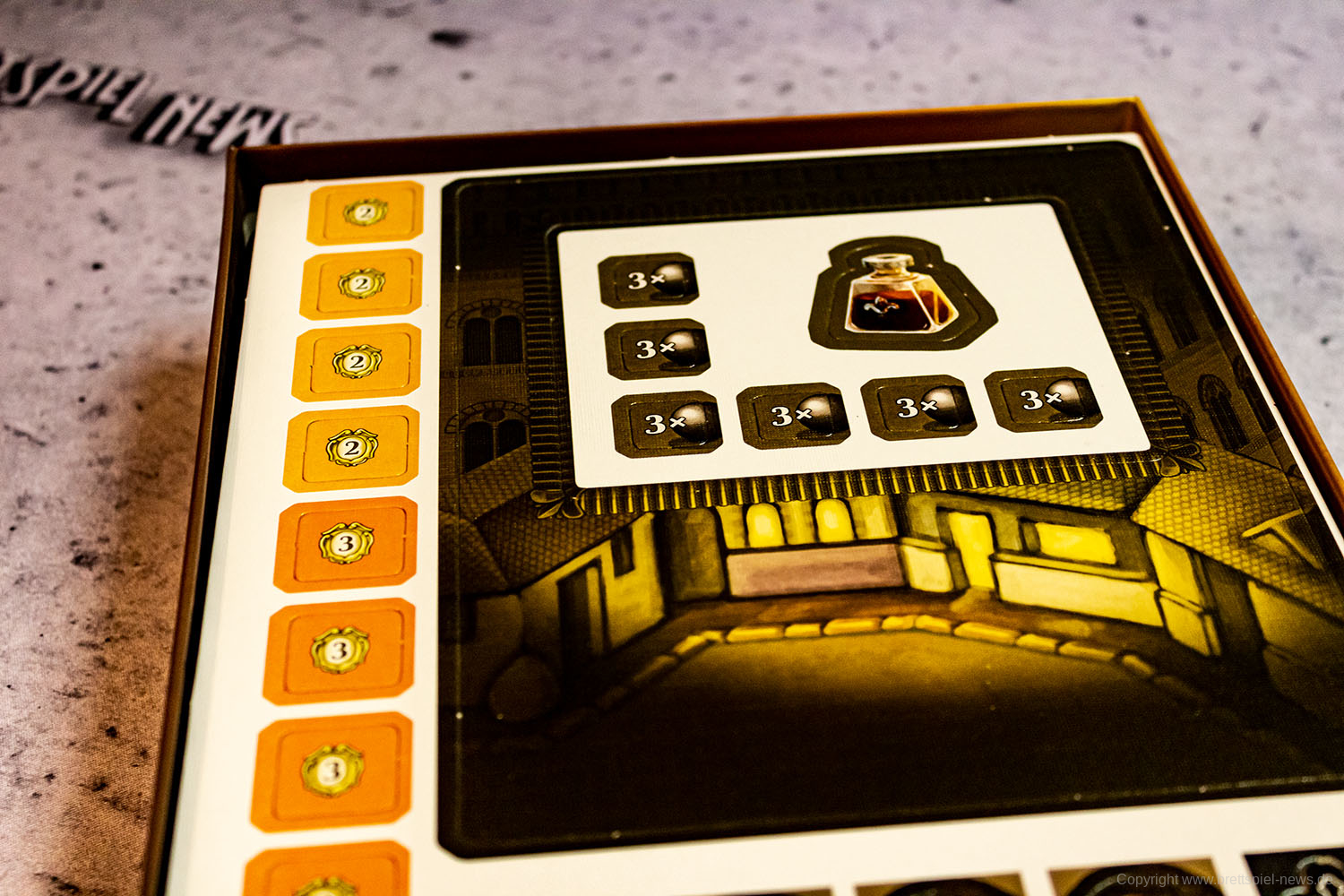 Eine Partie soll 60 Minuten dauern und laut Verlag einfaches Engine Building bieten. Der Verlag hat es schon als lieferbar gekennzeichnet, so dass es bald auch im regulären Handel ankommen sollte. Das Spiel stammt von SIMONE LUCIANI & NESTORE MANGONE, die Grafik haben KLEMENS FRANZ und ROBERTO GRASSO verantwortet.