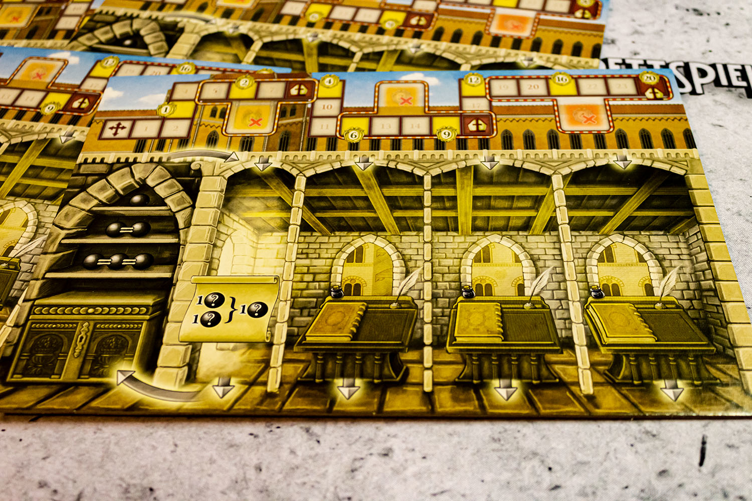 Meister der Renaissance hat einfache Regeln, bietet bei der Auswahl von Aktionen und durch das Auslösen von Kombinationseffekten aber trotzdem viele strategische Möglichkeiten.