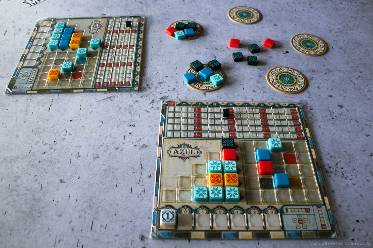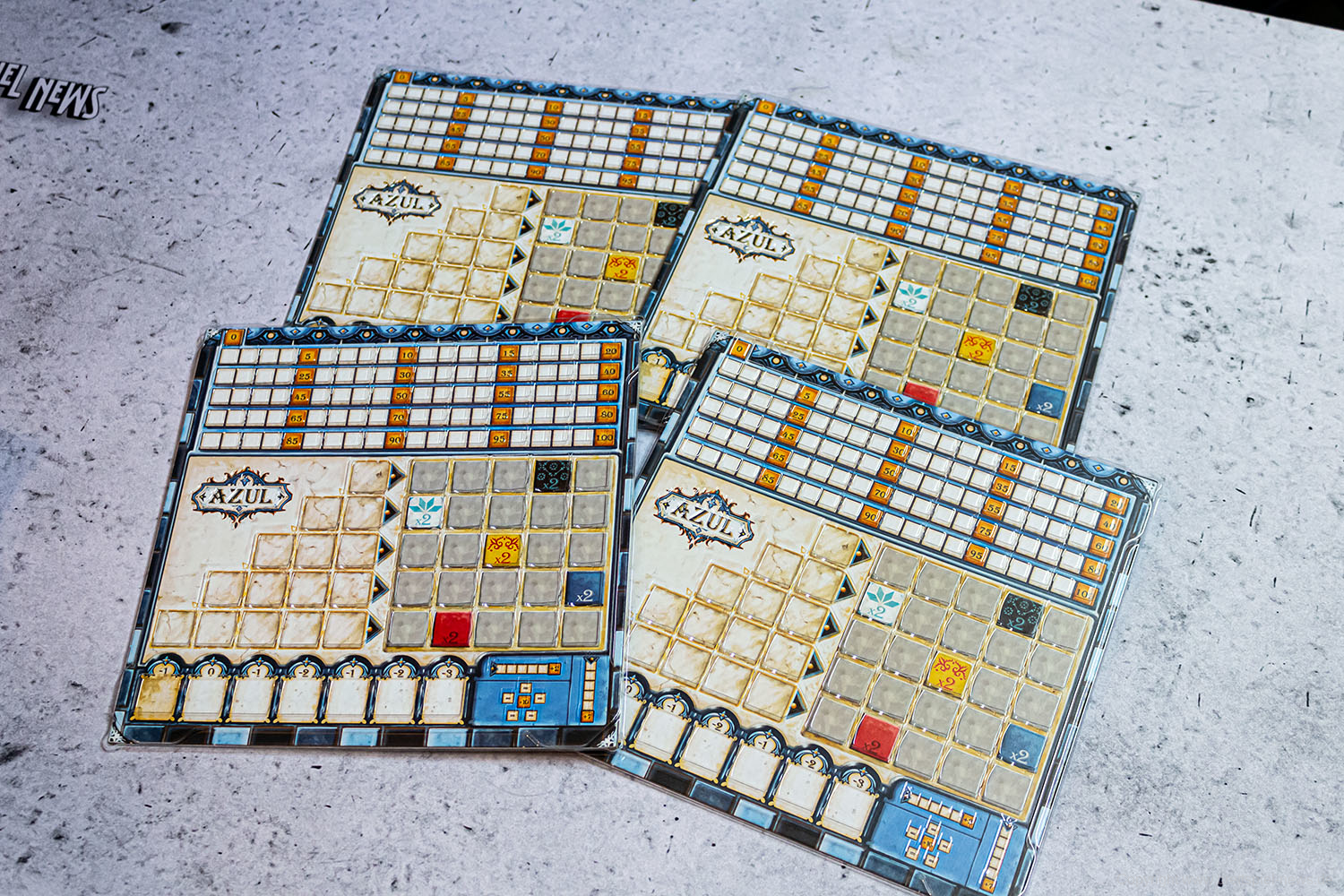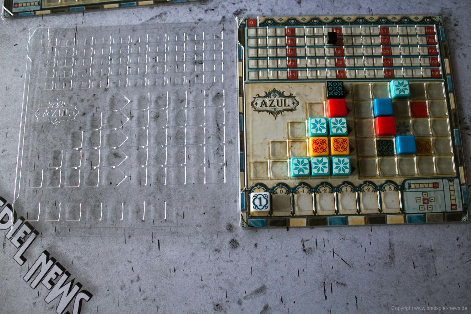 Azul: Das gläserne Mosaik erweitert Azul um vier neugestaltete Spielerablagen, die neue Strategien ermöglichen. Zusätzlich enthält sie vier transparente Kunststoffauflagen, die Ablageflächen für alle Spielmaterialien bieten und so dafür sorgen, dass nichts mehr versehentlich verrutschen kann.