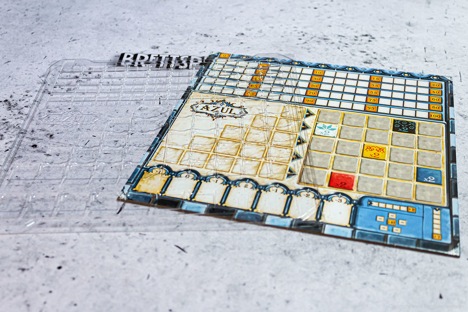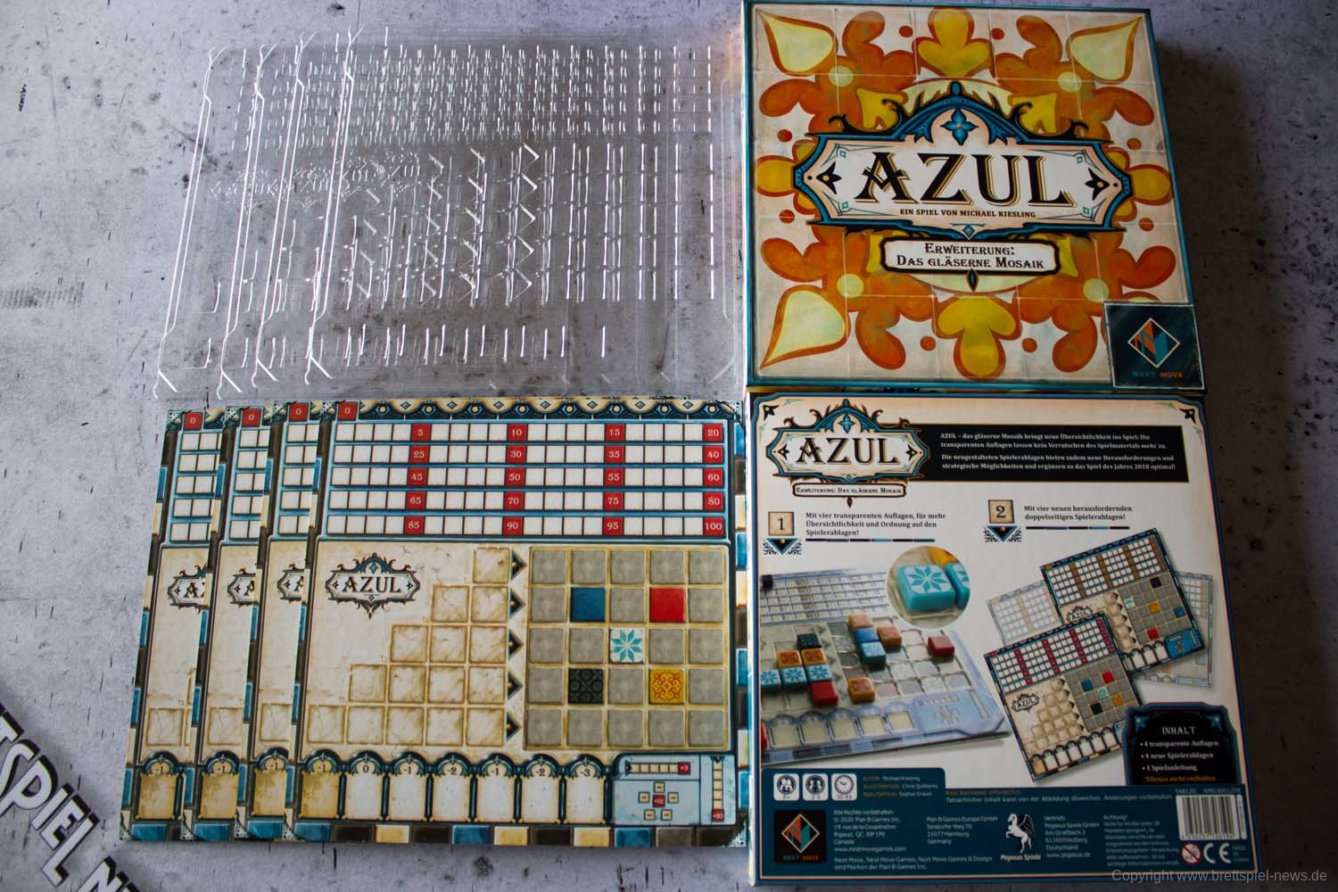 Wir haben uns ein Exemplar der AZUL Erweiterung DAS GLÄSERNE MOSAIK besorgt und zeigen Bilder vom Spielmaterial. Vor allem enthält das Spiel neue Tableaus und Kunststoff-Overlays, die für Liebhaber von Azul sicherlich reizvoll sein dürften.