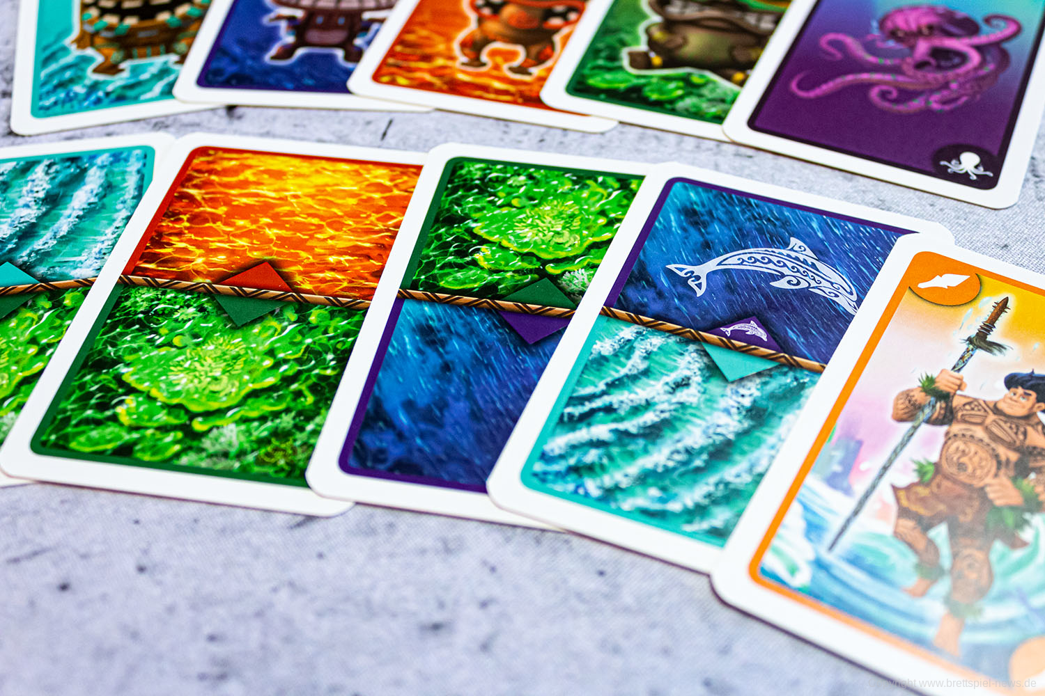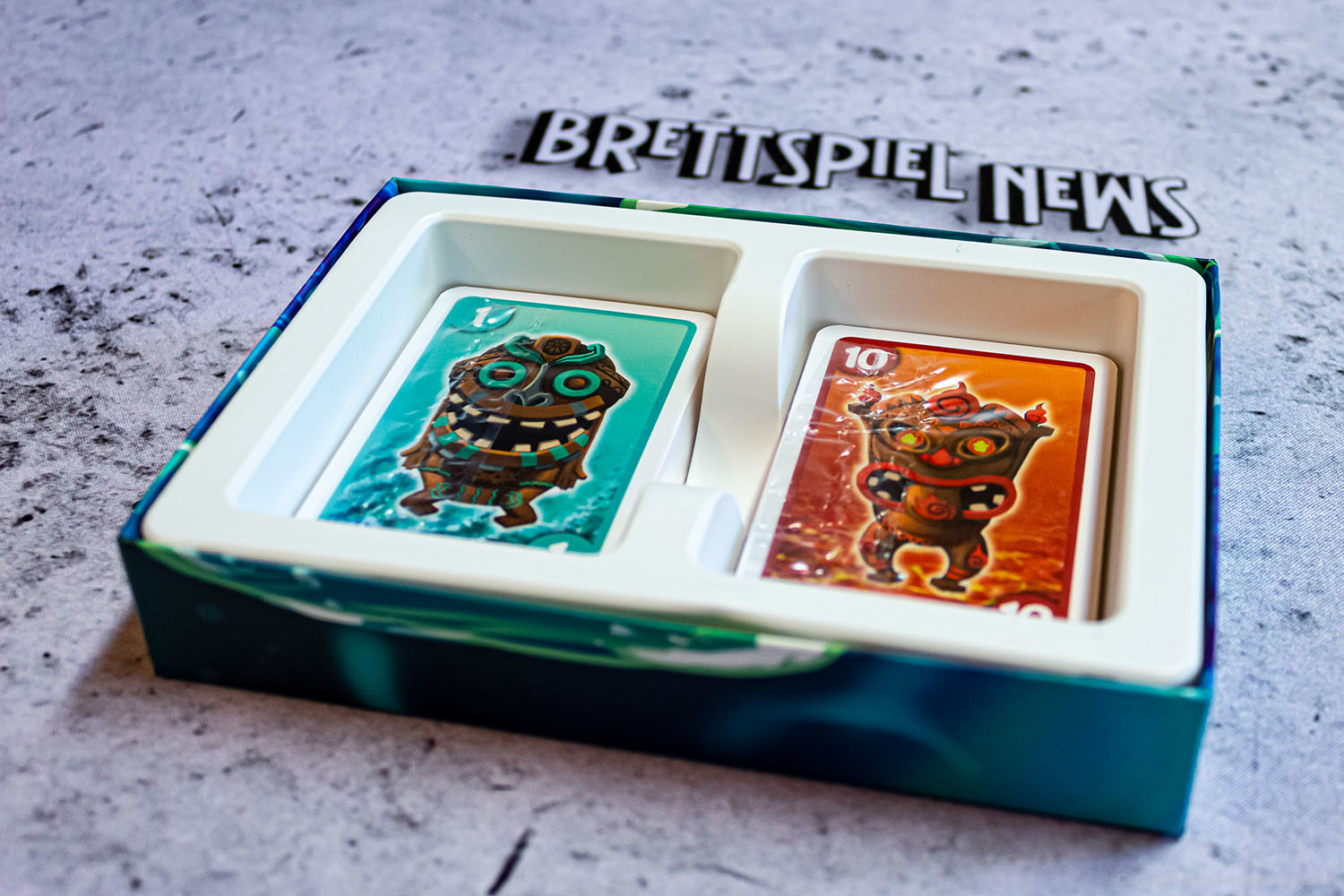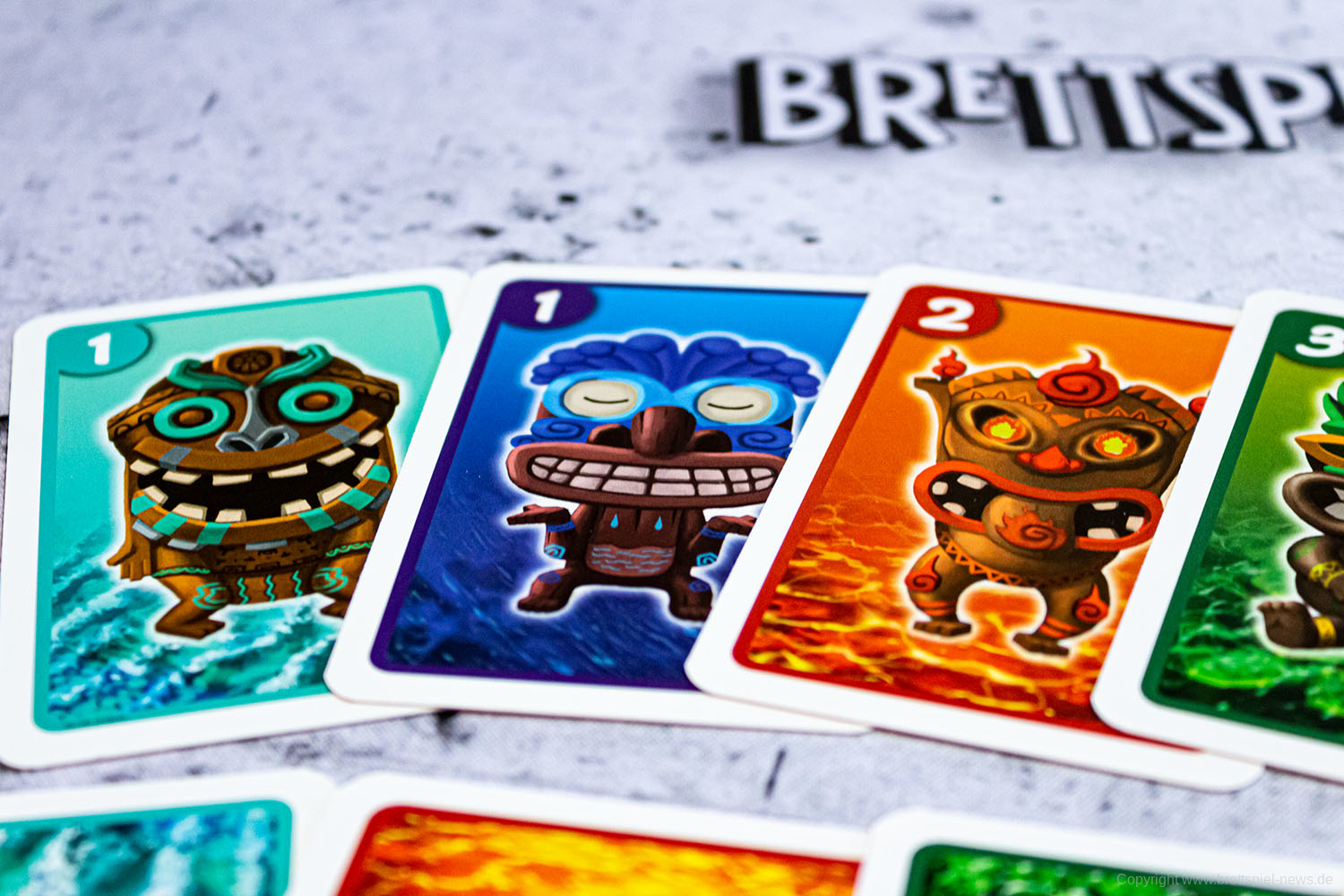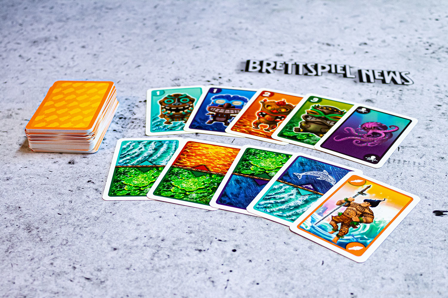 Die Spieler segeln in einen rasanten Wettstreit auf dem Meer. Um Stiche zu gewinnen und Punkte zu machen müssen die unterschiedlich farbigen Tiki-Karten taktisch ausgespielt werde.