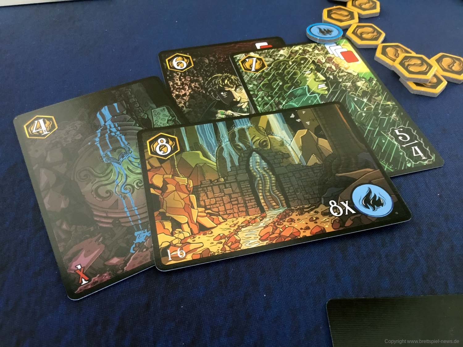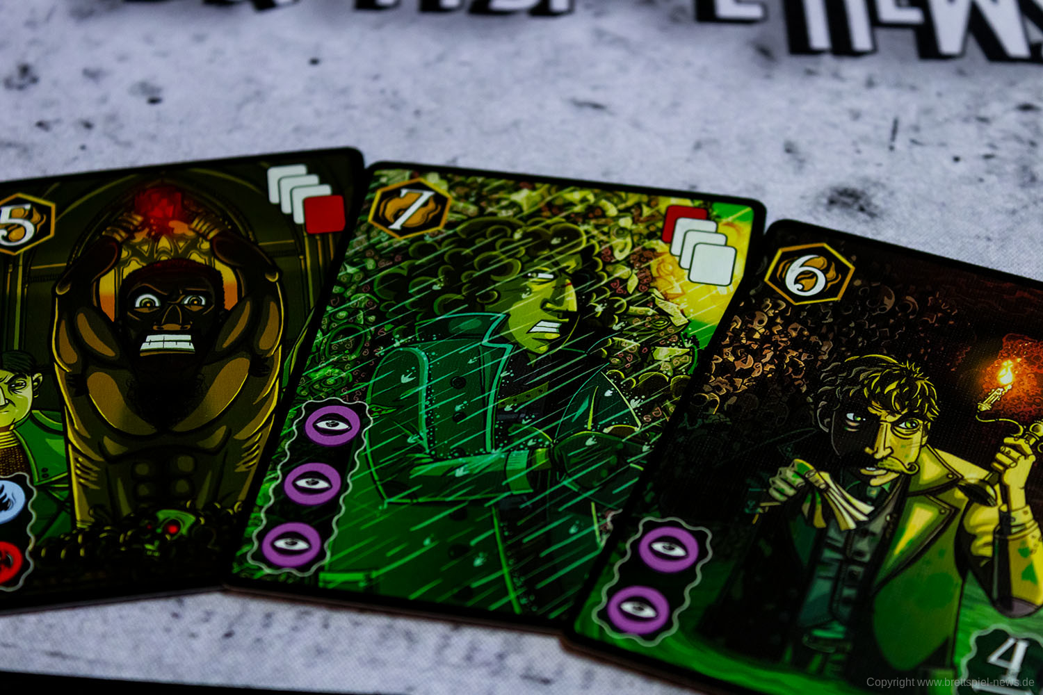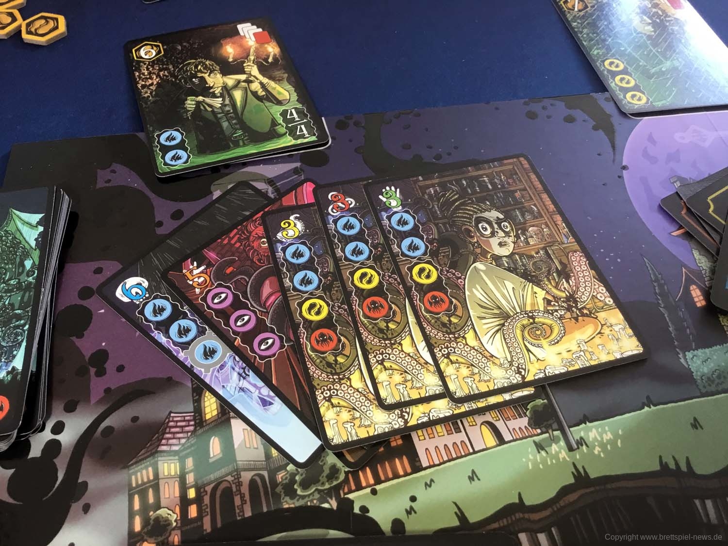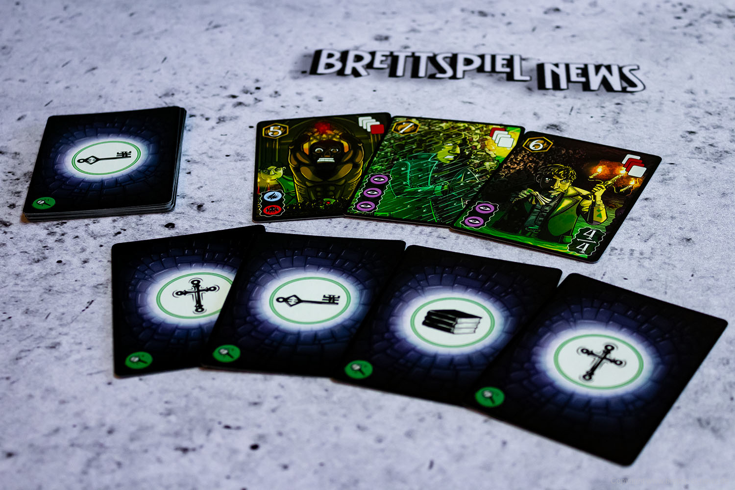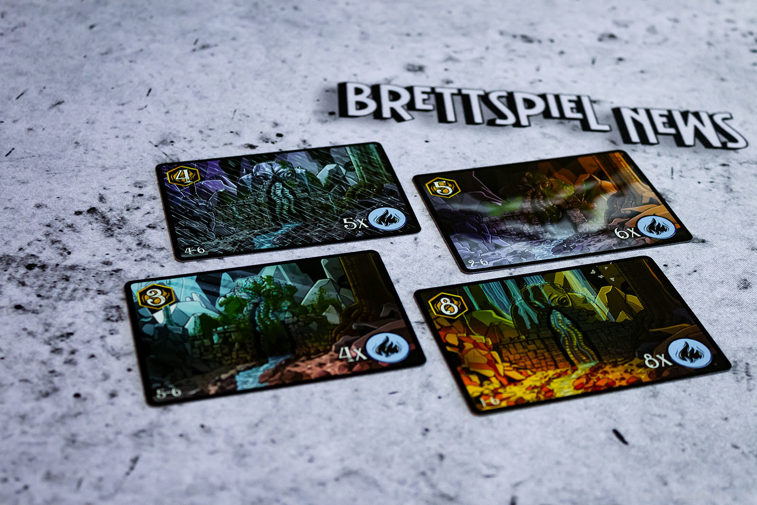 Wir haben ein Exemplar der Neuheit 7 SEELEN vom SCHWERKRAFT VERLAG gekauft und zeigen nun erste Bilder des Spiels. Das Spielmaterial macht einen guten Eindruck und auch die Grafik ist mit einem eigenen prägnanten Stil versehen. Das Spielfeld ist teilweise mit Glanzdruckfarbe bedruckt, was zu schönen Kontrastverhältnissen führt. 7 SEELEN richtet sich an 1-6 Spieler ab 8 Jahren und bietet Spielrunden von 30-40 Minuten Spielzeit.