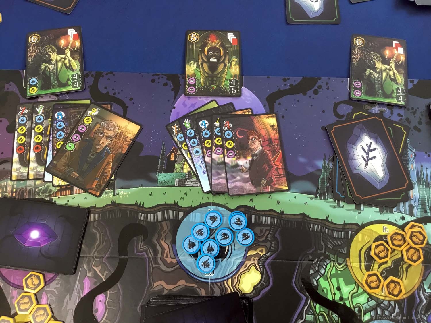Um sich gegen die anderen Spieler durchzusetzen, muss er seine Charakterkarten strategisch sinnvoll auf die verfügbaren Orte spielen, um Macht- oder Seelenmarker zu erhalten, Verderbniskarten zu nehmen, Horror-Karten abzugeben oder Ermittler ins Verderben zu stürzen. Setzen mehrere Spieler den gleichen Charakter auf einem Ort ein, müssen sie eine Loyalitätsprobe abschließen, um zu ermitteln, wem der Charakter dient. Um einen Ermittler ins Verderben zu stürzen, müssen die Spieler mit ihren Karten einen bestimmten Verderbniswert erreichen. Ermittler sollten schnell ausgeschaltet werden, denn wenn sie angreifen, stehlen sie den Spielern Marker und Karten. Zudem können die Spieler die Kontrolle über Altäre übernehmen und Segenskarten nehmen, wenn sie die Voraussetzungen erfüllen. Der Spieler mit den meisten Seelenpunkten am Spielende reißt die Weltherrschaft an sich.