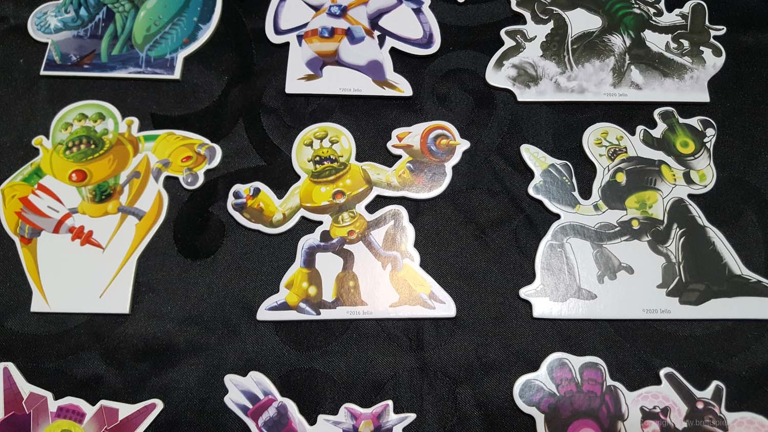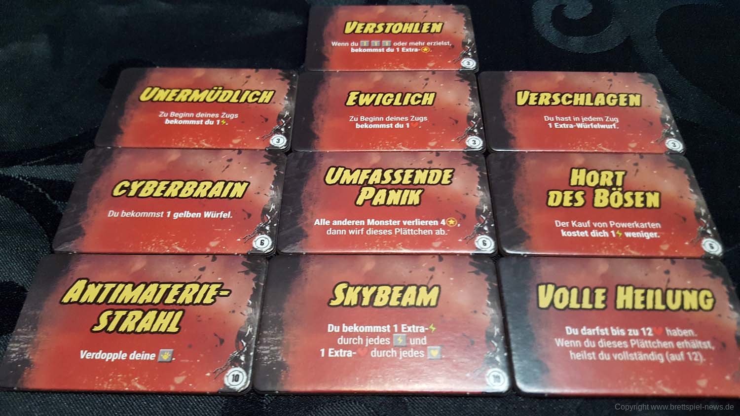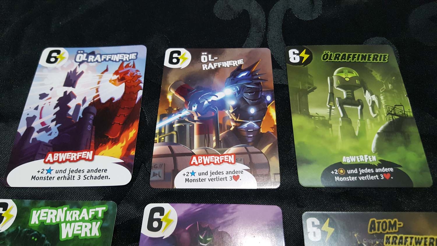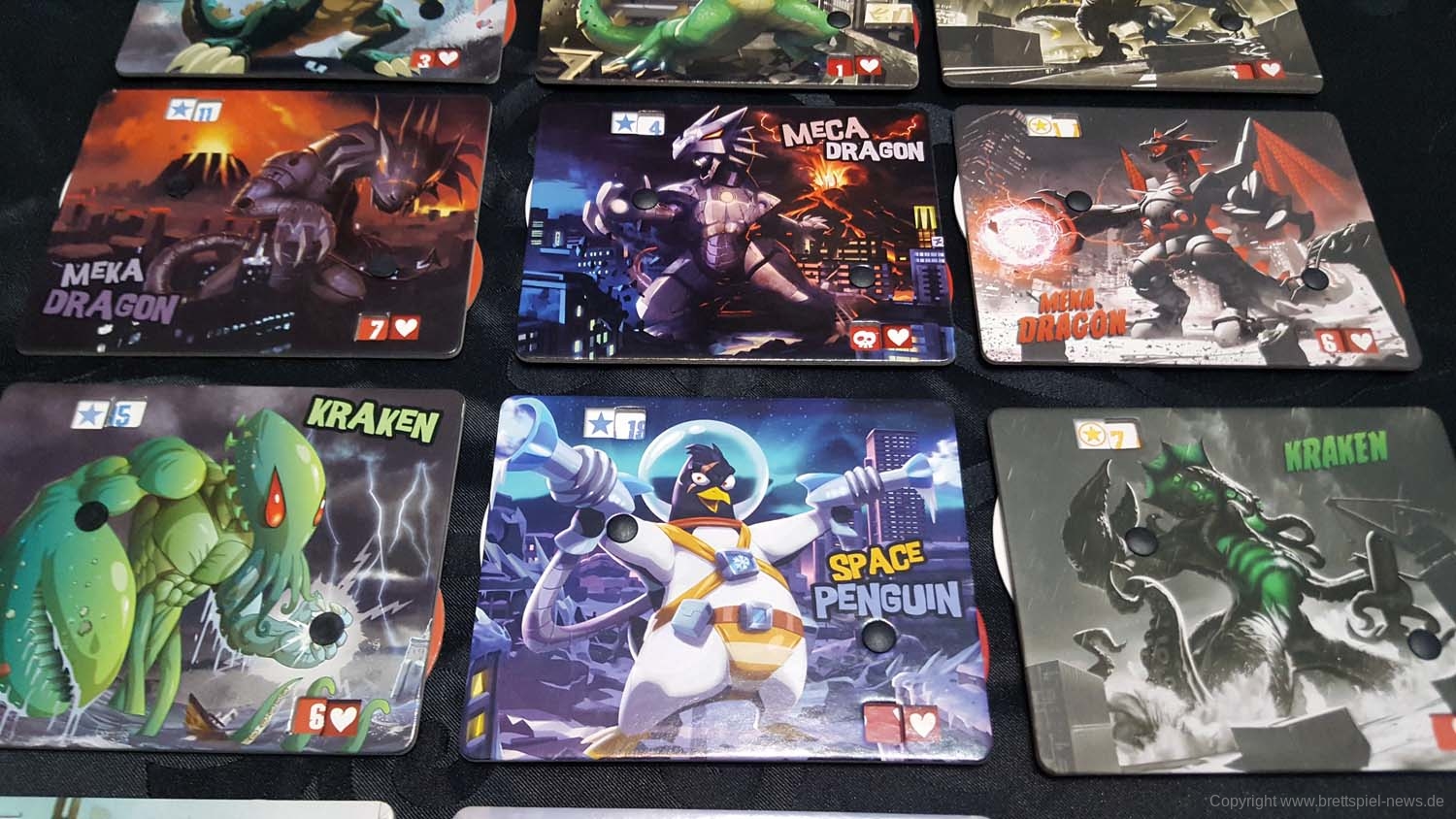 - die Monstertafeln, der Spielplan sowie die Schachtel besitzen einen Foliendruck