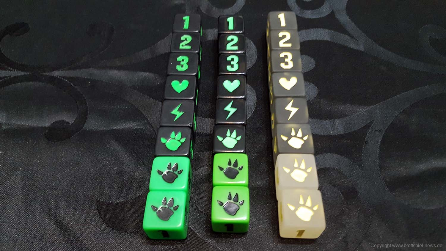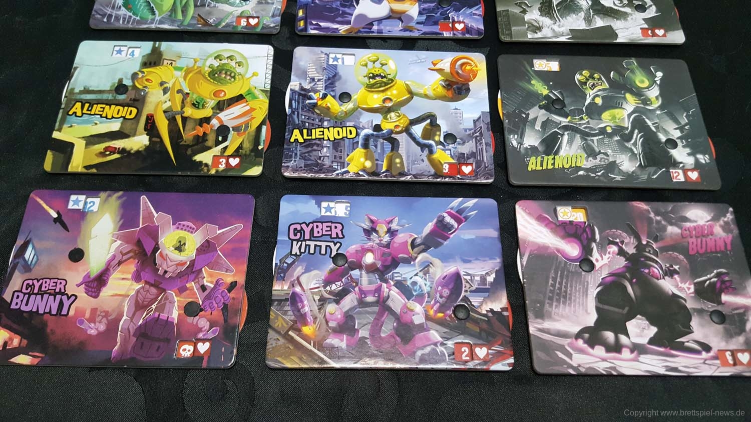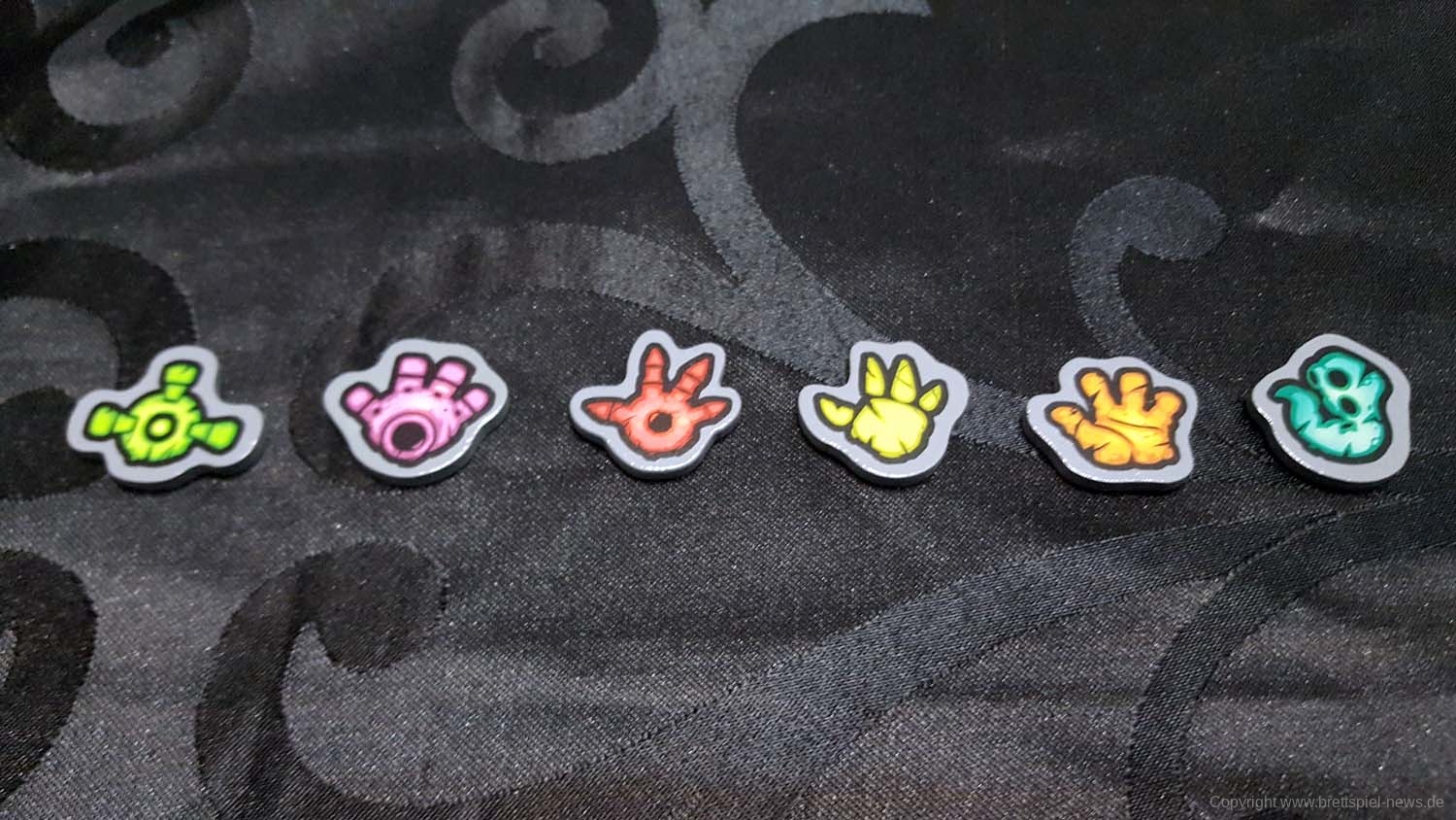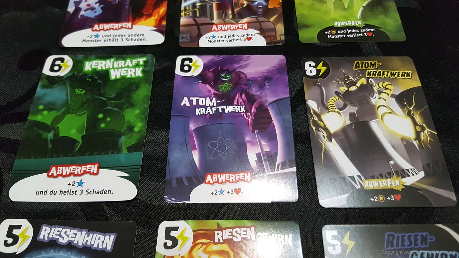 - die Monstertafeln, der Spielplan sowie die Schachtel besitzen einen Foliendruck