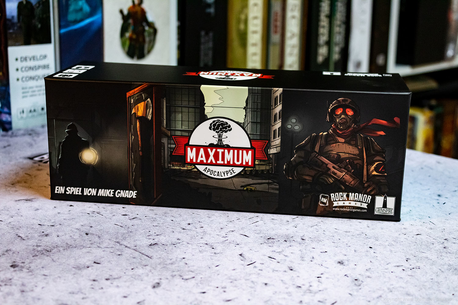Maximum Apocalypse ist ein kooperatives Abenteuerspiel mit Schurkencharakteren für 1-6 Spieler.In Maximum Apocalypse ist die Zivilisation bereits untergegangen. Die Spieler sind Überlebende der Apokalypse, deren Aufgabe es ist, die feindliche Landschaft zu überleben.