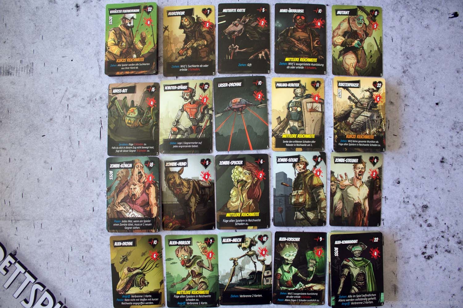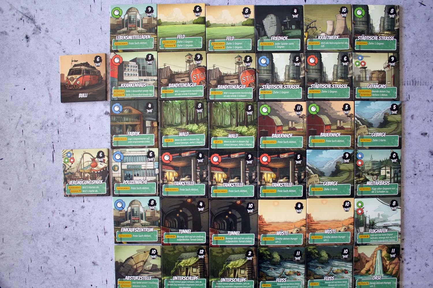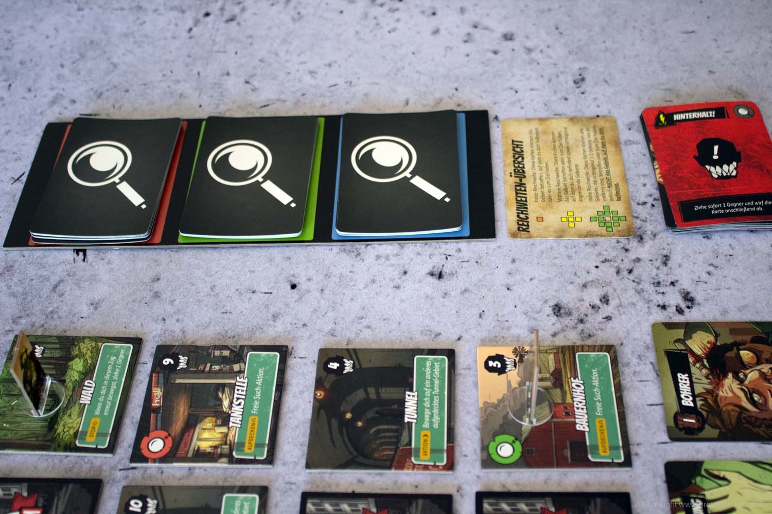 Die Spielkarte wird nach dem Zufallsprinzip generiert und ist jedes Mal, wenn Sie spielen, anders. In jedem Spielzug kann ein Spieler bis zu vier Aktionen ausführen, um die Karte zu erkunden, Karten zu spielen, Waffen auszurüsten, Ressourcen zu plündern, Karten zu ziehen oder Monster zu bekämpfen.