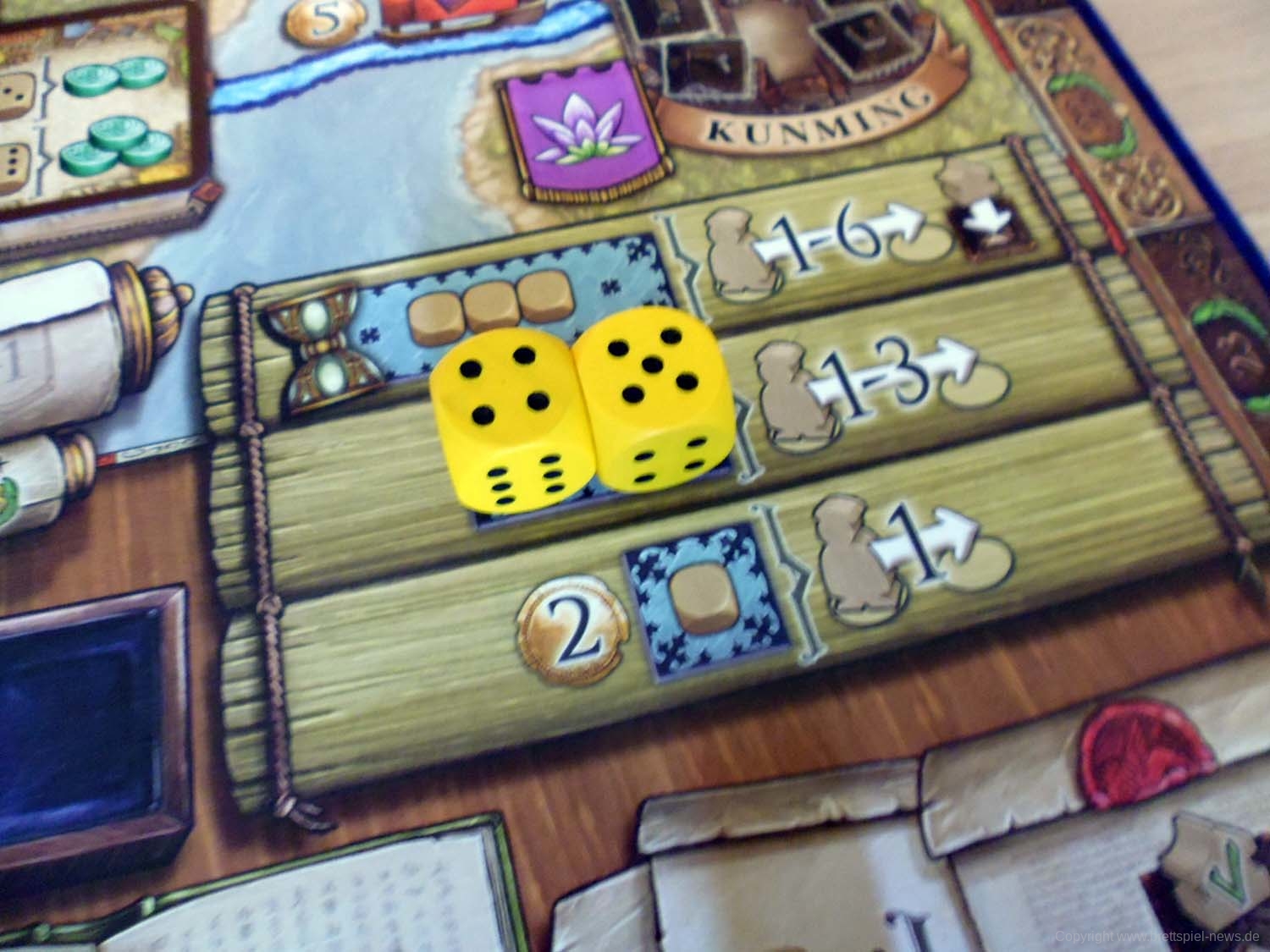 Außerdem sind hier einige kleinere Makel von Teil 1 ausgebessert worden. So können die großen und kleinen Warenmarker in Teil 2 nun einfacher voneinander unterschieden werden. Ein weiterer Pluspunkt von Teil 2 ist, dass die Reisekosten direkt auf dem Spielplan abgedruckt sind. Das erspart einem das mühselige Zusammenzählen zwar, macht den Spielplan aber leider auch etwas unübersichtlicher.