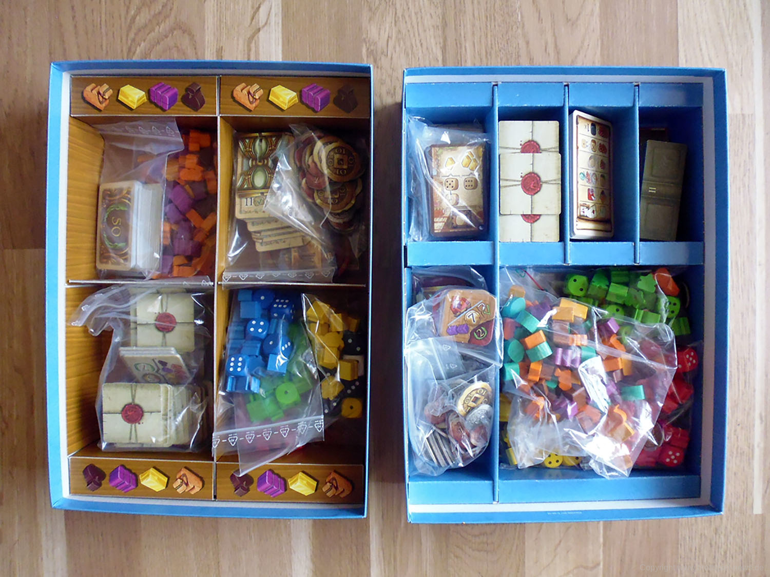 Ein Minuspunkt von Teil 2 ist hingegen, dass der Schachteleinsatz sehr zweckmäßig geraten ist und damit nicht so schön illustriert ist wie jener aus Teil 1.