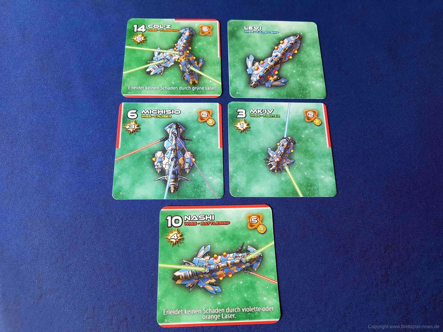 Jede Runde feuern unterschiedliche Schiffe Ihre Laser ab und nutzen Ihre Fähigkeiten, um die gegnerischen Schiffe zu zerstören.