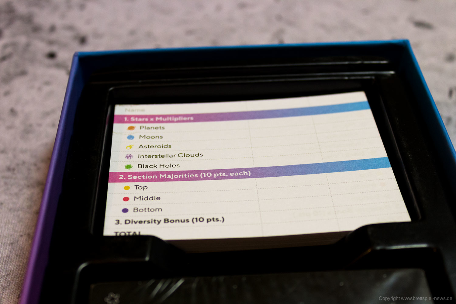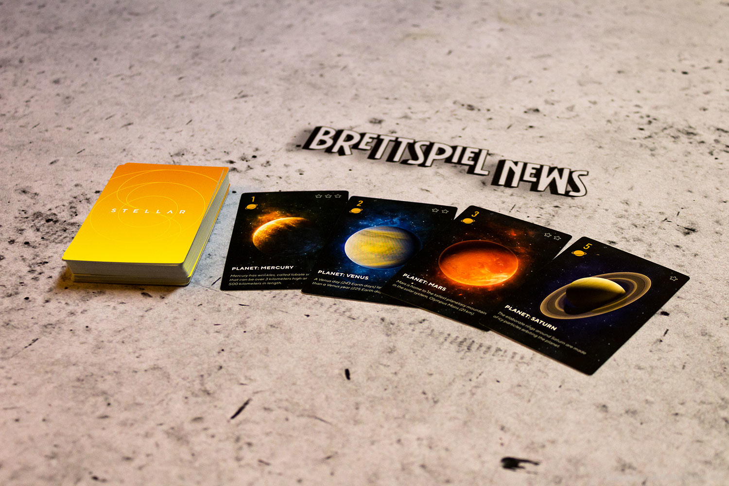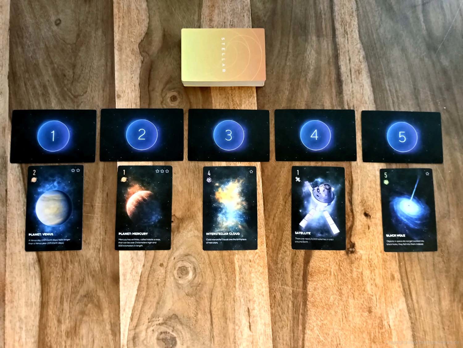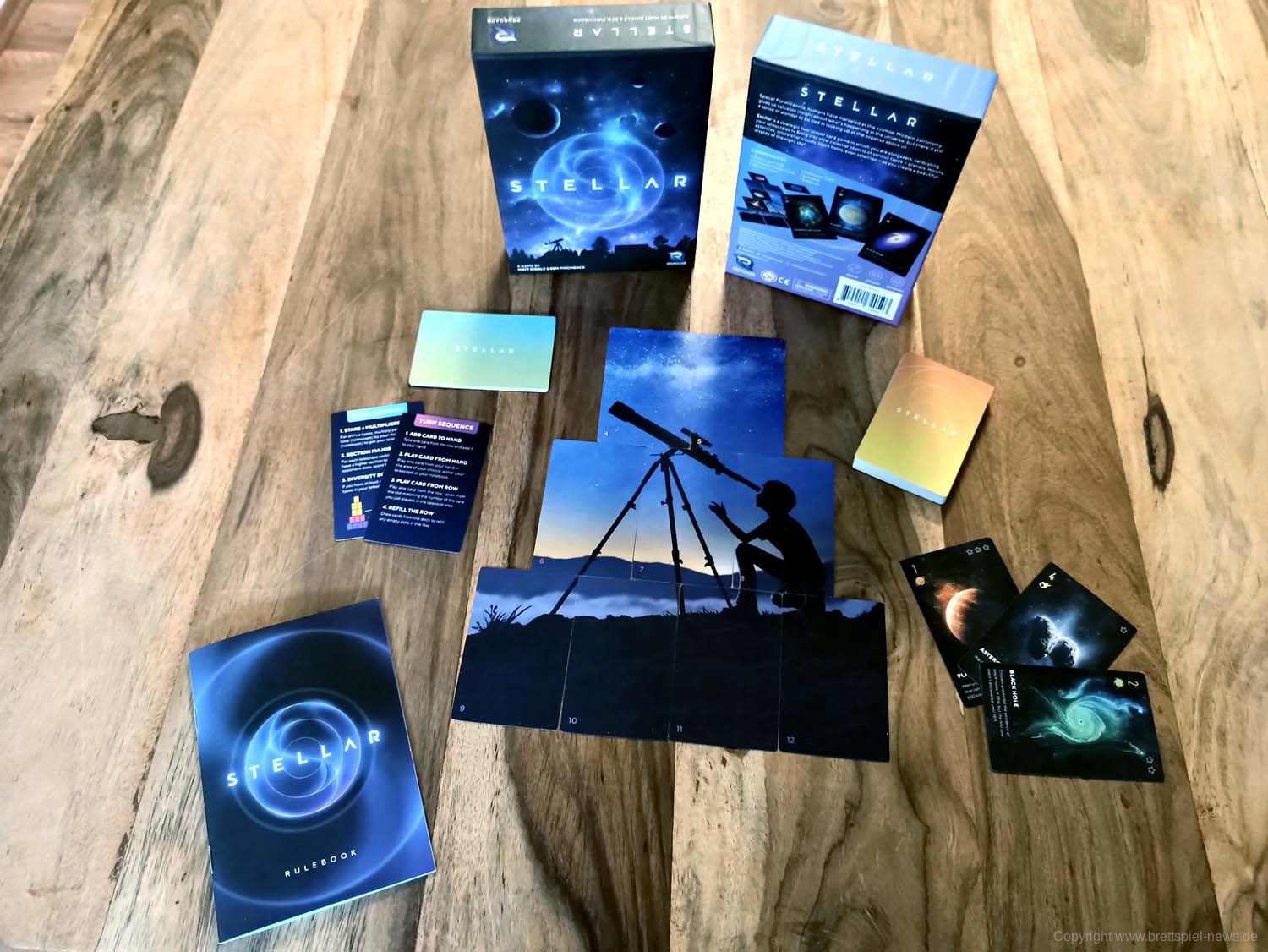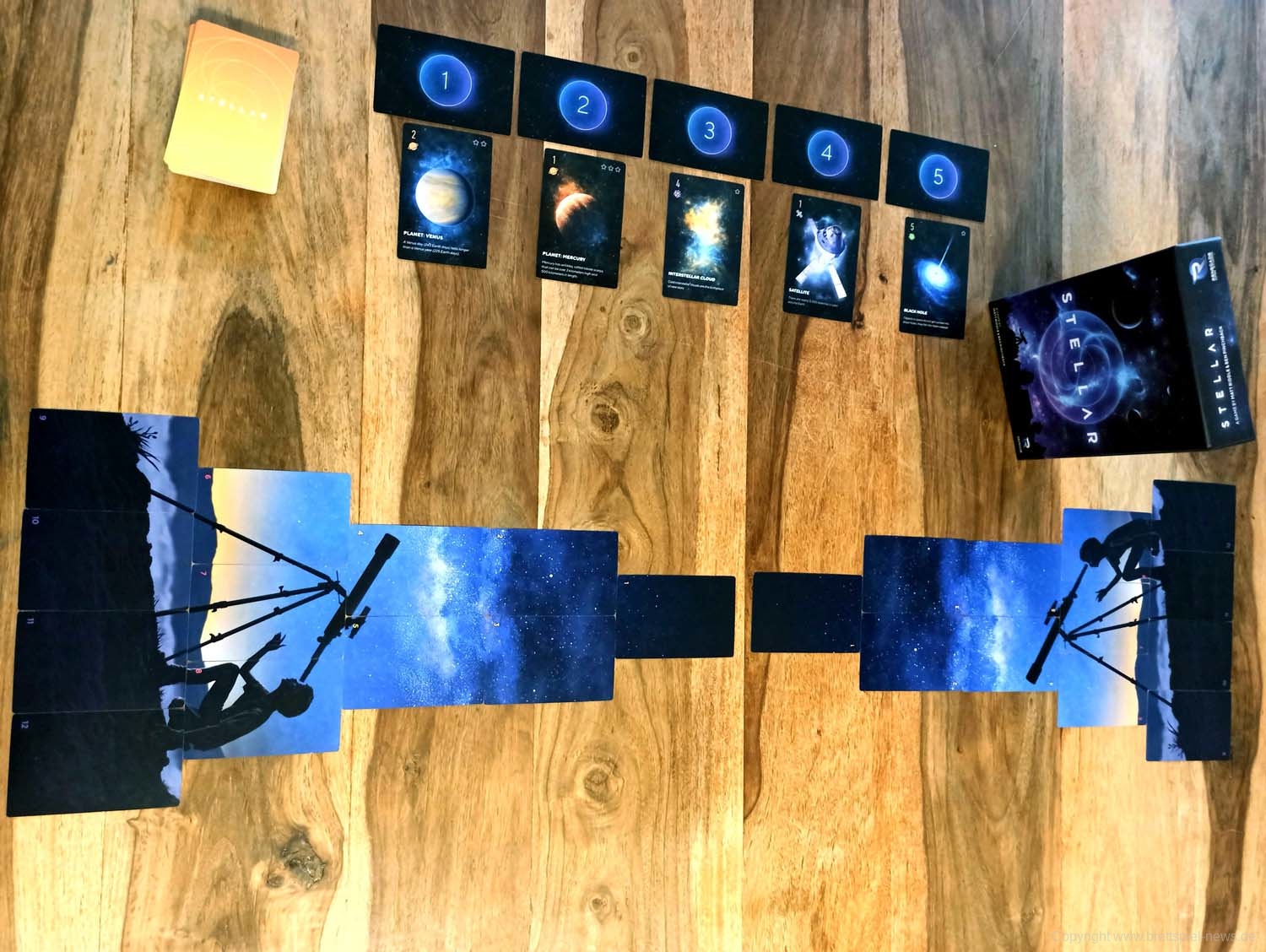 Bei den RENEGADE GAME STUDIOS ist STELLAR erschienen. Das hübsche Kartenspiel für zwei Spieler stammt vom Autoren-Team Matt Riddle und Ben Pinchback. Gestaltet wurde es von Tim Barton & Janos Orban. Eine Partie dauert rund 30 Minuten, der Preis liegt bei etwa 18 € für die derzeit nur verfügbare englische Version.