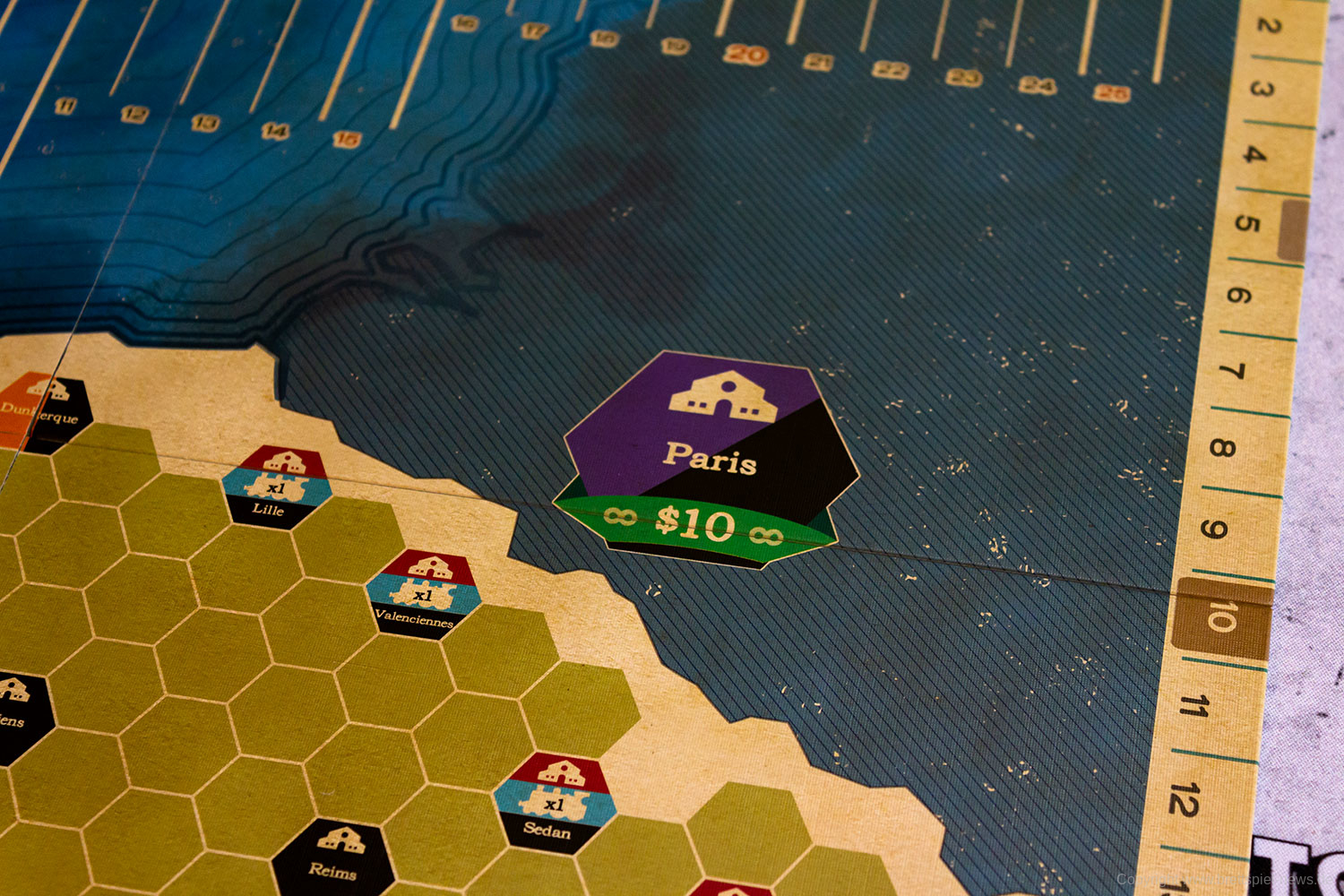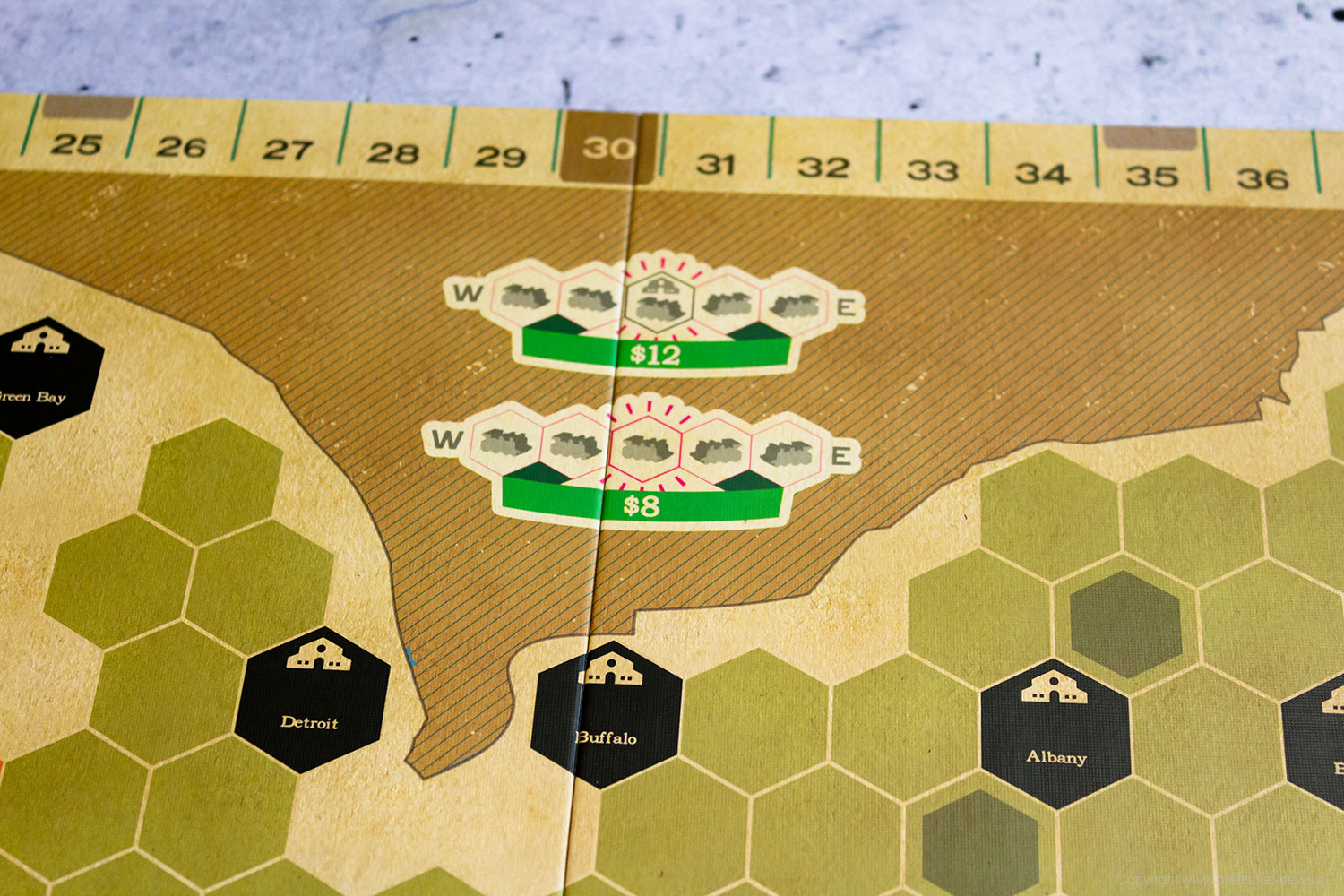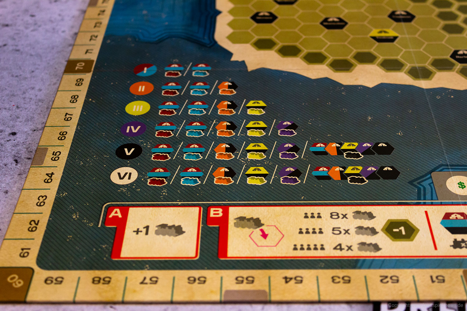 Wir haben die Neuheit RIDE THE RAILS von CAPSTONE GAMES bei fantasywelt.de gekauft und zeigen nun Bilder vom Spielmaterial. Wer der englischen Sprache mächtig ist, kann sich das Spiel vom Autoren JOHN BOHRER anschauen. Die Grafik stammt übrigens vom bekannten Grafiker IAN O'TOOLE der auch für die puristische Grafik von der AGE OF STEAM Deluxe Edition verantwortlich ist.