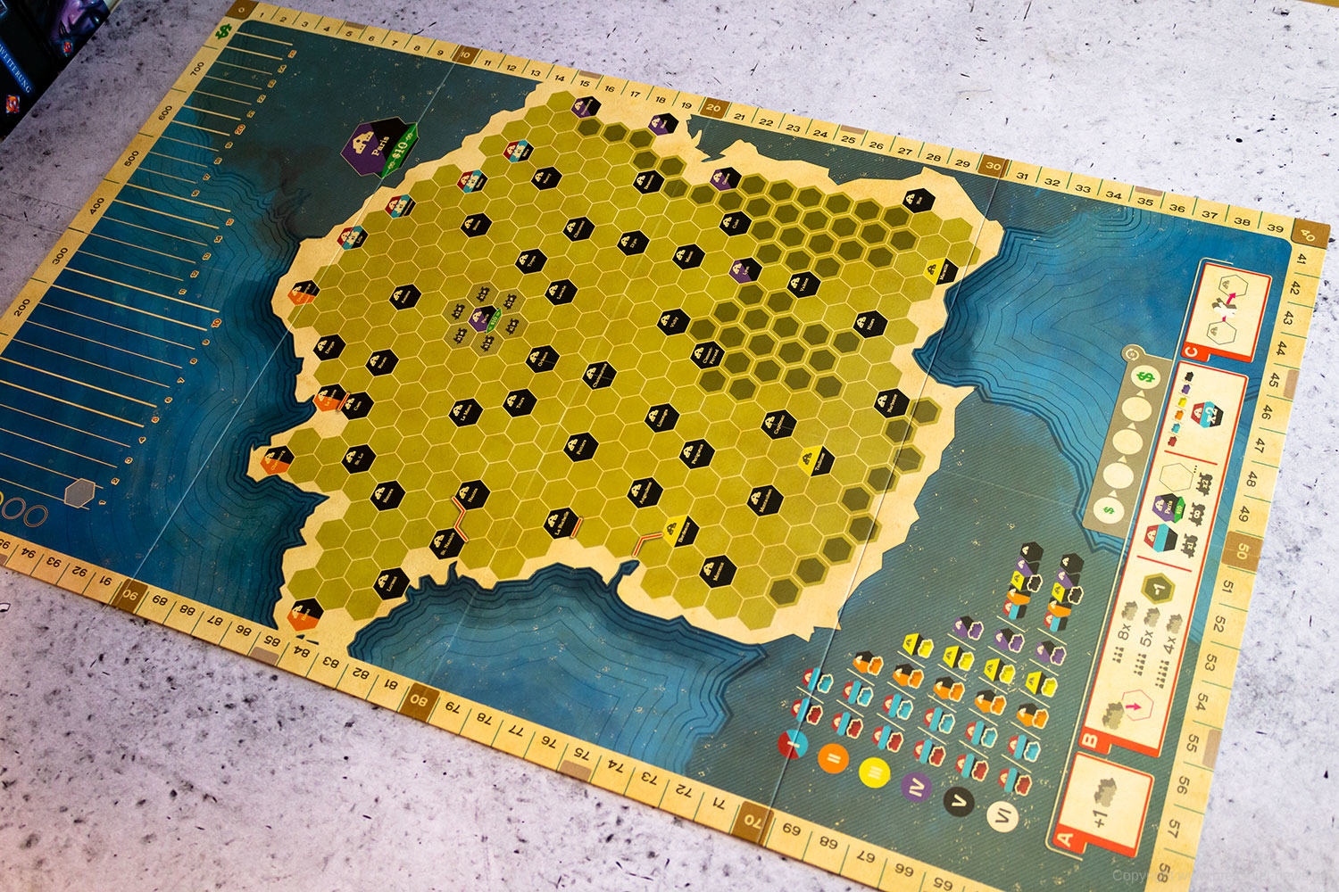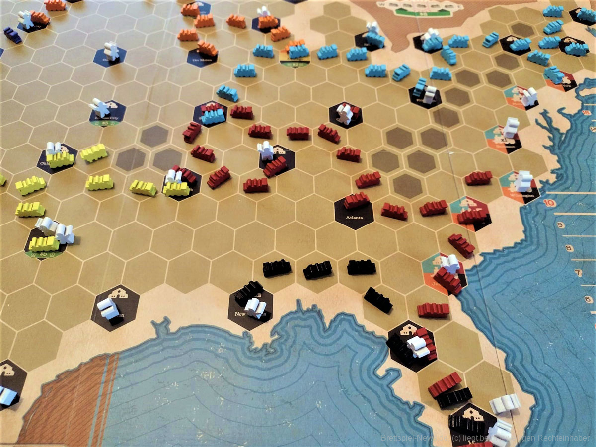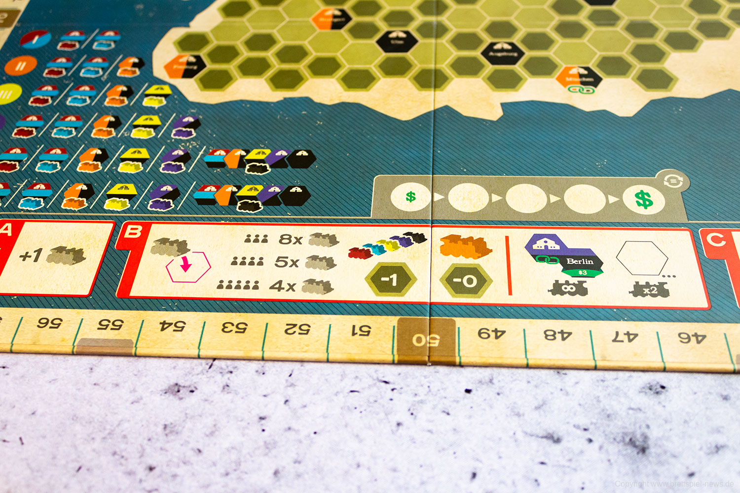Klassischerweise gibt es im Spiel Aktien und Beteiligungen an Eisenbahngesellschaften. Wer mag kann auch eine Erweiterung mit Deutschland und Frankreichkarte erwerben. Auch diese sind aktuell verfügbar.
