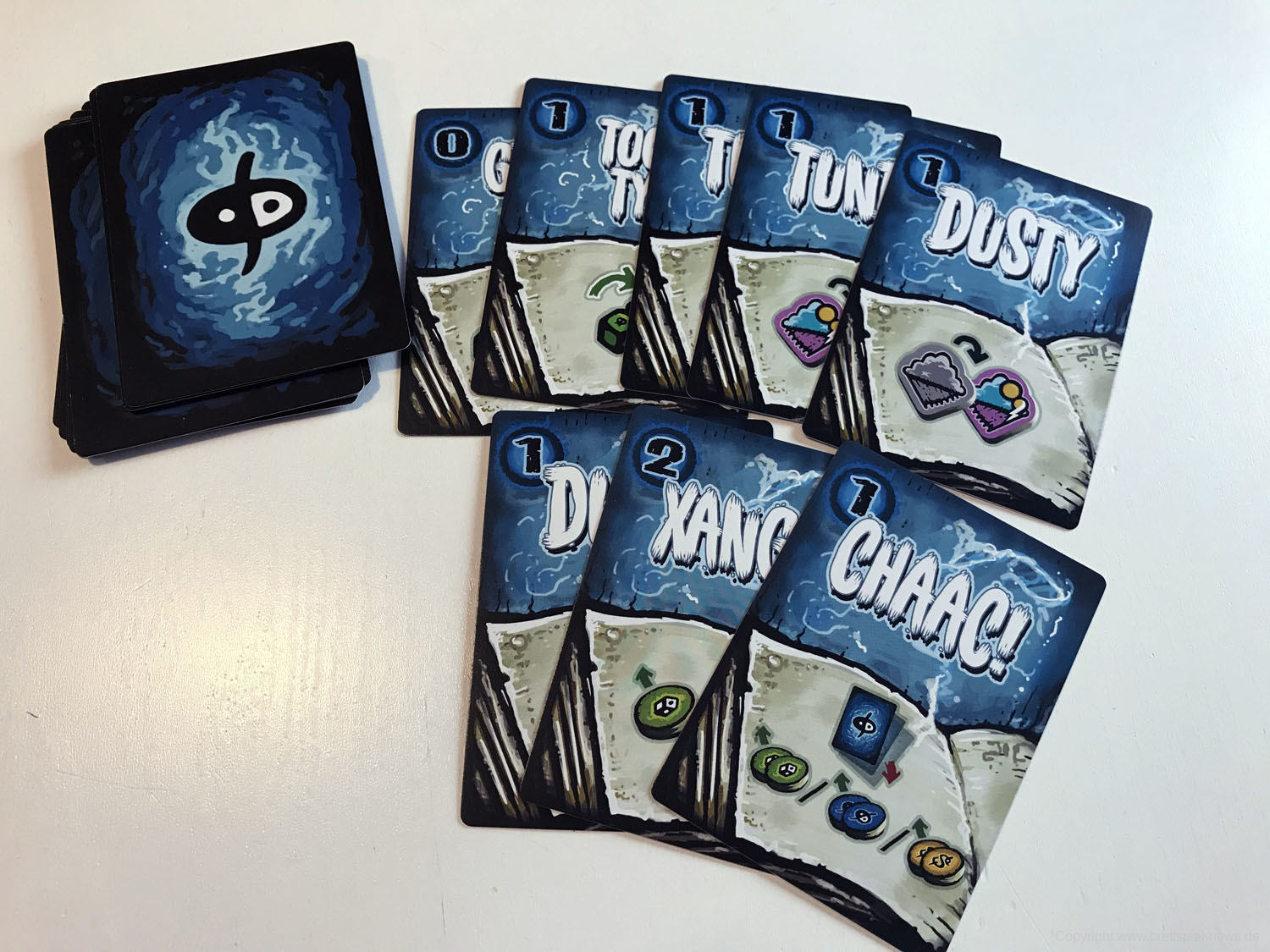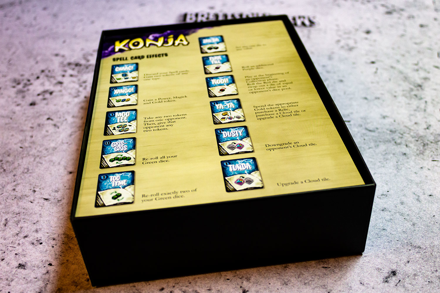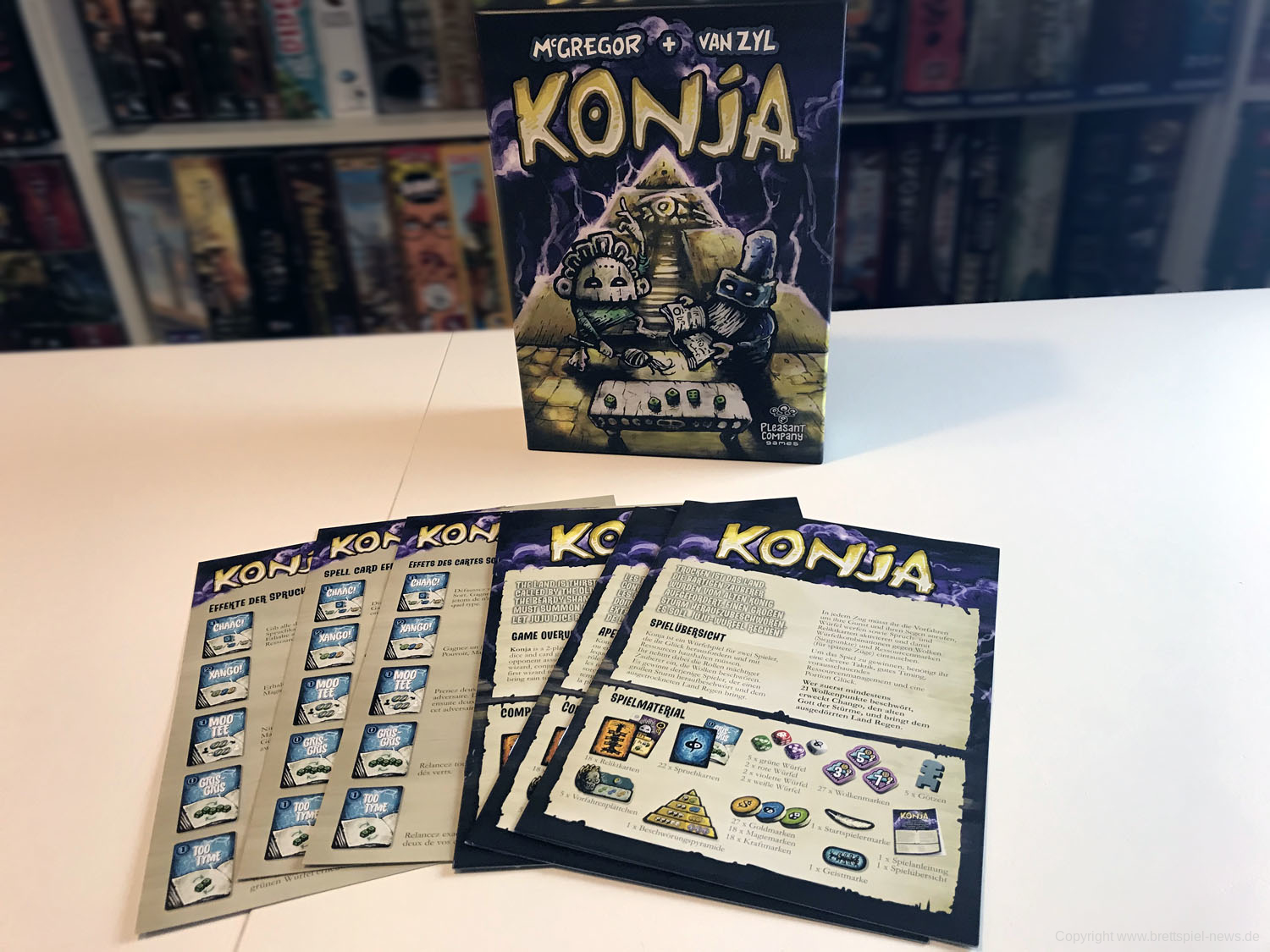 Bei FEUERLAND (Blue Lable, Anm. d. Red.) ist KONJA 2017 erschienen. Wir haben uns nun ein Exemplar des Spiels besorgt und zeigen Bilder vom Spiel für 2 Spieler, die als Zauberer aufeinandertreffen. Das mäßig anspruchsvolle Spiel dauert rund 30-60 Minuten.