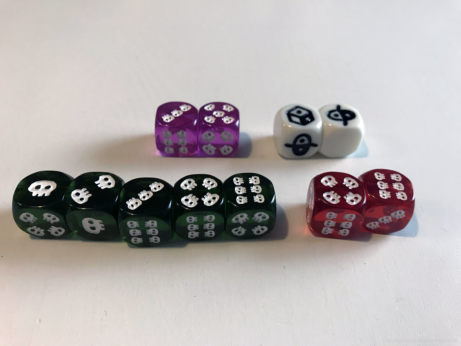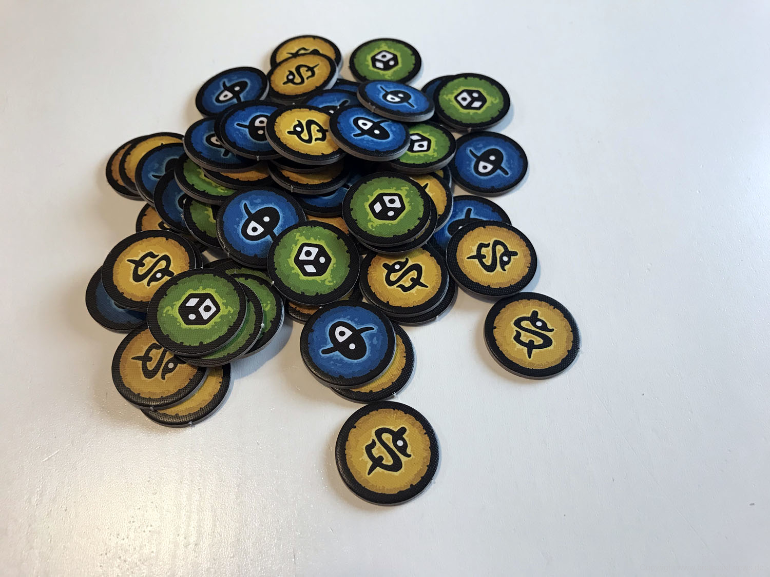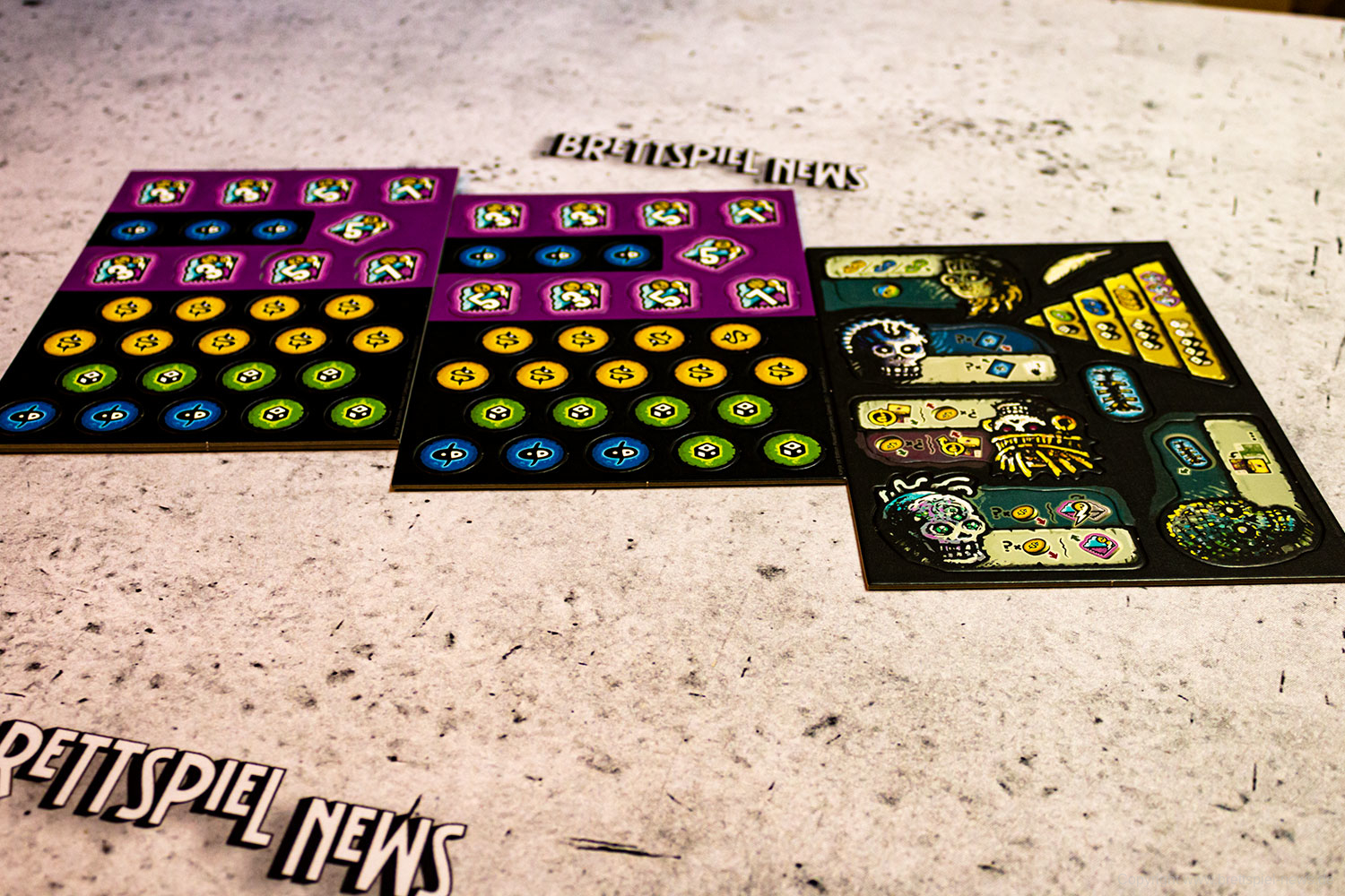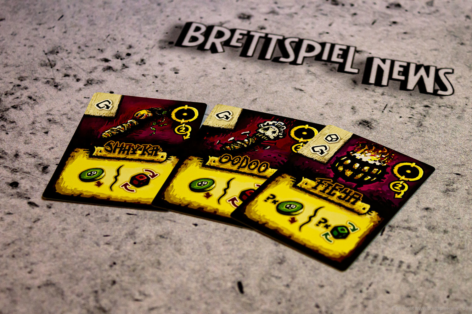 Ein Würfelpaar belohnt Magick-Marken, die die Zauberspruchkarten in der Hand aktivieren.