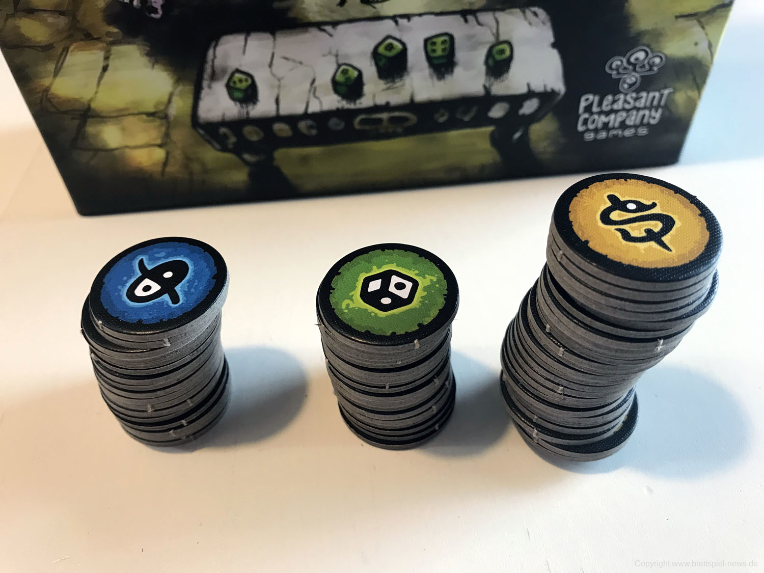 Einzelwürfel, die eine hohe Belohnungszahl zeigen Machtmarken, die eingesetzt werden, verstärken die Wirkung der Reliquienkarten.