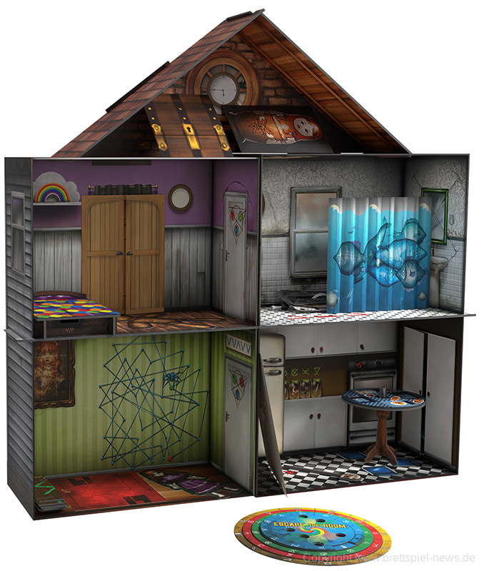 Unter Zeitdruck erforschen die Spieler fünf Zimmer voller Hinweise und Rätsel. Die Lösungen findet nur, wer sich die Räumlichkeit des Spiels zu Nutze macht und den Schein der mitgelieferten Taschenlampe auch in die hintersten Ecken des detailreichen Puppenhauses richtet. Innerhalb eines Zimmers ist die Reihenfolge der Rätsel nicht vorgegeben. So können die Spieler wie im richtigen Escape-Room an mehreren Aufgaben gleichzeitig tüfteln. Doch nur, wenn sie alle Rätsel innerhalb von zwei Stunden knacken, werden sie entkommen – ein höchst spannendes, kooperatives Spiel für Jugendliche und Erwachsene zugleich!