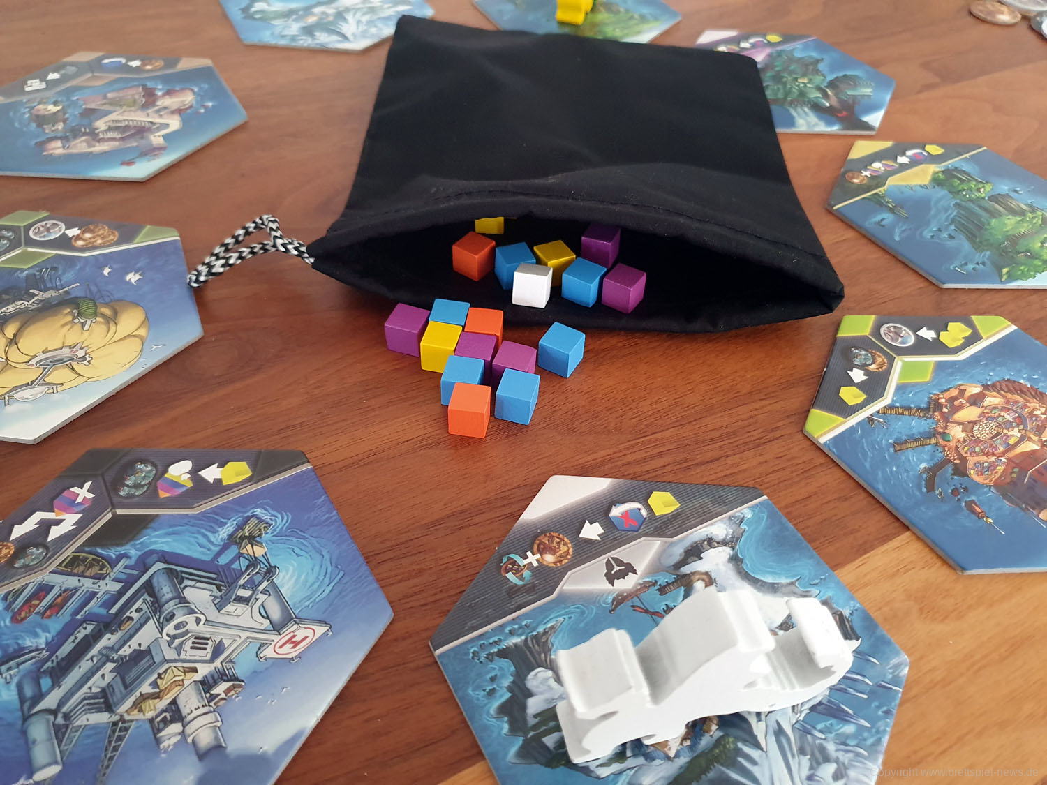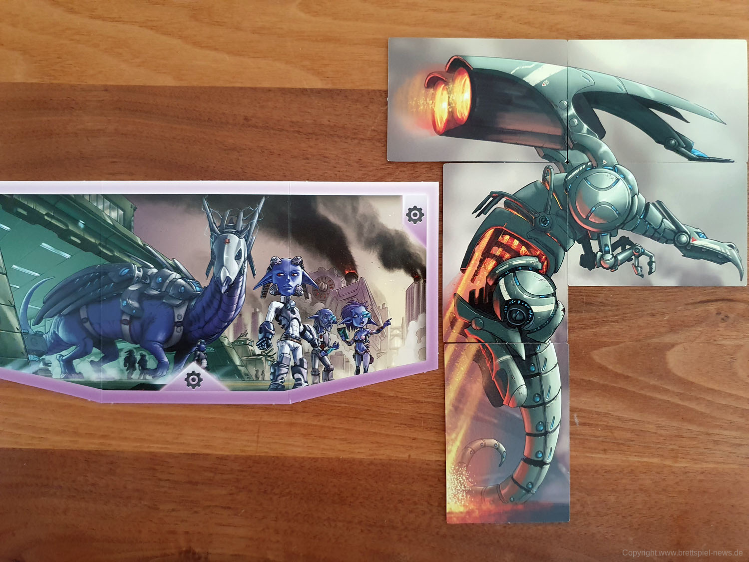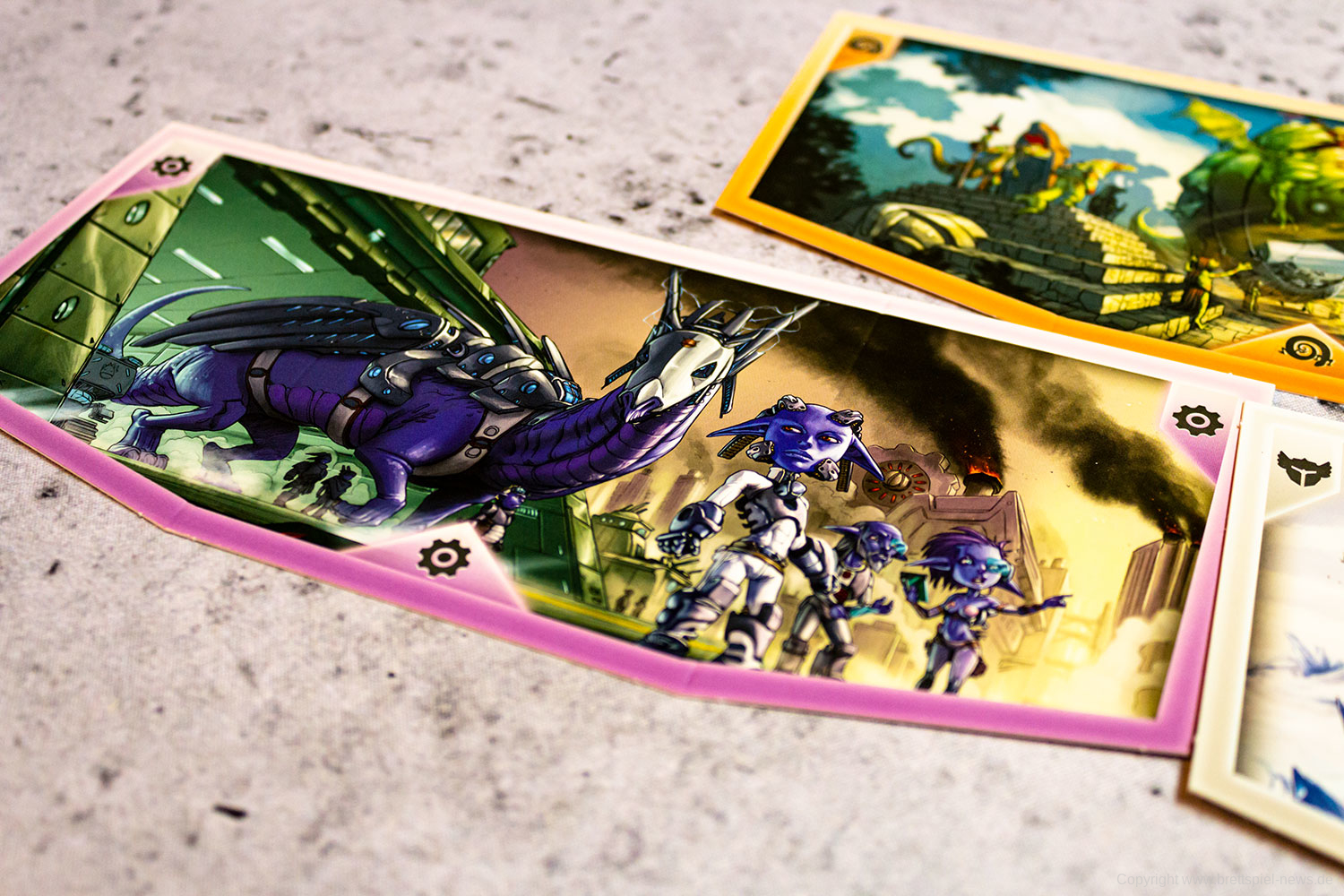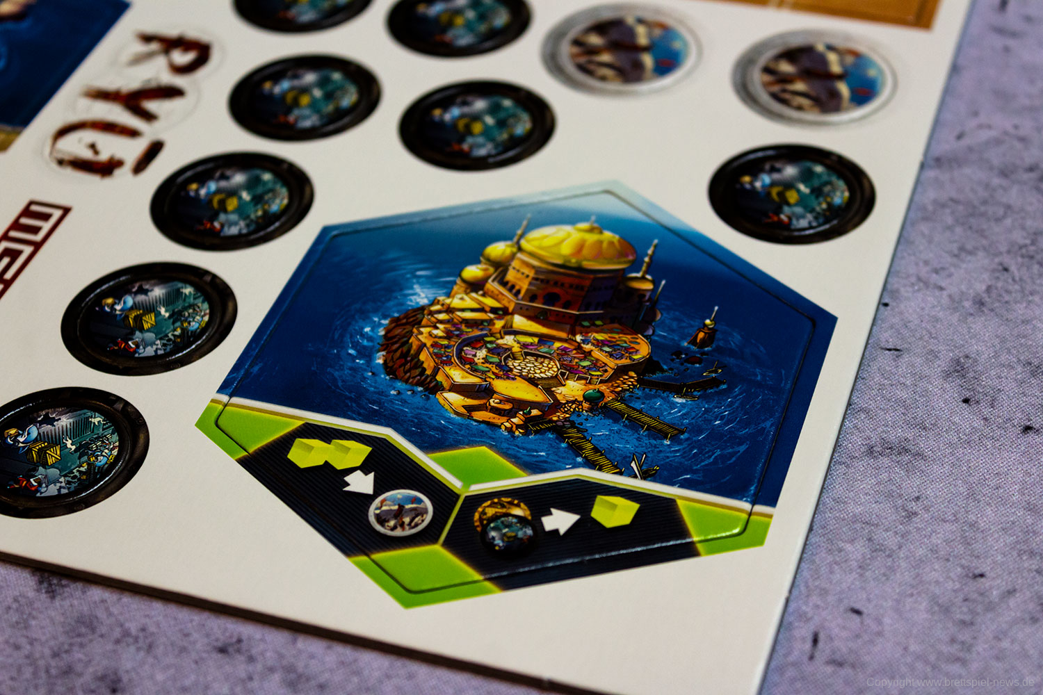 In RYŪ, einem Spiel mit Verhandlungen, Bluffen und Würfelentwurf, repräsentiert jeder Spieler einen der anderen fünf Planeten dieses Sternensystems, wobei jeder Planet eine andere Art von Humanoiden - wie Haie, Amazonen und Meka-Goblins - und seine eigenen einzigartigen Einflüsse hat. Diese Planeten stehen für die Erkundung offen, und mit der entsprechenden Finanzierung können die Spieler die Ressourcen ausgraben, die sie für den Bau ihres eigenen Mutterschiffs RYŪ benötigen, das aus "Seltenem Metall", "Memory Stone" und "Bernsteinmagie" besteht. Die Spieler werden miteinander kooperieren müssen, um die notwendigen Ressourcen zu beschaffen, aber sie müssen auch für sich selbst arbeiten, um einen Vorteil gegenüber anderen Spielern zu erhalten. Einmal zusammengesetzt, erwacht die RYŪ als lebendiges Raumschiff zum Leben, und ihr Besitzer gewinnt das Spiel.