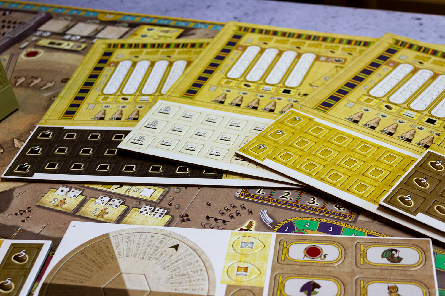 IDie Board & Dice Neuheit von Daniele Tascini ist nun für die Spieleschmiede-Unterstützer veröffentlicht worden. Es wurde von GiantRoc als deutsche Version realisiert und das Spielmaterial wieß schon auf dem ersten Blick zu überzeugen! Das Spiel wird die Spieler in das alte Ägypten entführen. Es kann mit 1-4 Spieler gespielt werden und soll eine Spielzeit zwischen 60 und 120 Minuten bieten.