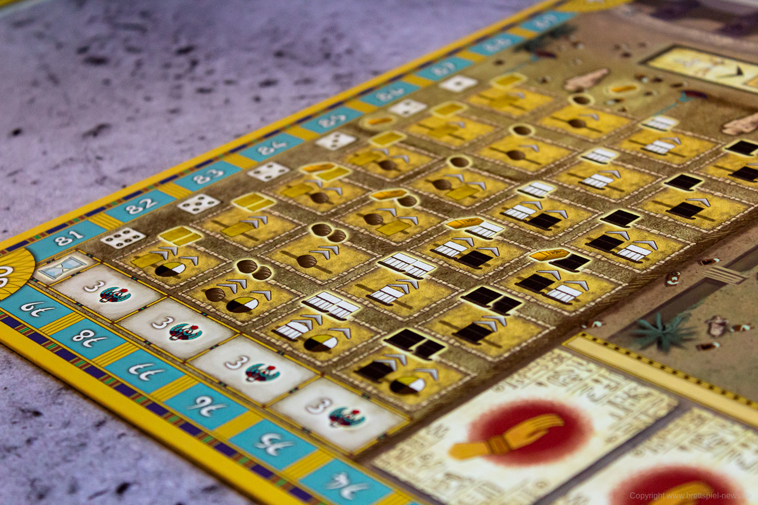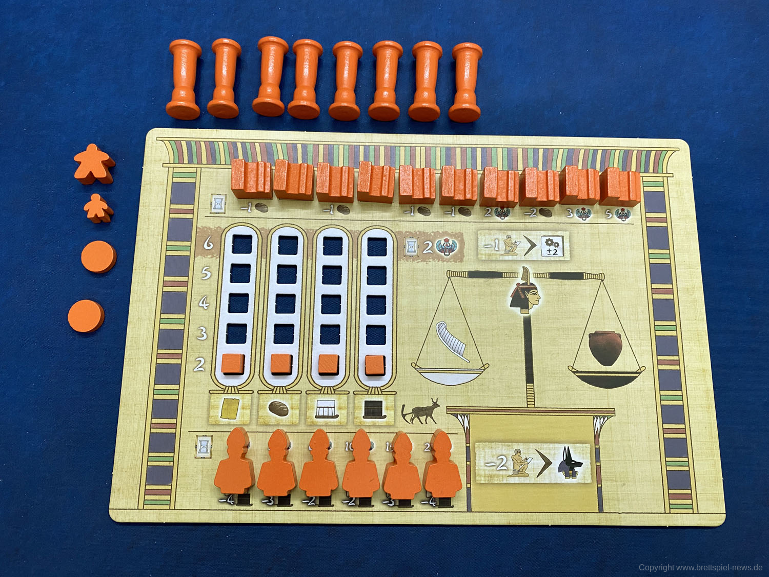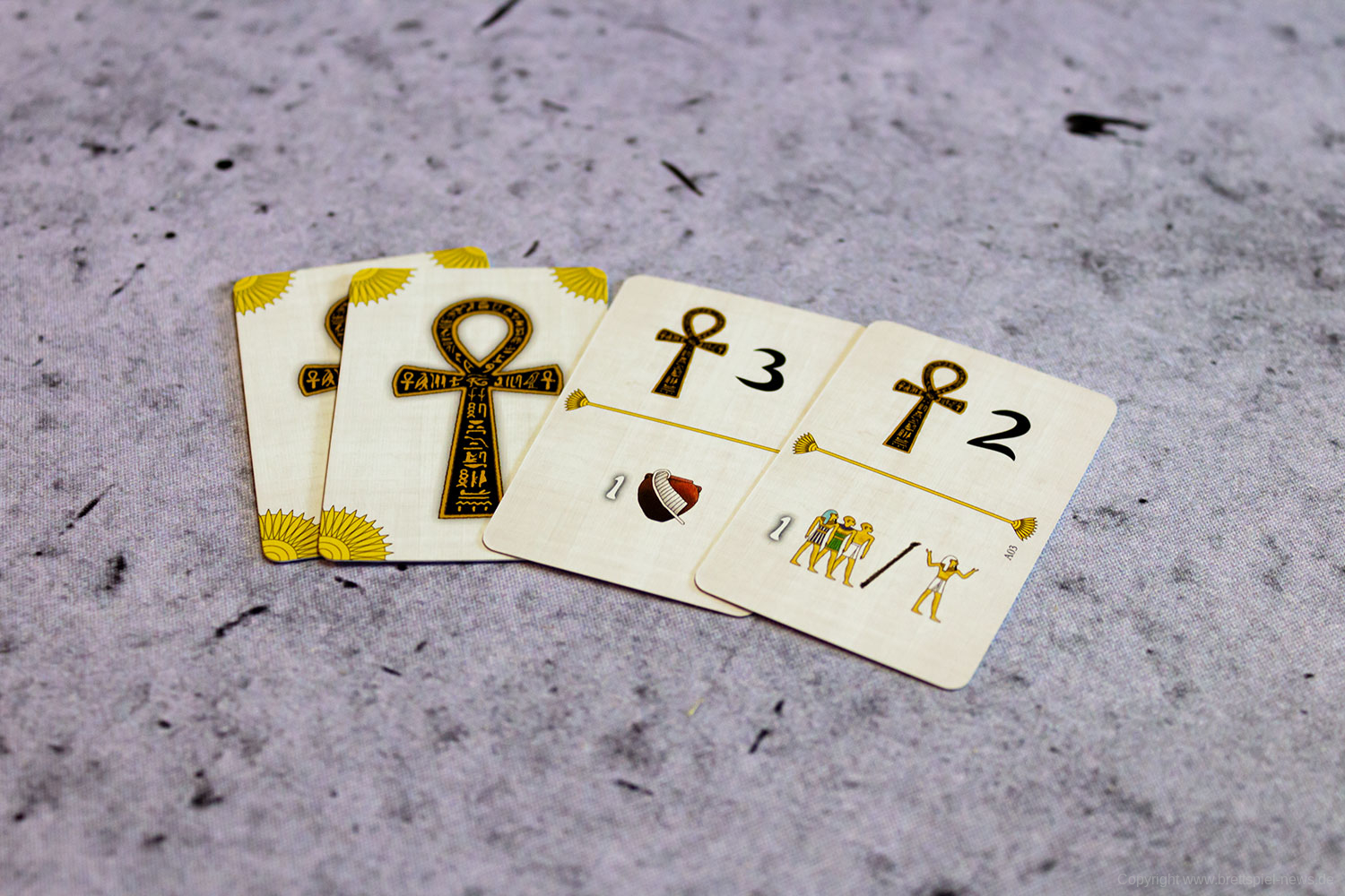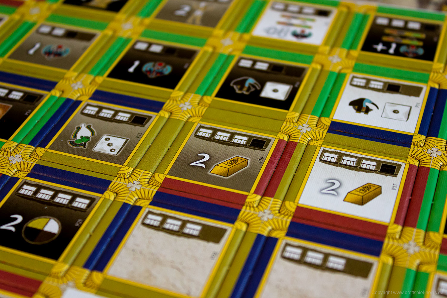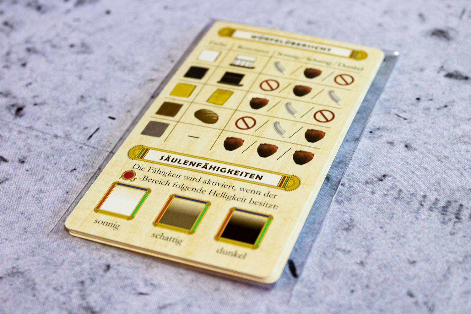 Dabei bestimmt der stetig wandernde Schattenwurf des Sonnenobelisken darüber, ob die Würfel rein, verdorben oder gar verboten sind und wie es um eure Seelenwaage steht, wenn Maat ihr Urteil über euch fällt.