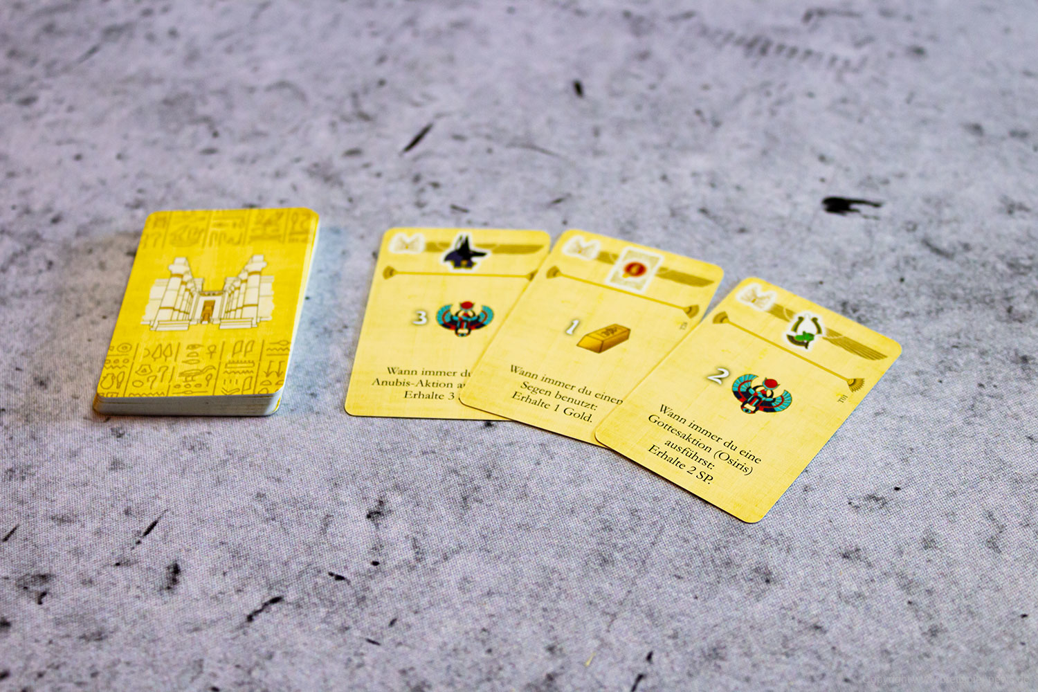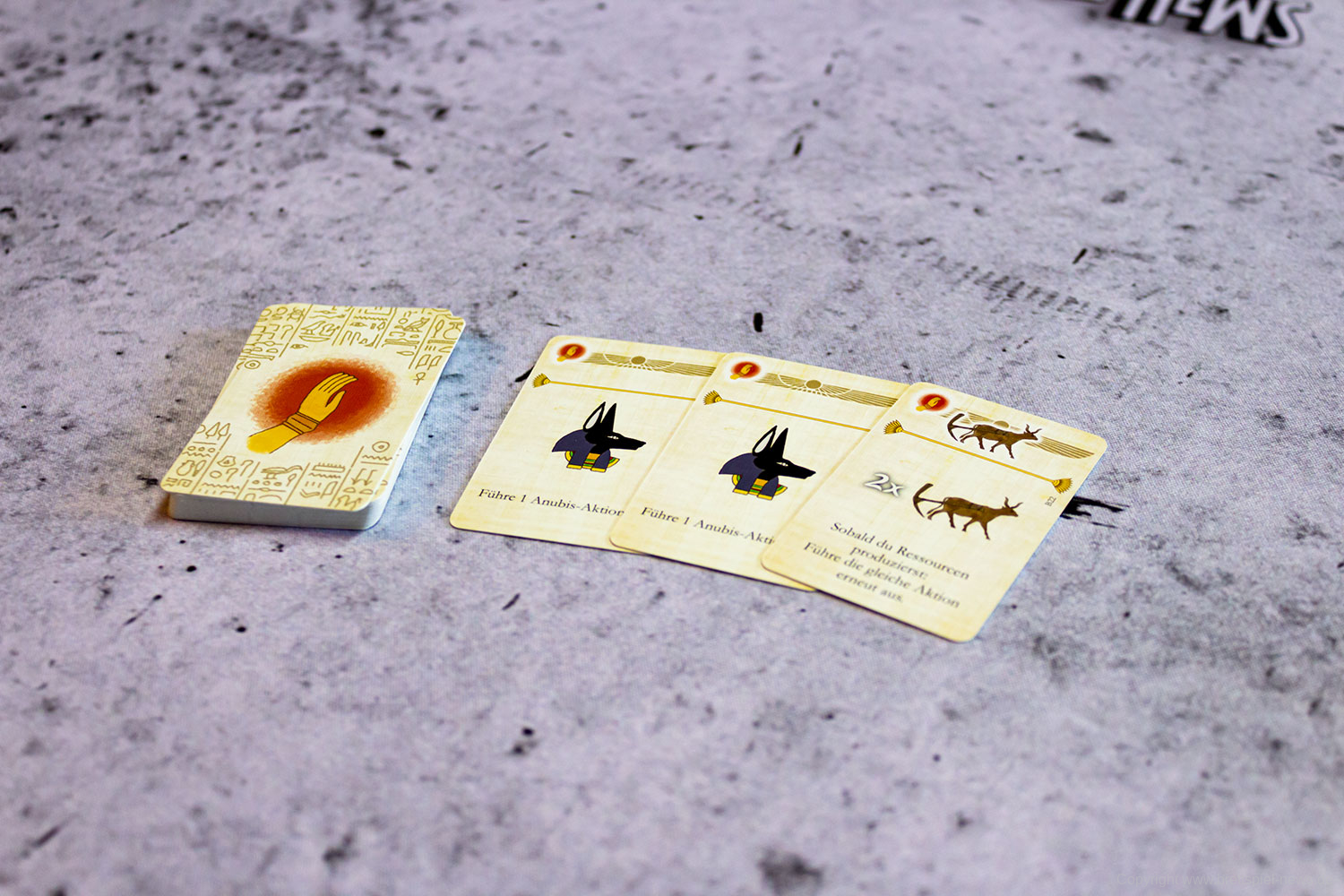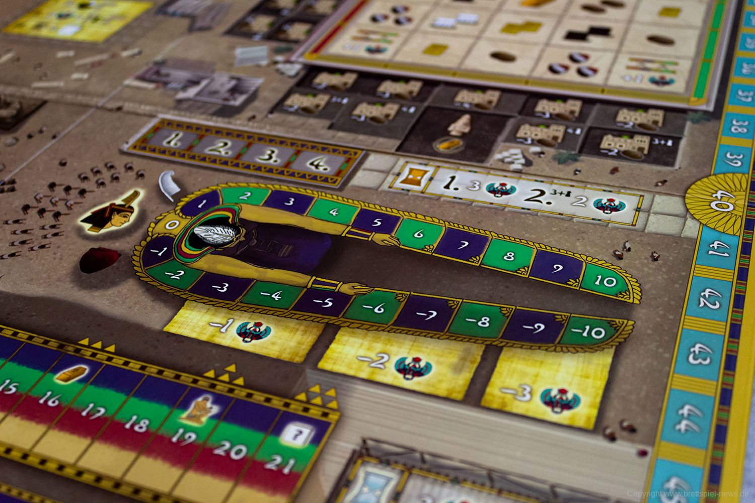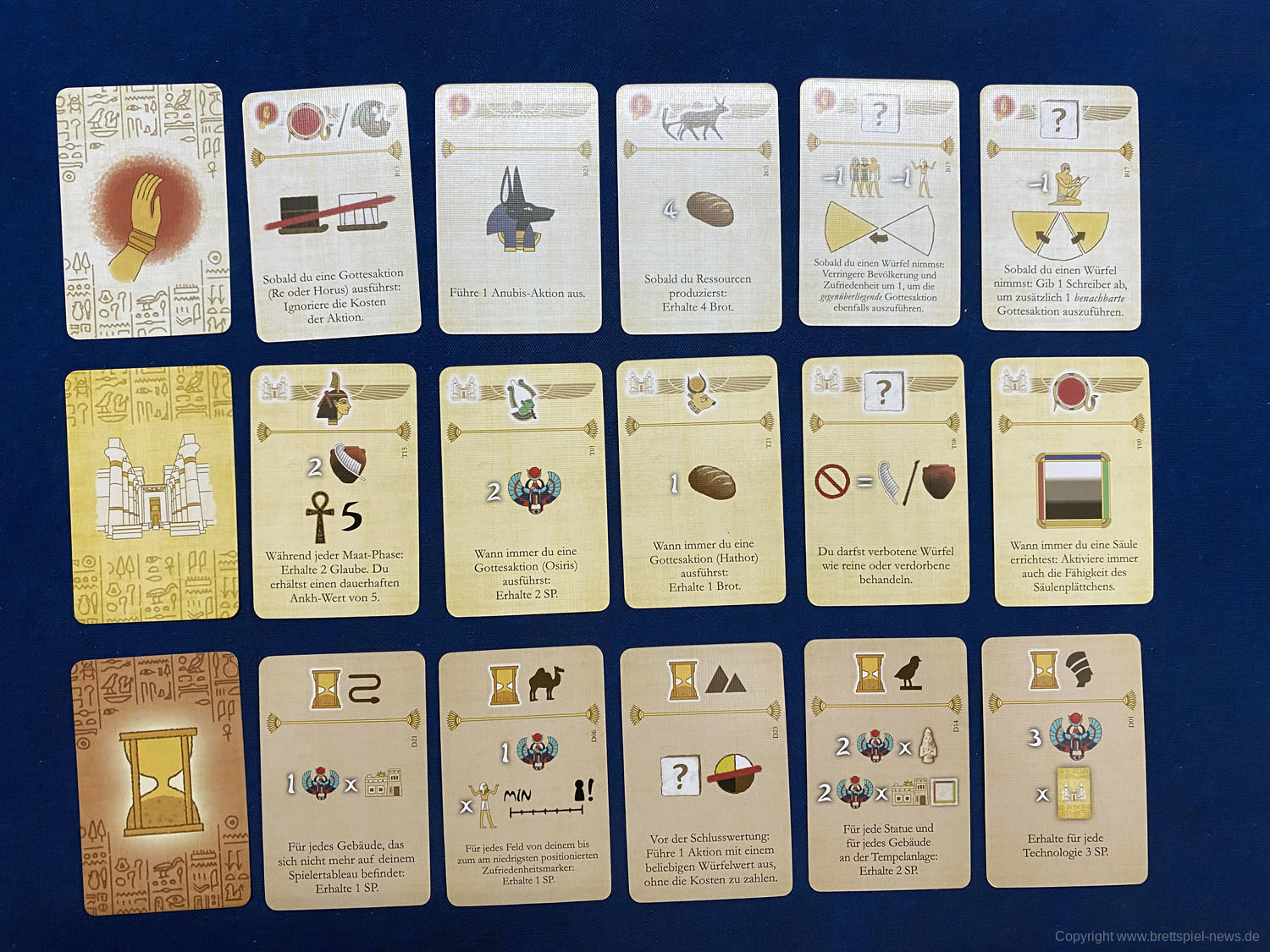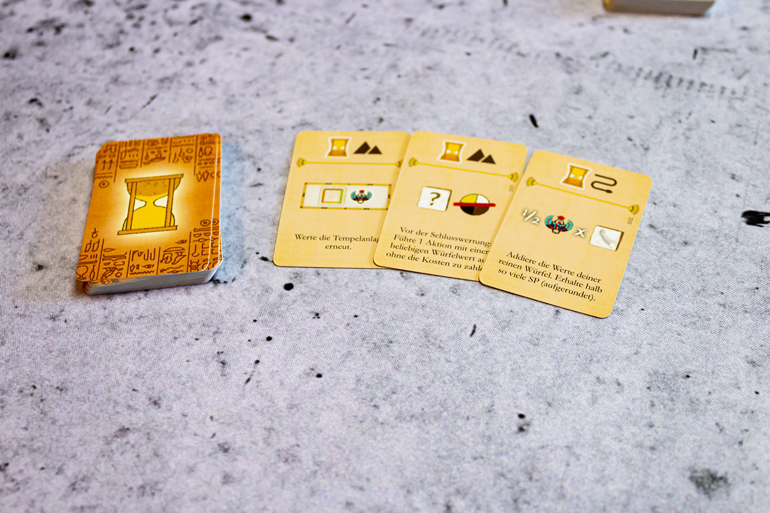 Dabei bestimmt der stetig wandernde Schattenwurf des Sonnenobelisken darüber, ob die Würfel rein, verdorben oder gar verboten sind und wie es um eure Seelenwaage steht, wenn Maat ihr Urteil über euch fällt.