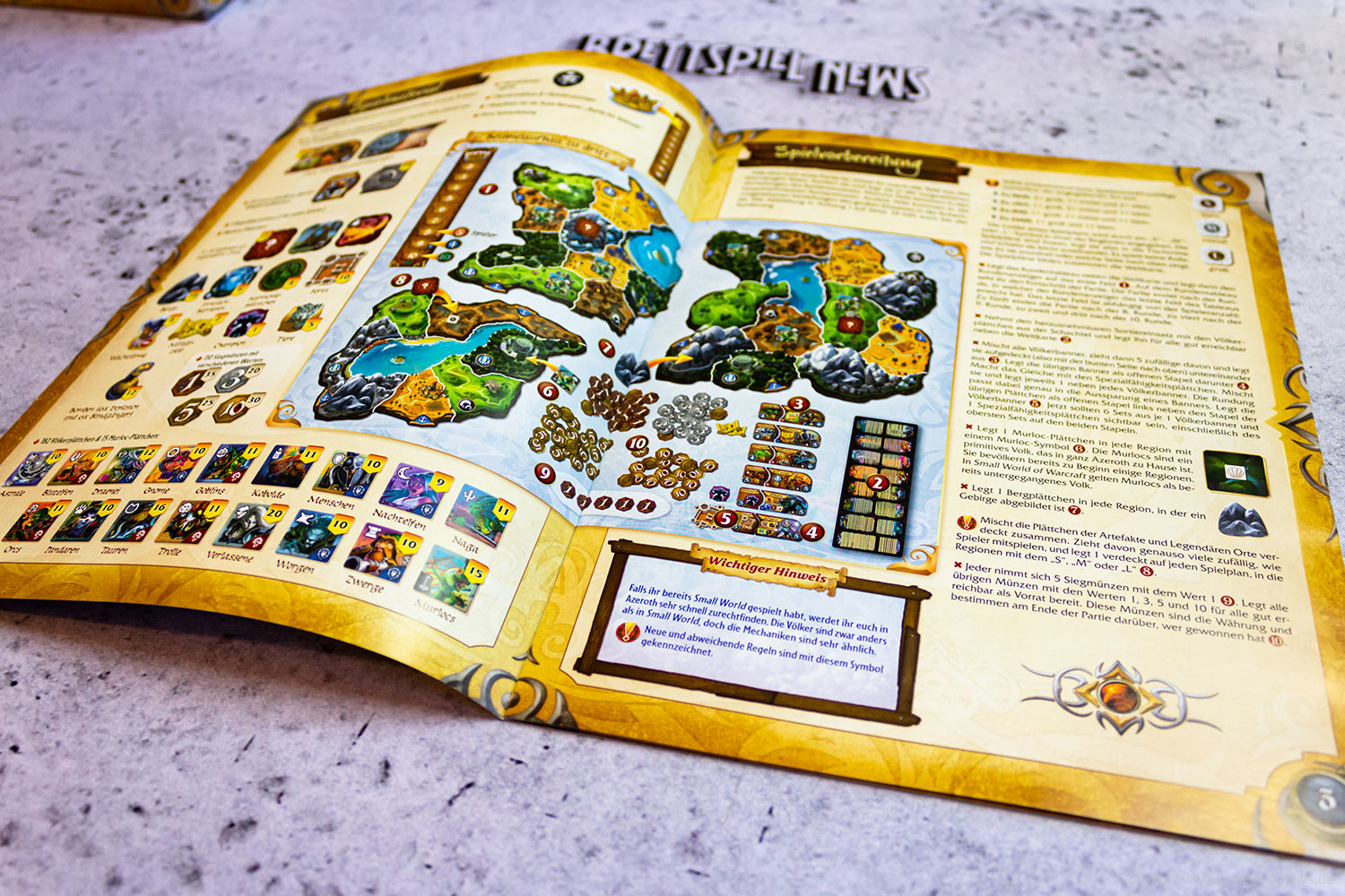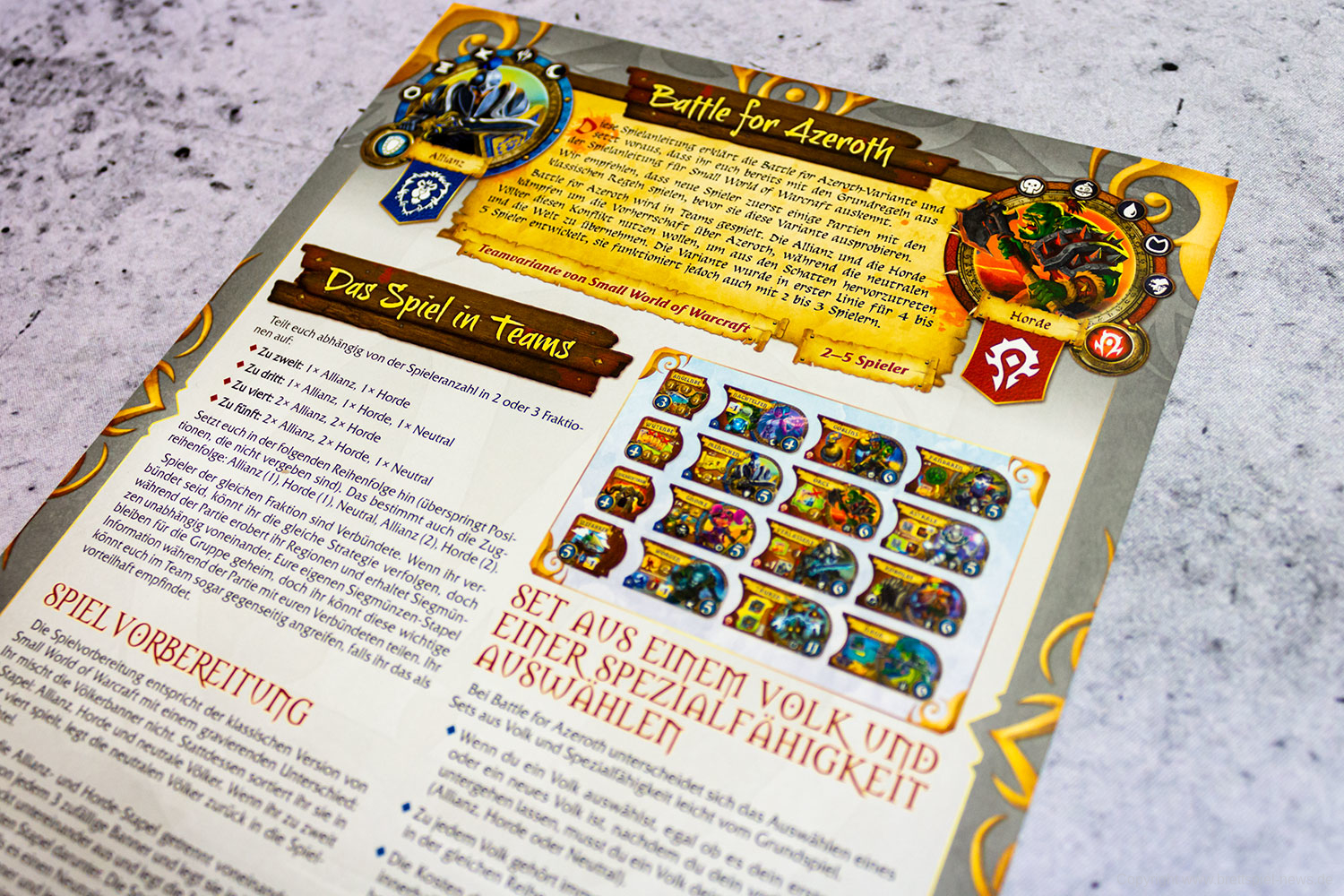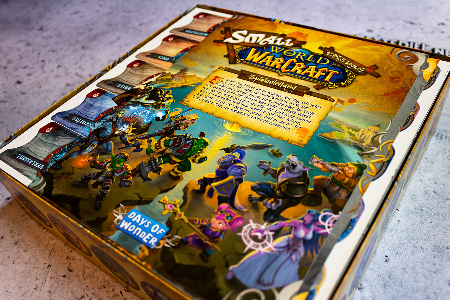 SMALL WORLD OF WARCRAFT wird im September erscheinen. Wir haben bereits ein Exemplar erhalten und umgehend Bilder vom umfangreichen Spielmaterial gemacht und schildern kurz den ersten Eindruck vom Spielmaterial. Das Spiel erscheint bei DAYS OF WONDER und ist im Vertrieb bei ASMODEE DEUTSCHLAND.