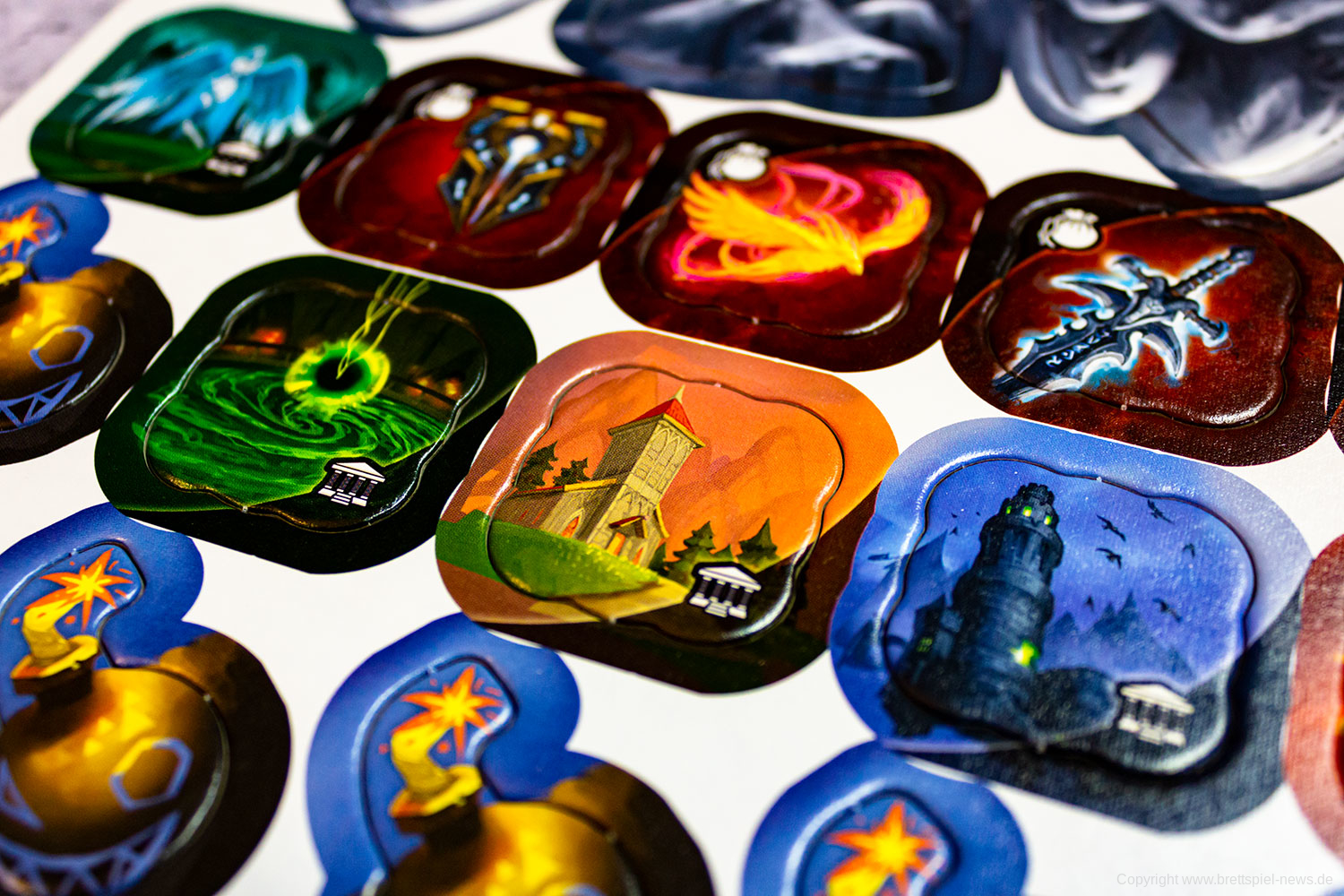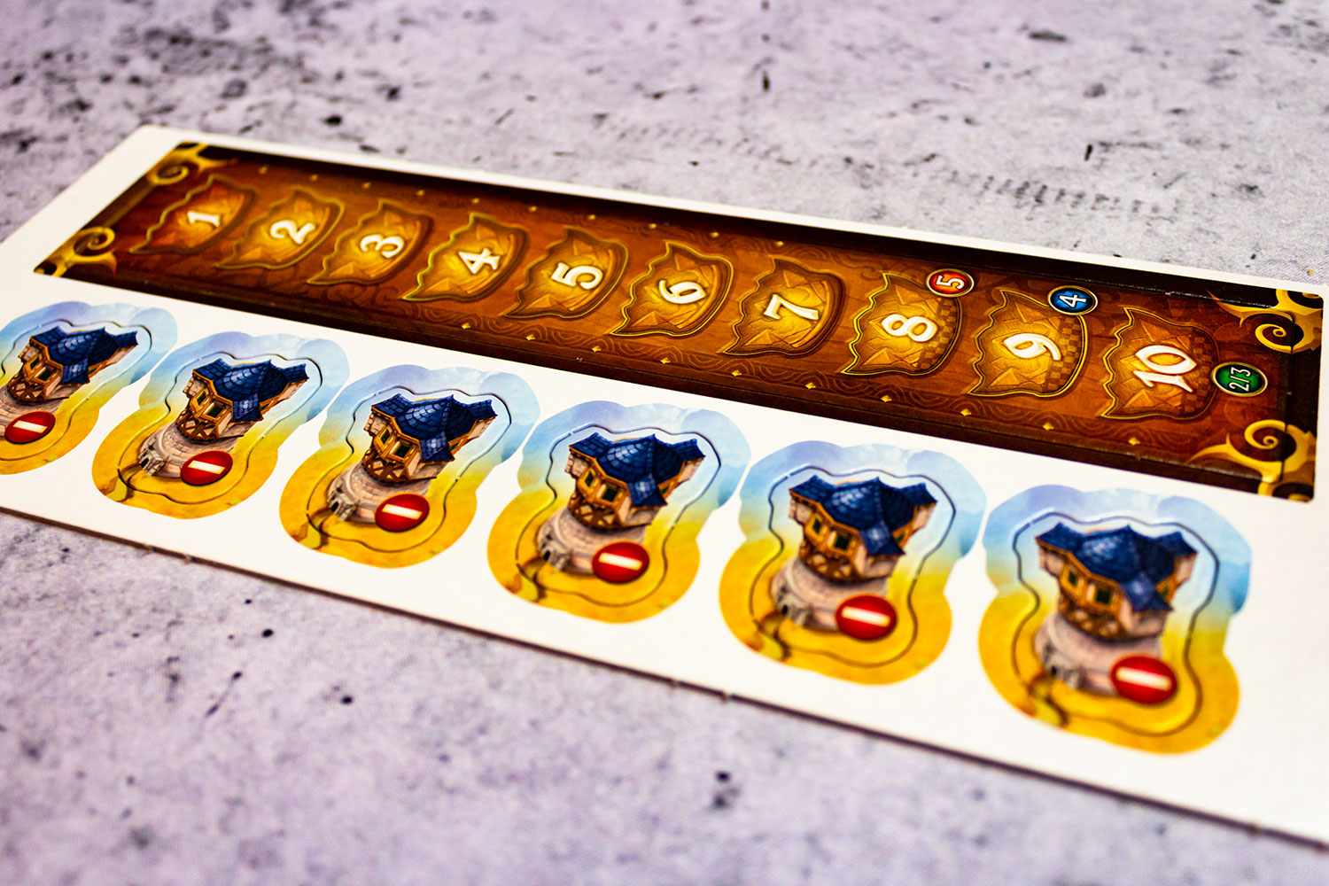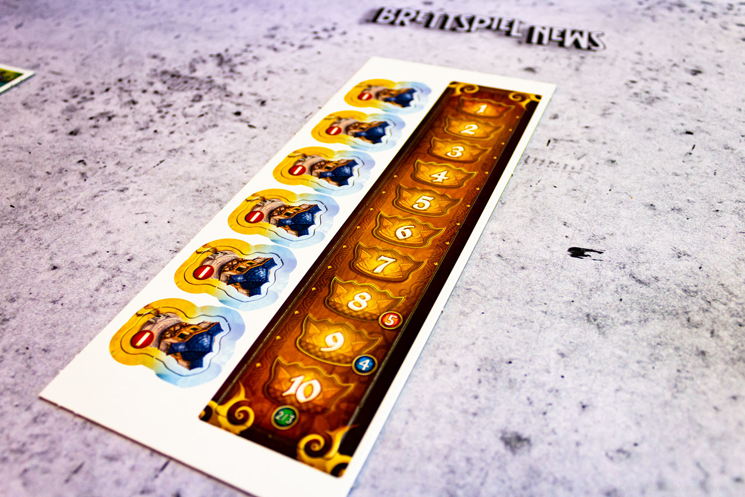 Das Spielmaterial ist aus stabiler ordentlich bedruckter Pappe gefertigt. Die Grafik ist detailliert und lädt gleich zum Spielen ein. Neben der Anleitung sind fünf Referenzbögen enthalten die als Spielübersicht dienen. Zusätzlich ist noch eine Anleitung für einen komplexeren Modus enthalten.