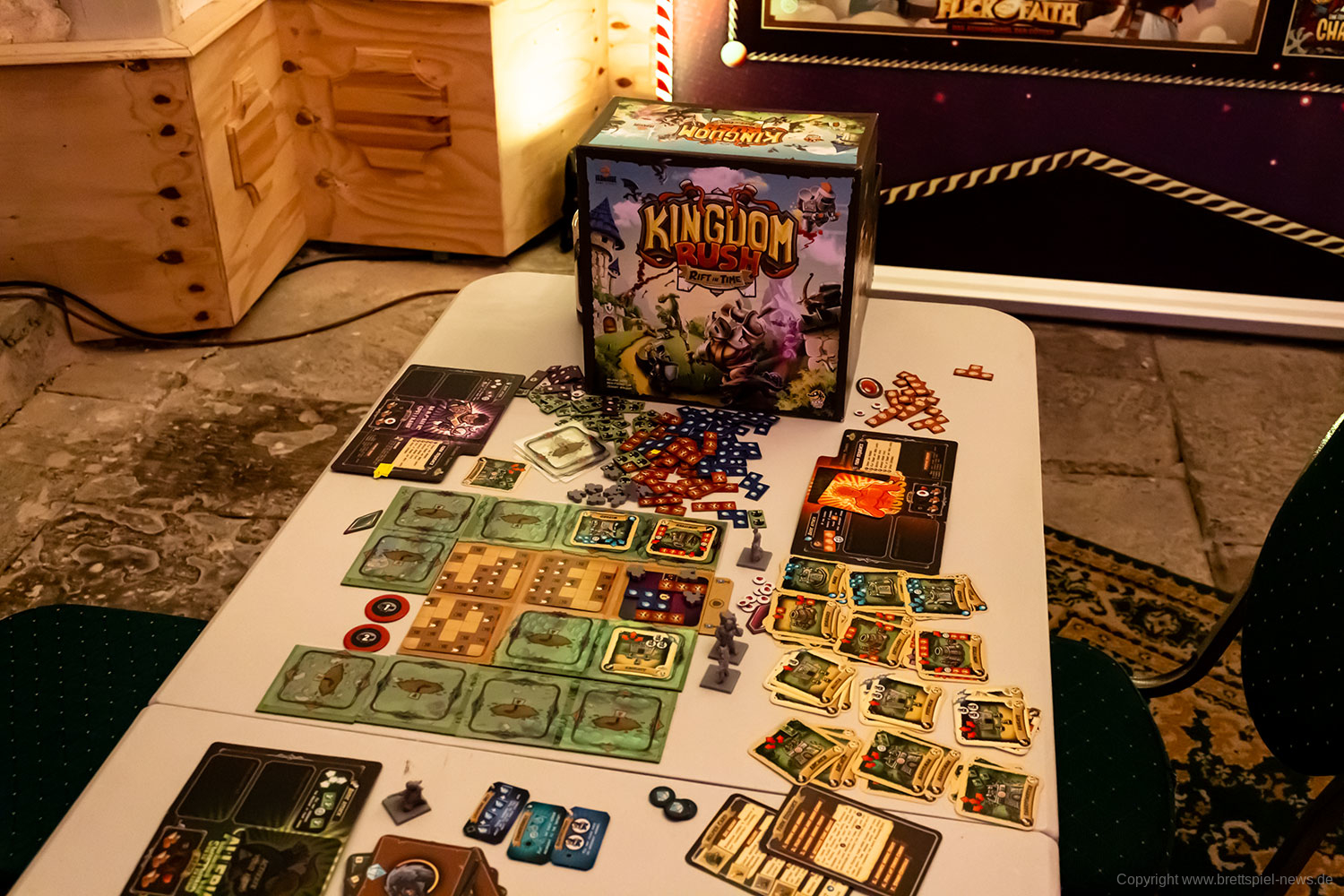 Das neue Spiel KINGDOM RUSH von LUCKY DUCK GAMES wurde in der SPIELESCHMIEDE finanziert. Wir hatten auf dem B-REX Tag die möglichkeit das Spiel anzuspielen und haben erste Bilder vom Material gemacht. Ein Angespielt-Artikel wird noch folgen. Das Spiel ist für 1-4 Spieler stammt von dem Trio HELANA HOPE, SEN-FOONG LIM und JESSEY WRIGHT. Die Spielzeit soll bei 45-90 Minuten liegen. Die deutsche Realisierung wird von MIRAKULUS realisiert.