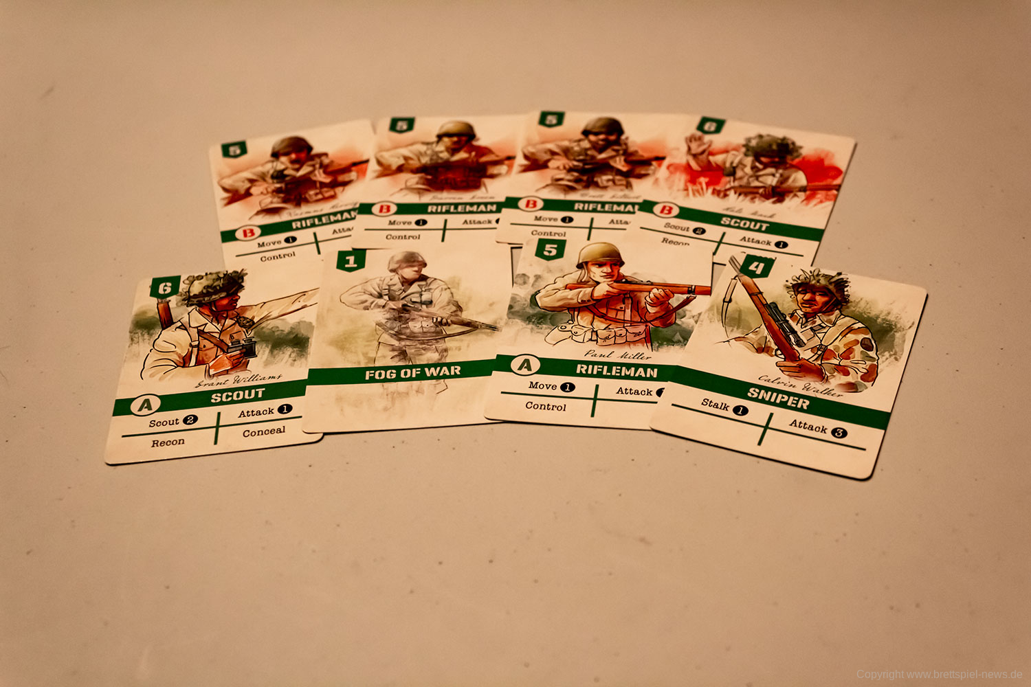 Undaunted: Normandy ist ein Deckbau-Spiel, bei dem Sie und Ihr Gegner das Kommando über amerikanische oder deutsche Streitkräfte übernehmen und eine Reihe von Missionen durchkämpfen, die für den Ausgang des Zweiten Weltkriegs entscheidend sind. Nutzen Sie Ihre Karten, um die Initiative zu ergreifen, Ihre Streitkräfte zu stärken oder Ihre Truppen auf dem Schlachtfeld zu kontrollieren. Eine starke Führung kann das Blatt der Schlacht zu Ihren Gunsten wenden, aber rücksichtslose Entscheidungen können sich als katastrophal erweisen, da jedes Opfer, das Sie nehmen, eine Karte von Ihrem Stapel entfernt. Übernehmen Sie das Kommando inmitten des Chaos der Schlacht, halten Sie im Angesicht der Gegner stand und bleiben Sie unerschrocken.