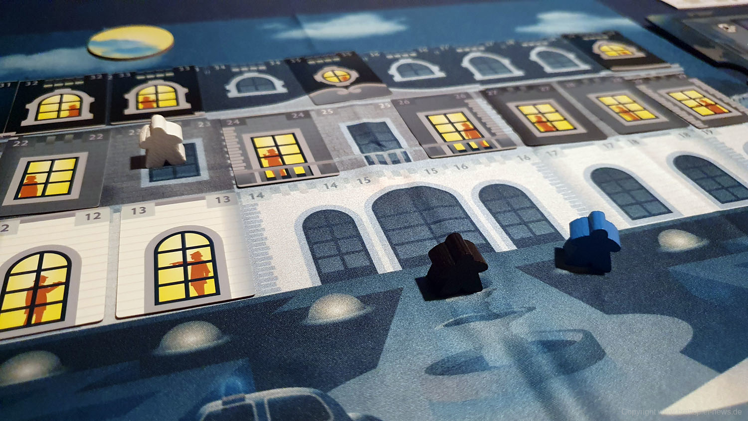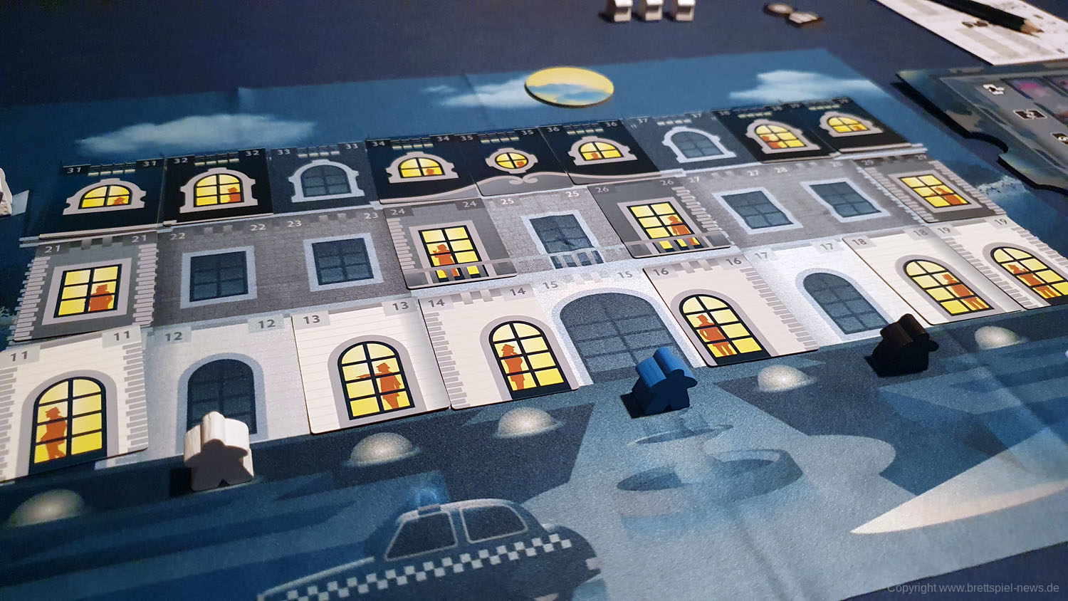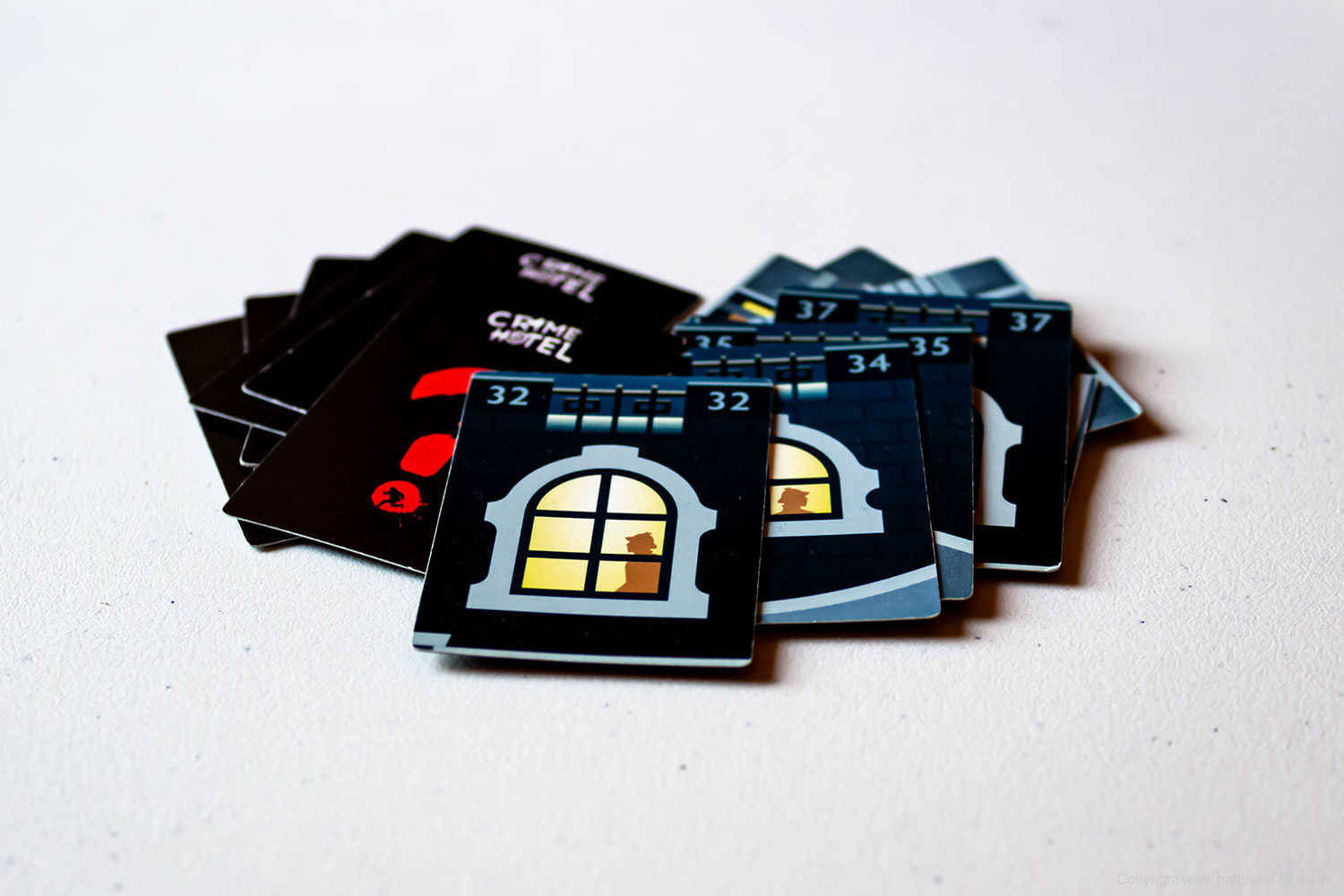 Die Neuheit CRIME HOTEL ist nun erschienen und wir hatten auf dem B-REX Tag die Möglichkeit das Spielmaterial schon einmal abzulichten. In diesem flotten Trickspiel für drei bis vier Spieler, mit einer Spieldauer von 30 bis 45 Minuten, schlüpft man in die Rolle eines Inspektoren, der versucht einen Mörder in einem der Hotelzimmer zu finden. Dieser wartet auf seine Chance zu fliehen, was es gilt zu verhindern. Der einzige Beweis in die Anzahl leerer Zimmer.
