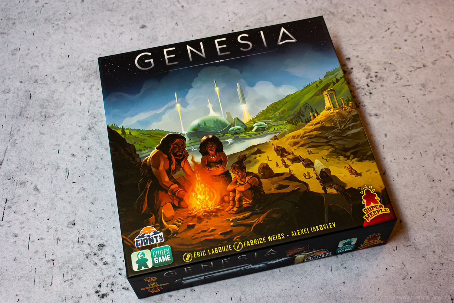 Genesia ist ein schnelles Zivilisationsspiel (nur 20 Minuten pro Spieler) von Eric Labouze mit Illustrationen von Fabrice Weiss und Alexei Iakovlev für 1 bis 5 Kennerspieler ab 12 Jahren. Über 3 Zeitalter hinweg wählt ihr in einem Draft Karten, mit denen ihr eure Zivilisationen anwachsen lasst. Doch dies geschieht nicht nur auf diesen Karten: Stück für Stück breitet ihr euch auf dem Spielbrett aus und dabei kann es auch zu verheerenden Kämpfen kommen ...