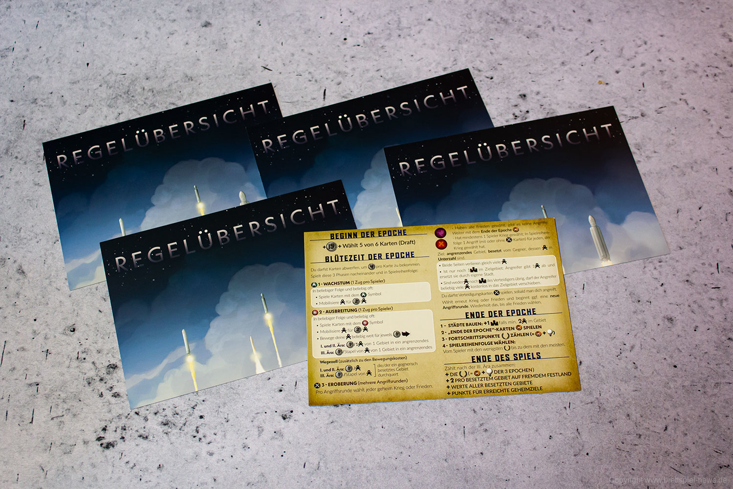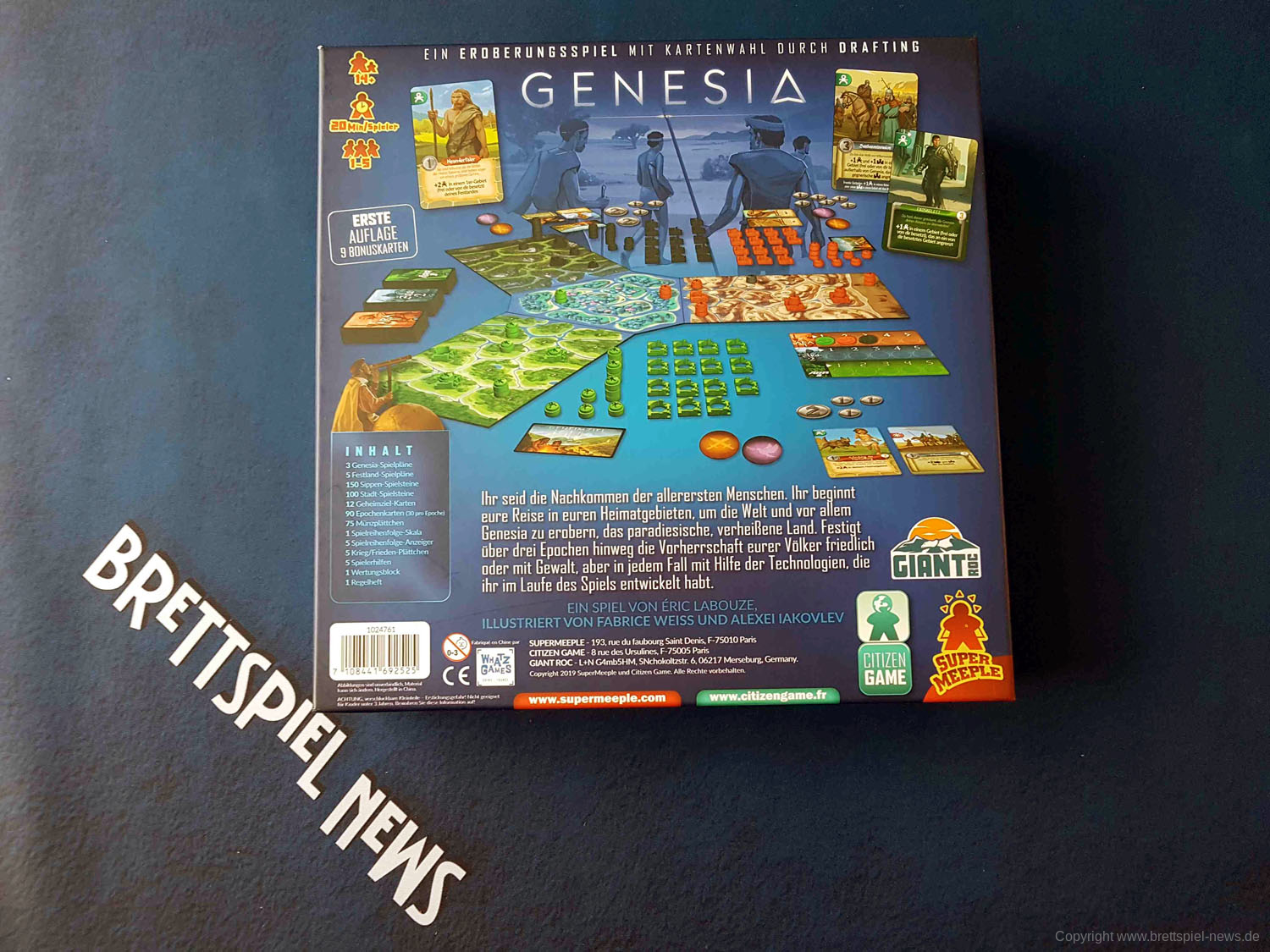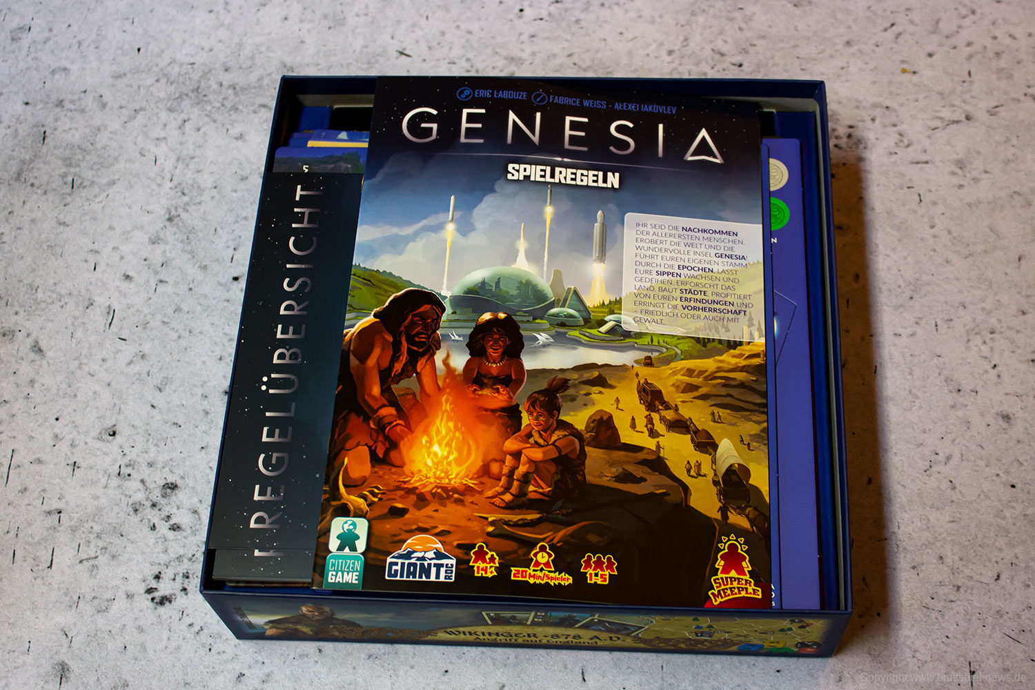 Das schnelle Zivilisationsspiel GENESIA ist mittlerweile verfügbar und wir haben Bilder vom Spielmaterial gemacht. Das Spiel ist für 1-5 Spieler und verspricht eine Spielzeit von 20 minuten pro Spieler. Das Spielmaterial als auch die Karten machen Lust auf die erste Partie im Spiel. Eine Rezension wird folgen!