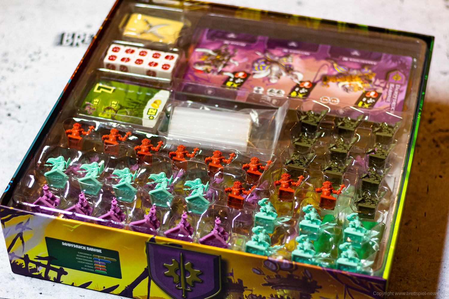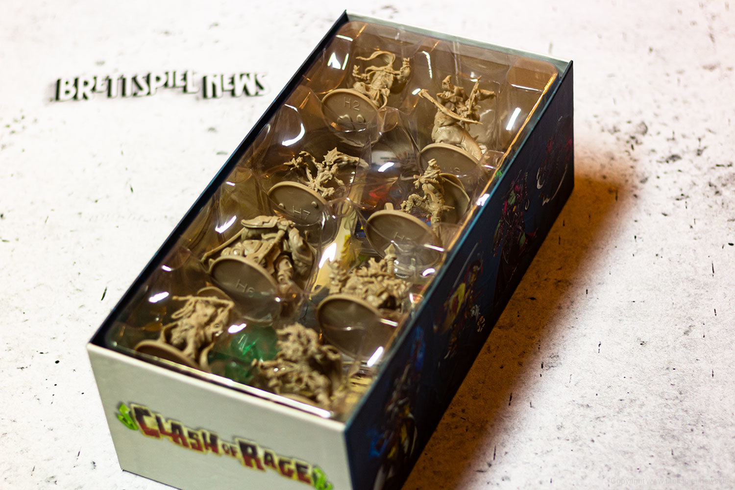 GRIMSPIRE hat CLASH OF RAGE mittlerweile veröffentlicht.Wir haben ein Exemplar und zwei Erweiterungen und zeigen nun Bilder vom Spielmaterial. Das Miniaturspiel richtet sich an 1-5 Spieler ab 14 Jahren. Eine Spielpartie soll rund 90 Minuten dauern. Wer auf der Suche nach Miniaturen-Action mit ungewöhnlicheren Miniaturen die gut gerfertigt wurden ist, sollte einen Blick auf das Spiel werfen.