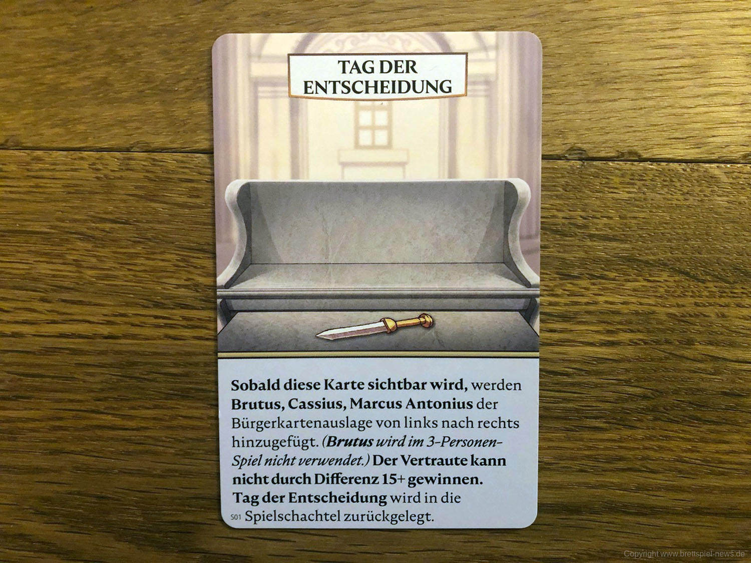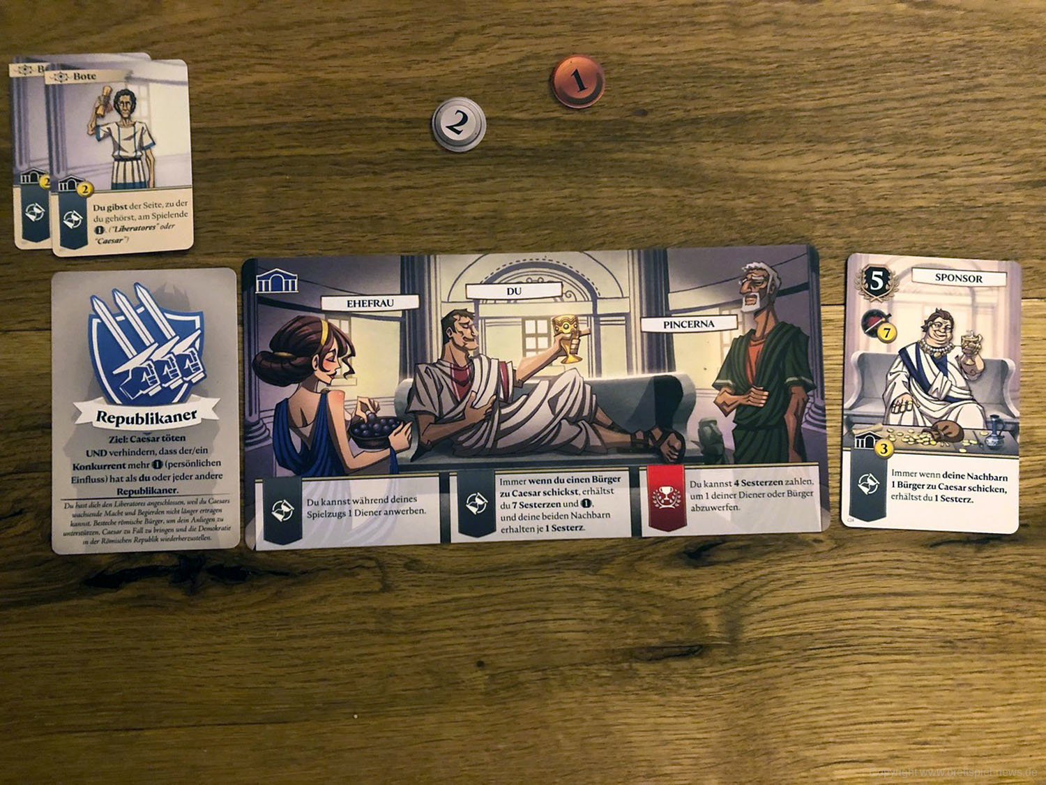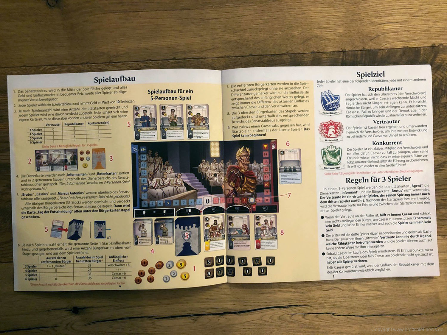 Drei bis sechs Senatoren ab 15 Jahren intrigieren in diesem kartenbasierten Spiel als Liberatores sieben Runden lang gegen Caesar, um ihn zu stürzen. Das Römische Reich soll wieder zu einer Demokratie werden. Dazu muss der Diktator Caesar beseitigt werden. Ihr erreicht euer Ziel, indem ihr im Senat möglichst viel Einfluss gewinnt. Das schafft ihr durch Bestechung, die Unterstützung von Bürgern und Dienern (natürlich ist die nicht umsonst) oder durch Geld und seinen strategischen Einsatz. Doch auch in den eigenen Reihen gibt es Feinde: Einer von euch ist ein Agent Caesars, der ihn heimlich unterstützt und die Verschwörung auffliegen lassen möchte. Und einige Konkurrenten unter euch würden sich, statt die Republik wiederherzustellen, nur zu gern selbst zum Diktator aufschwingen ...
