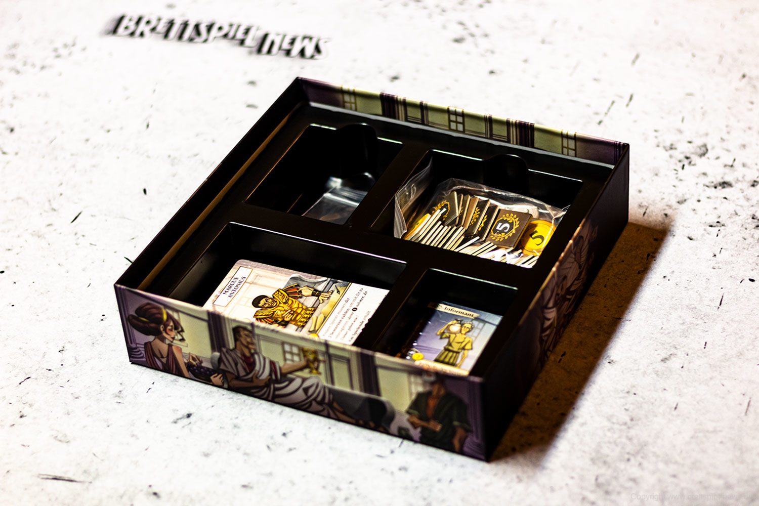 Das Deduktions- und Verhandlungsspiel LIBERATORES ist mittlerweile in Deutschland erschienen. Es ist für 3-6 Spieler ausgerichtet und soll kooperativ ablaufen und 40-60 Minuten Spielzeit bieten. Nun haben wir Bilder vom Spielmaterial gemacht und zeigen diese vor unserem Test.