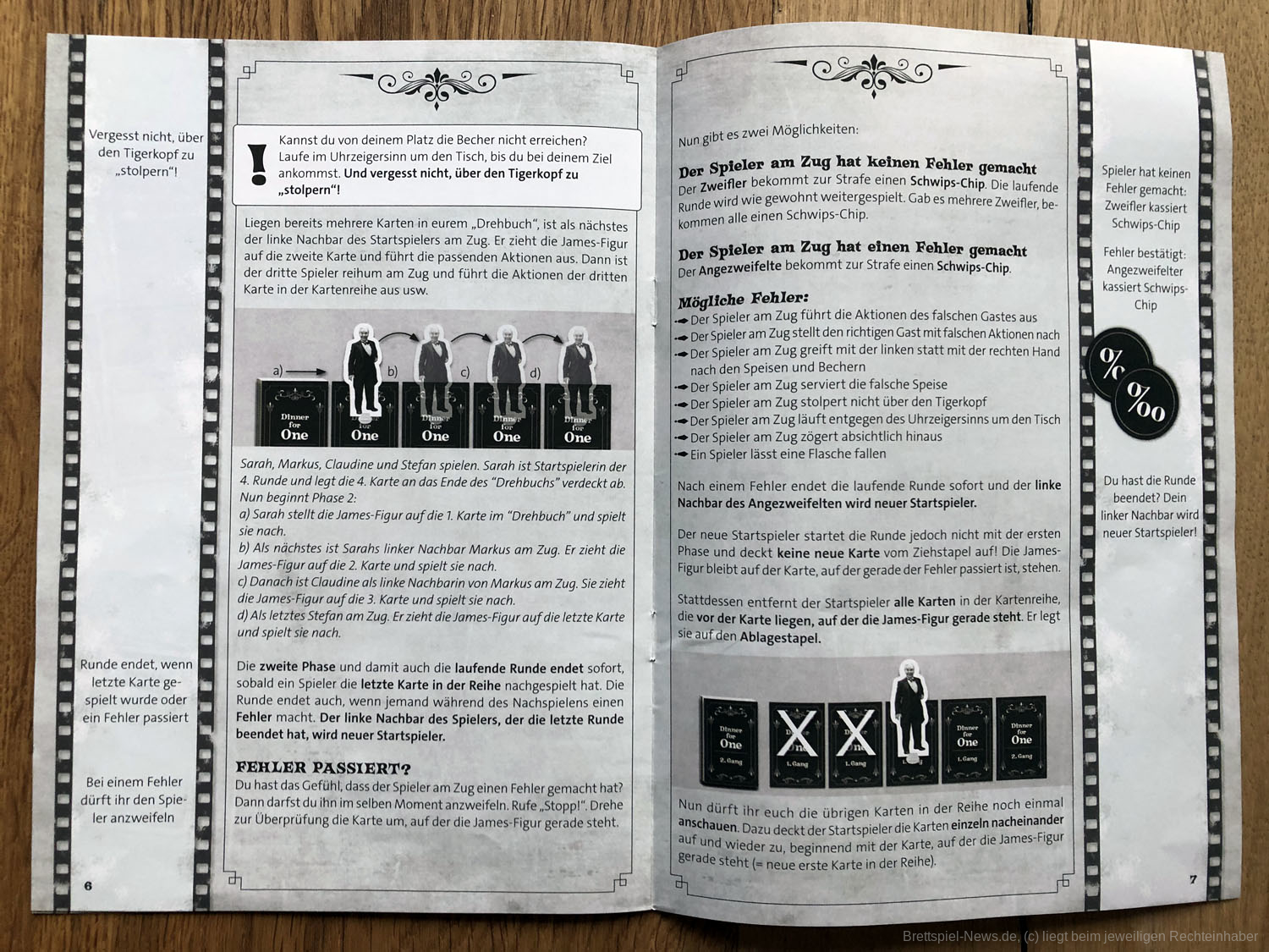 Hat ein Mitspieler das Gefühl, dass „James“ einen Fehler gemacht hat, so wird die entsprechende Karte überprüft. Hat „James“ tatsächlich danebengelegen, bekommt er zur Strafe einen Schwips-Chip. Lag er richtig, bekommt diesen der Zweifler.