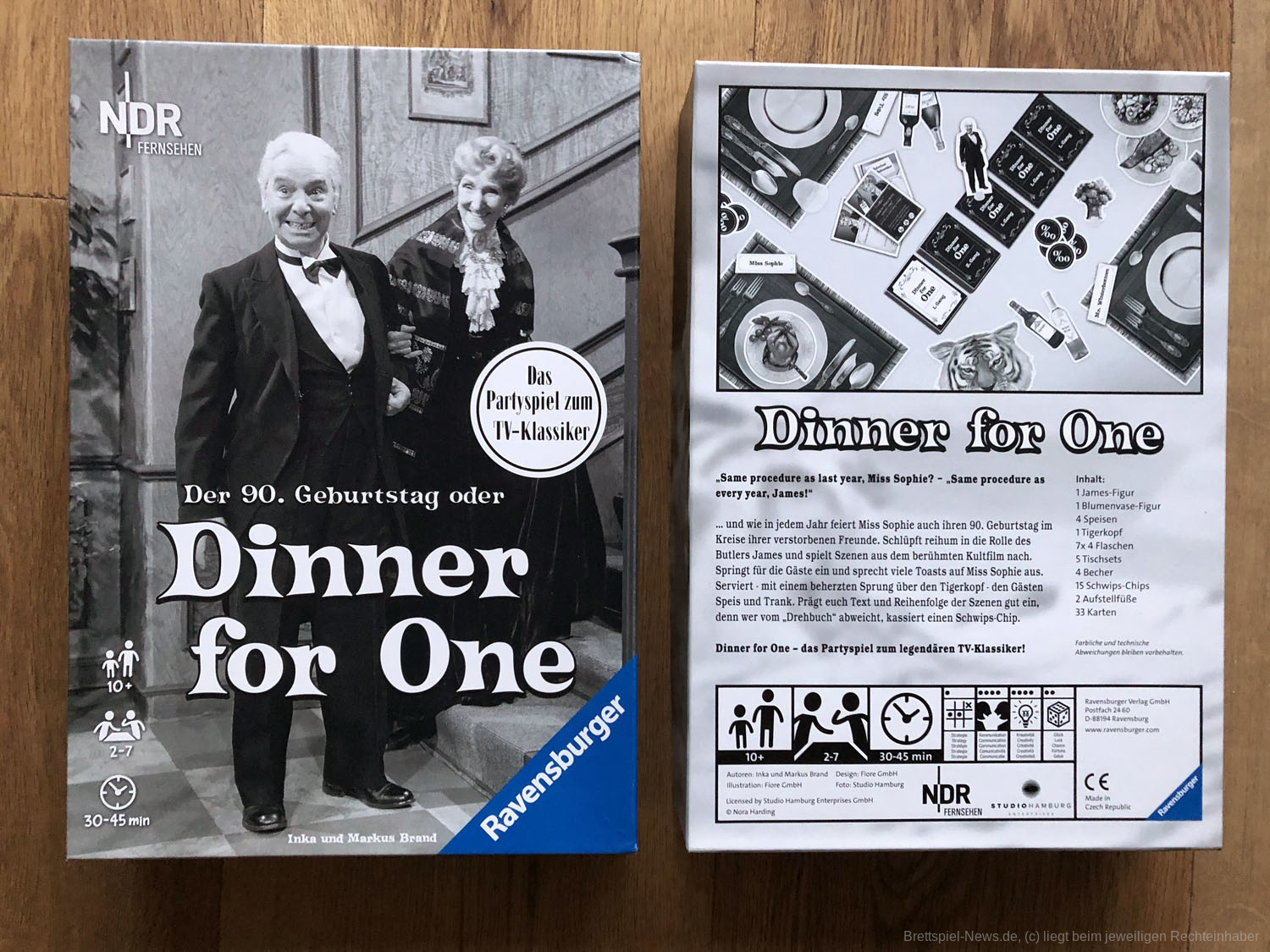 Mit DINNER FOR ONE hat Ravensburger ein Partyspiel angekündigt, dass 2-7 Spieler den TV-Klassiker nacherleben lässt. Es wird im Herbst 2020 erscheinen und der UVP liegt bei 19,99 € - DINNER FOR ONE lässt sich bereits mit Rabatt vorbestellen.