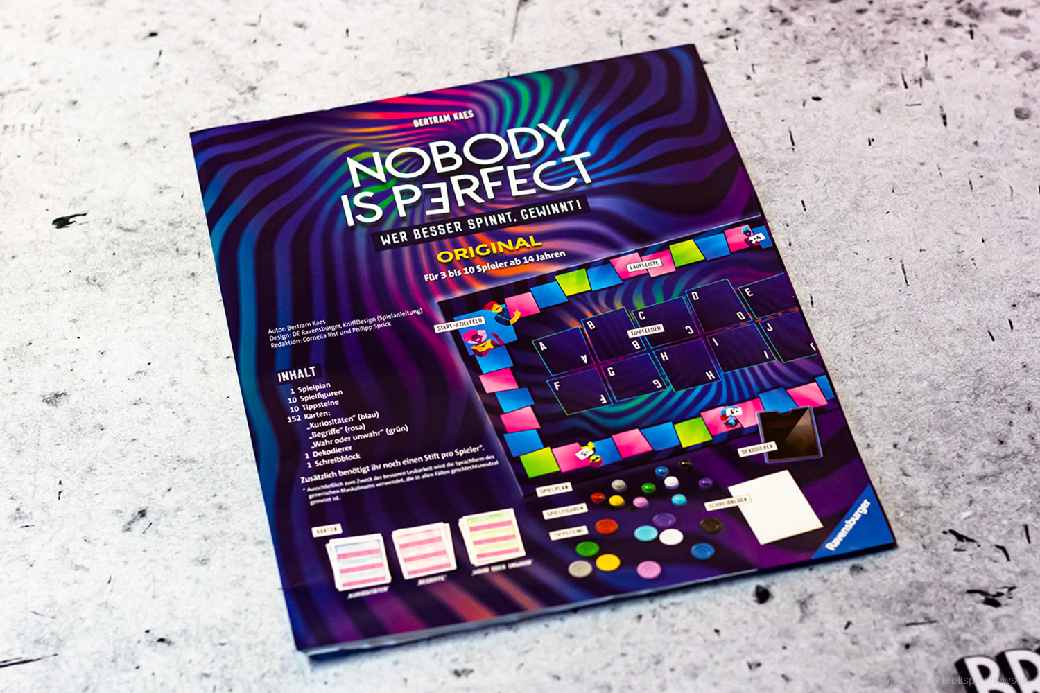 Mit NOBODY IS PERFECT – ORIGINAL veröffentlicht RAVENSBURGER die Fortsetzung eines sehr beliebten Partyspiels. Mit 3-10 Spielern lässt sich das Spiel von BERTRAM KAES spielen. Der UVP beträgt 50,99 €.