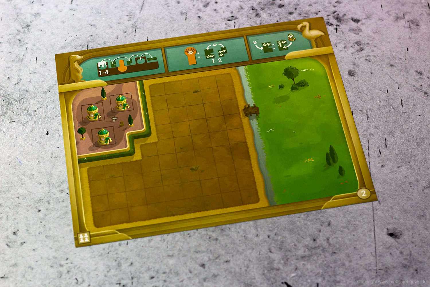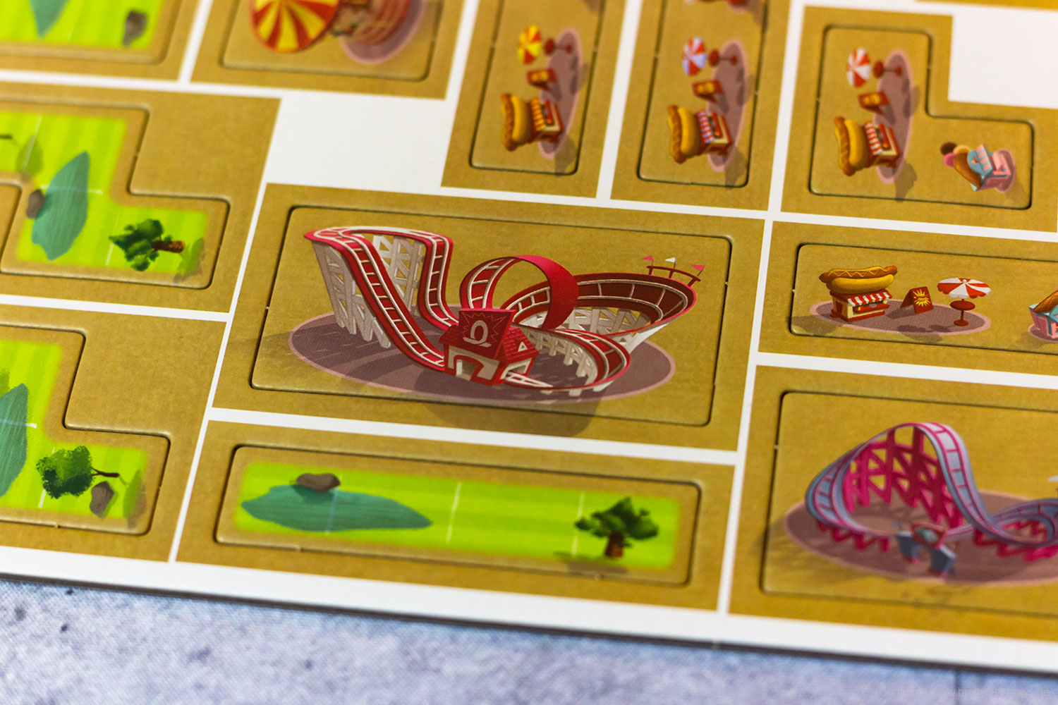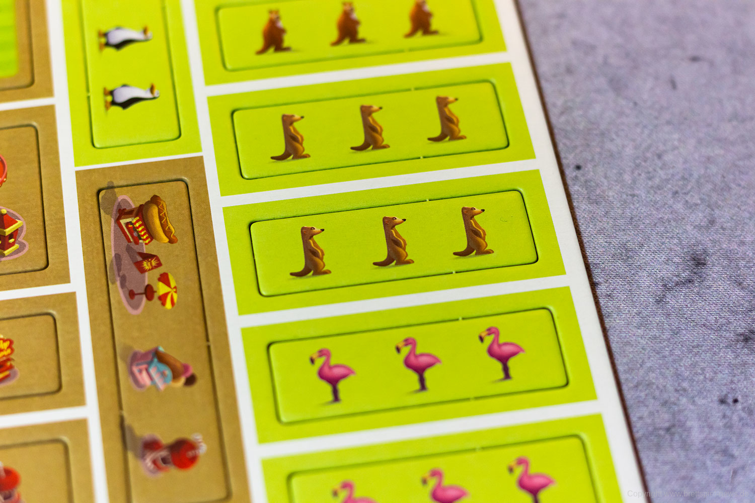 Sobald ihr ein Gehege mit Tieren komplett gefüllt habt, dürft ihr euch eine Attraktion (Sonderplättchen) nehmen, die euch hilft euren Zooplan weiter vollzupuzzeln. Der erste Zoo, der vollständig bepuzzelt ist, gewinnt!