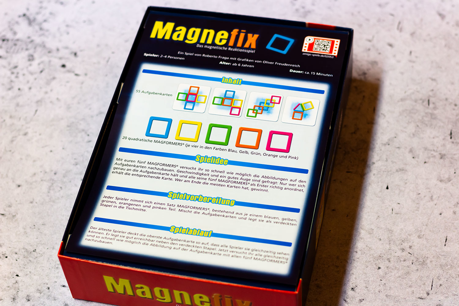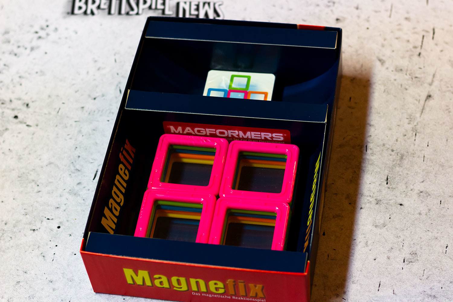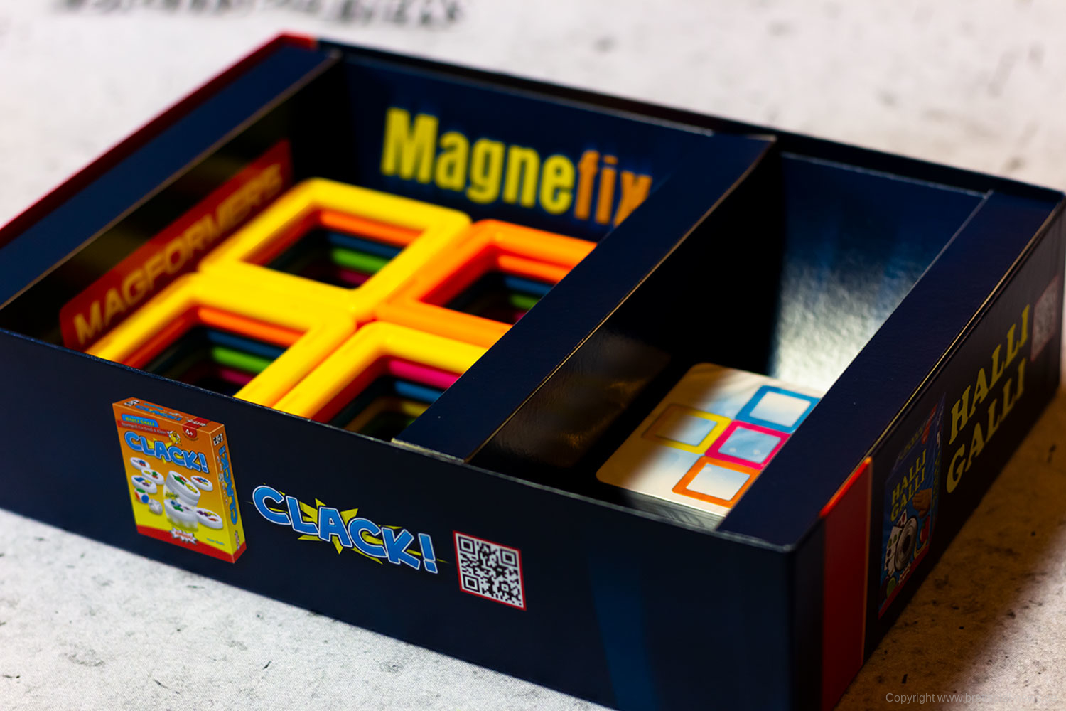MAGNEFIX ist eine Neuheit von AMIGO SPIELE. Wir haben ein Exemplar erhalten und zeigen hier einige Bilder vom Spielmaterial. Das schnelle Familienspiel kann von 2-4 Spielern gespielt werden und sollte in 15 Minuten zu spielen sein. Die Magnetteile sind gut verarbeitet und beim ersten Anspielen machte das leichte Spielprinzip einen guten Eindruck. Ein Test wird folgen.